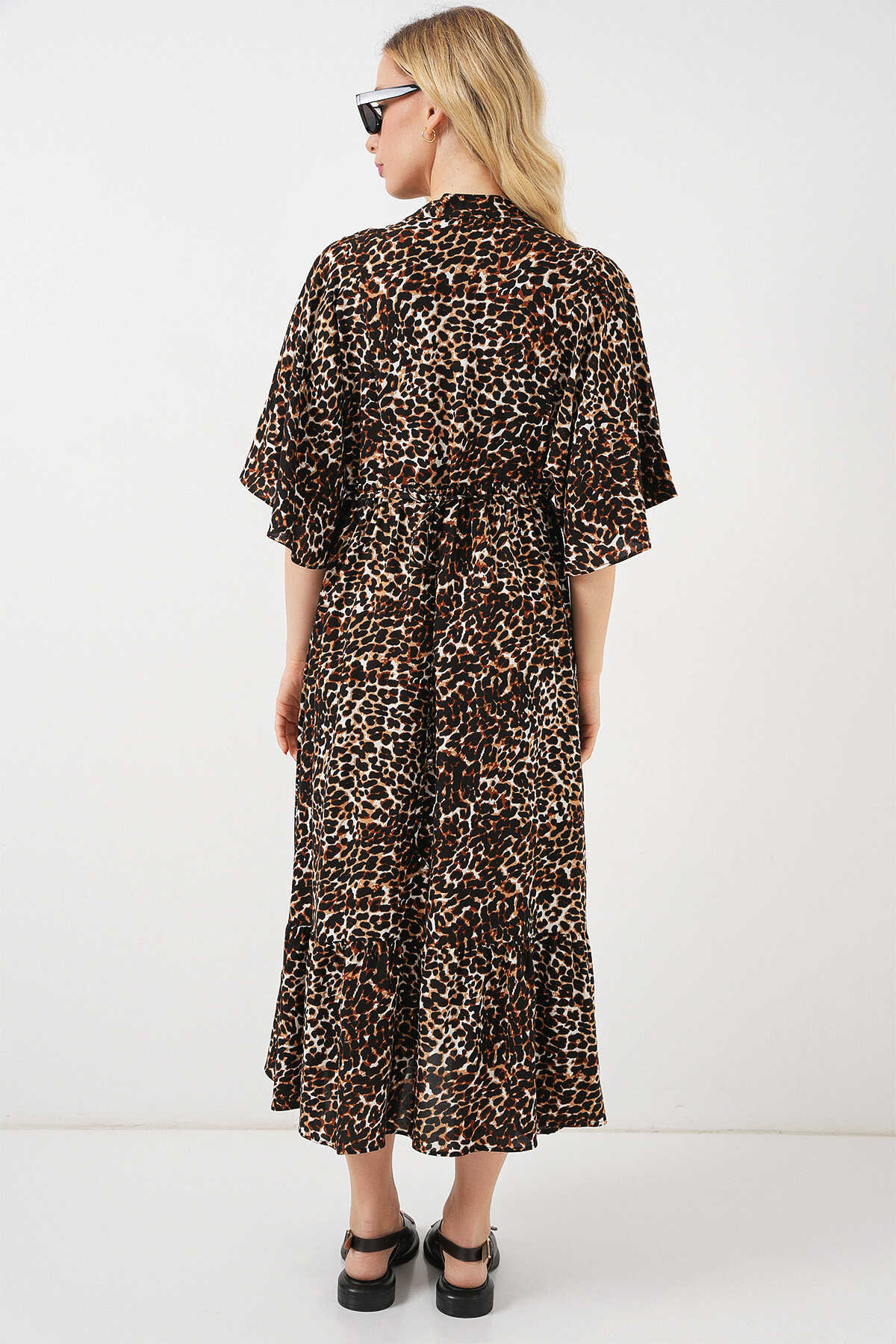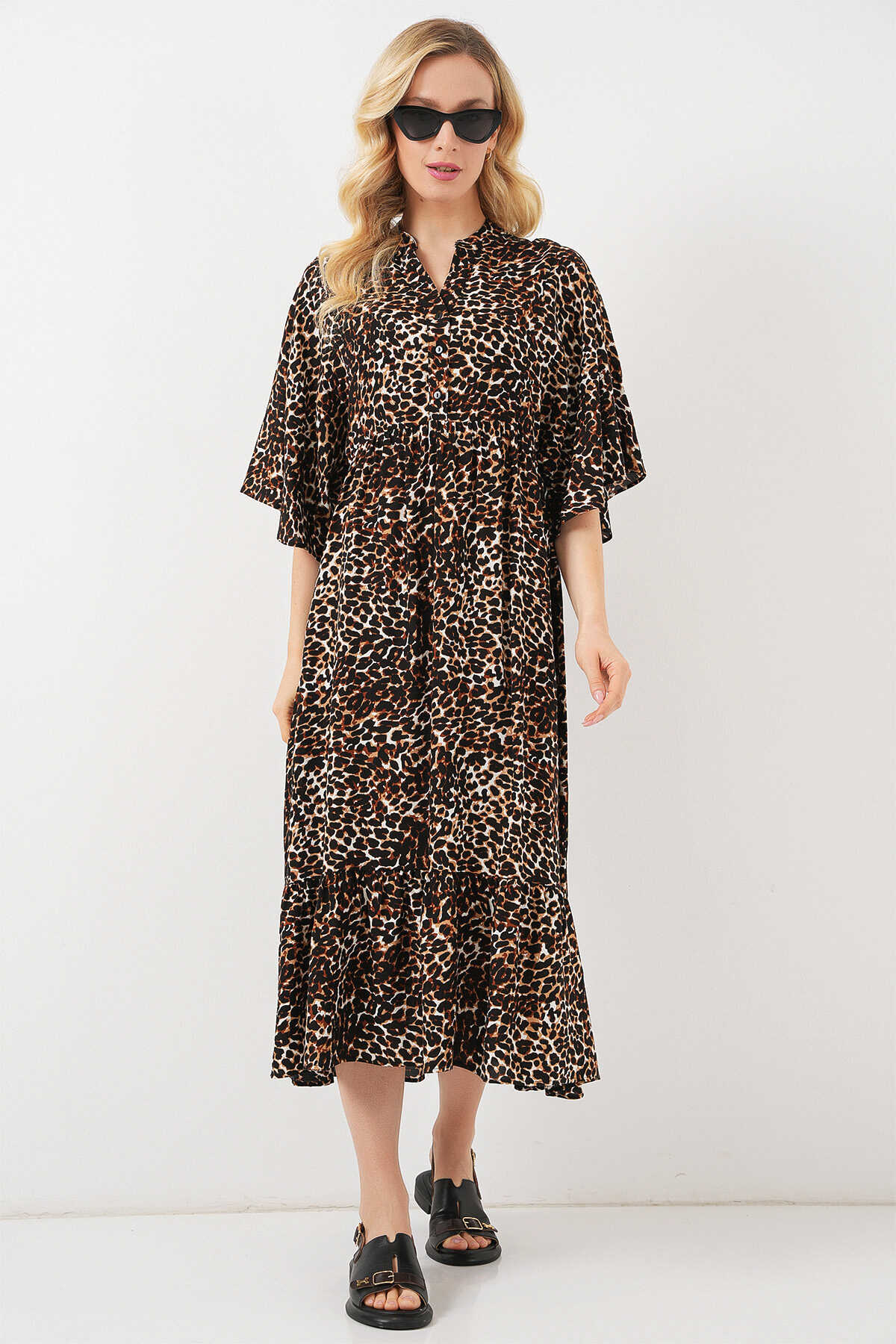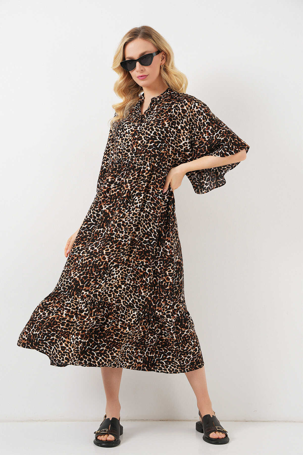 Kadın Desenli Kısa Kol Elbise 2562 - C. Kahverengi