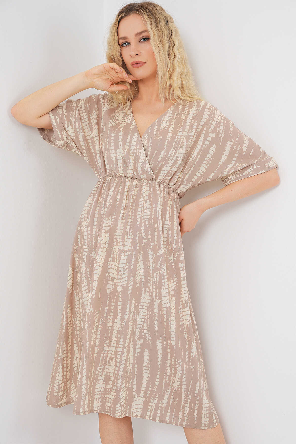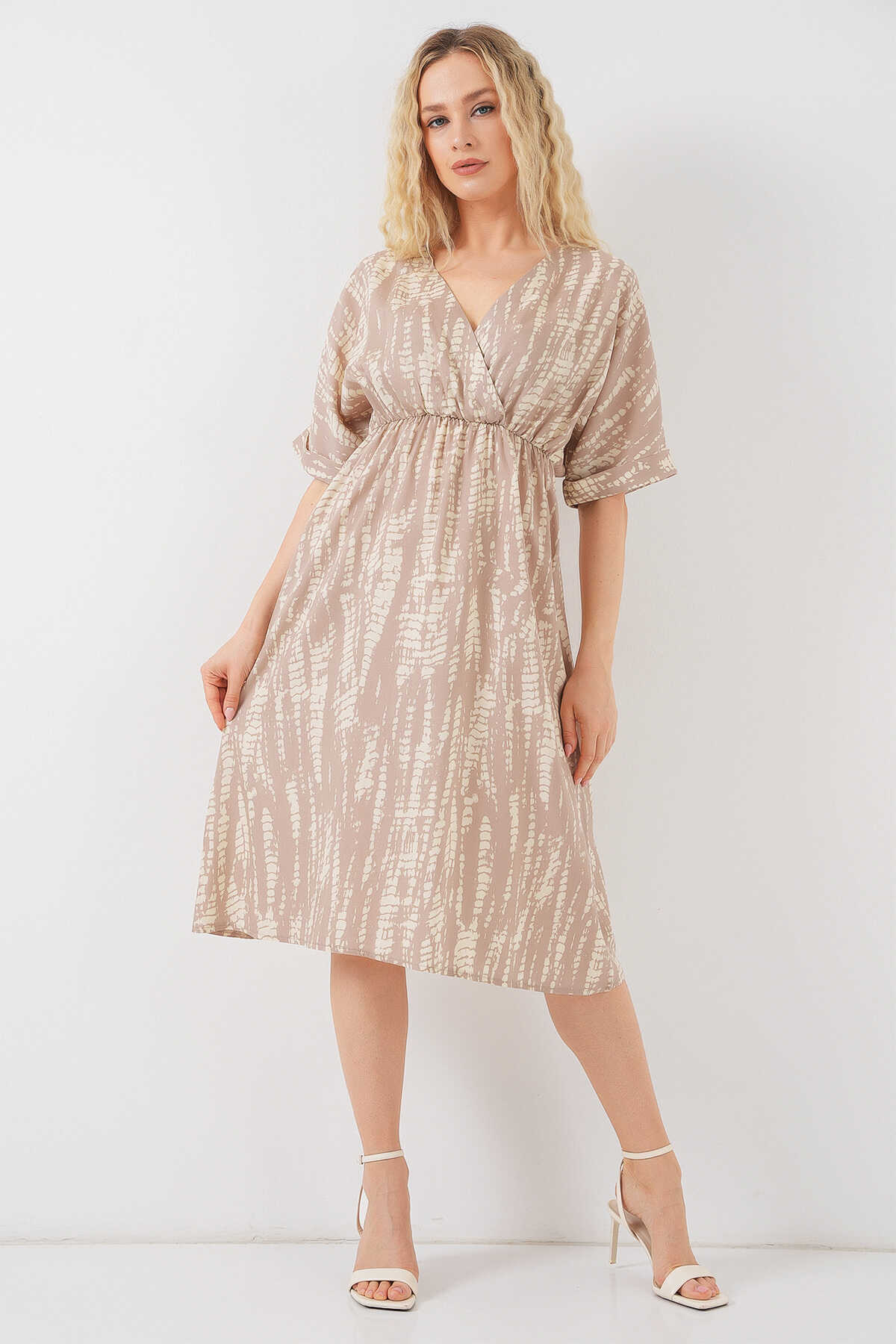 Kadin Desenli Kisa Kol Elbise