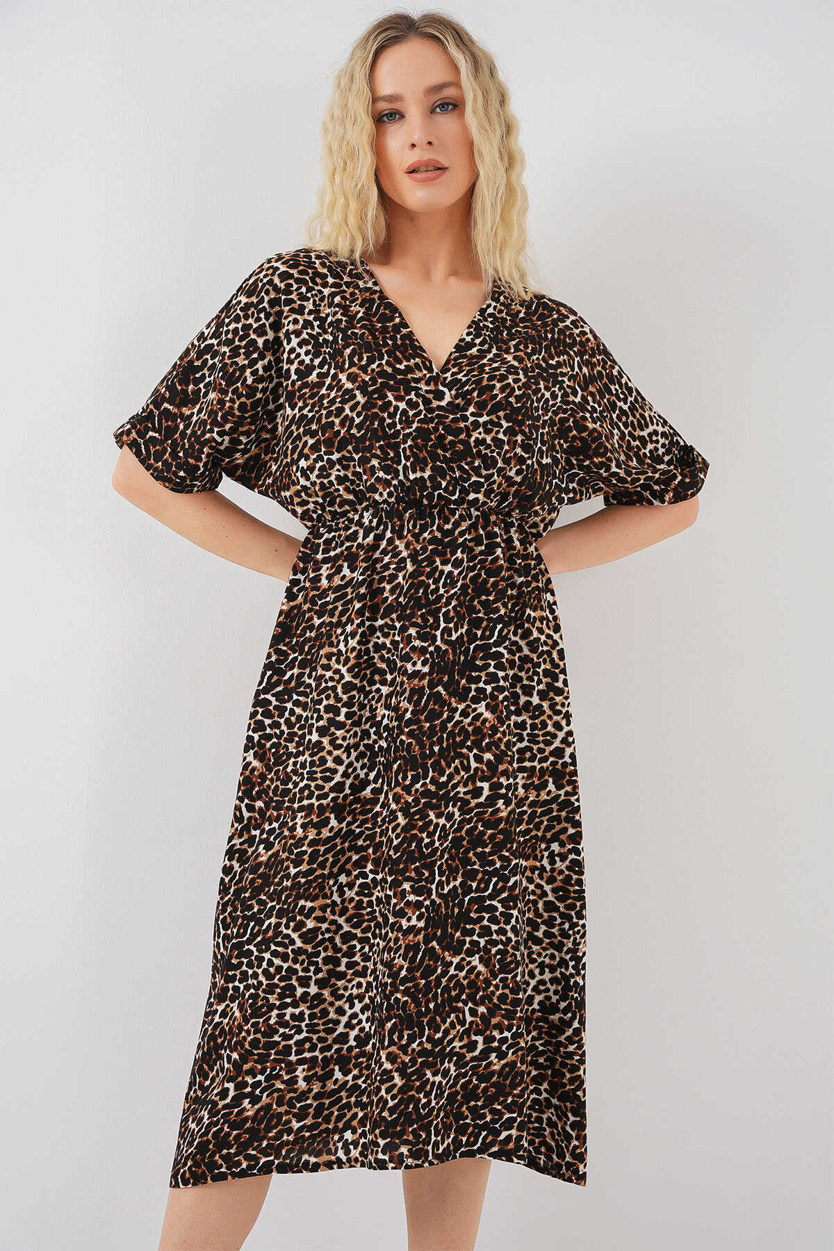 Kadin Desenli Kisa Kol Elbise