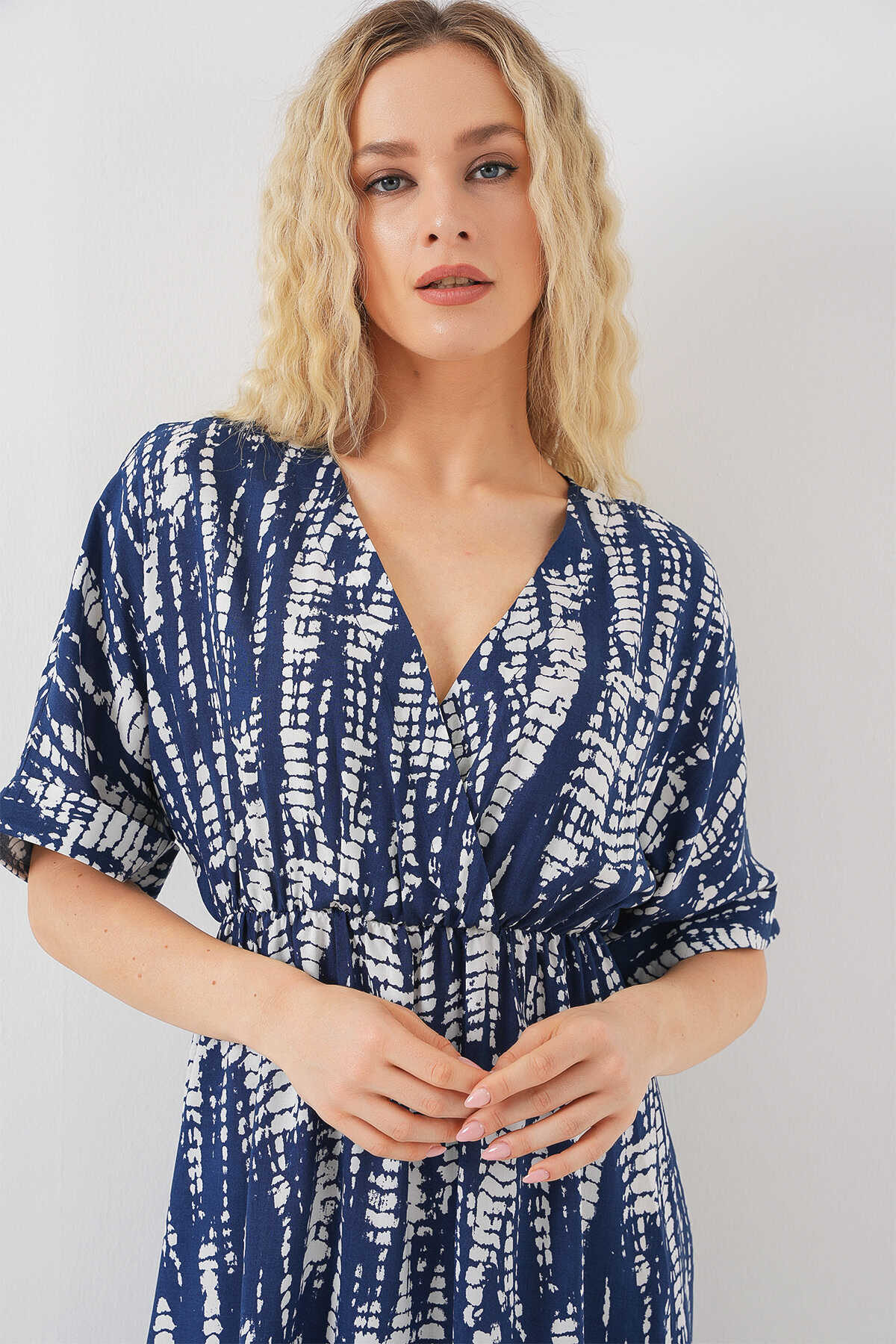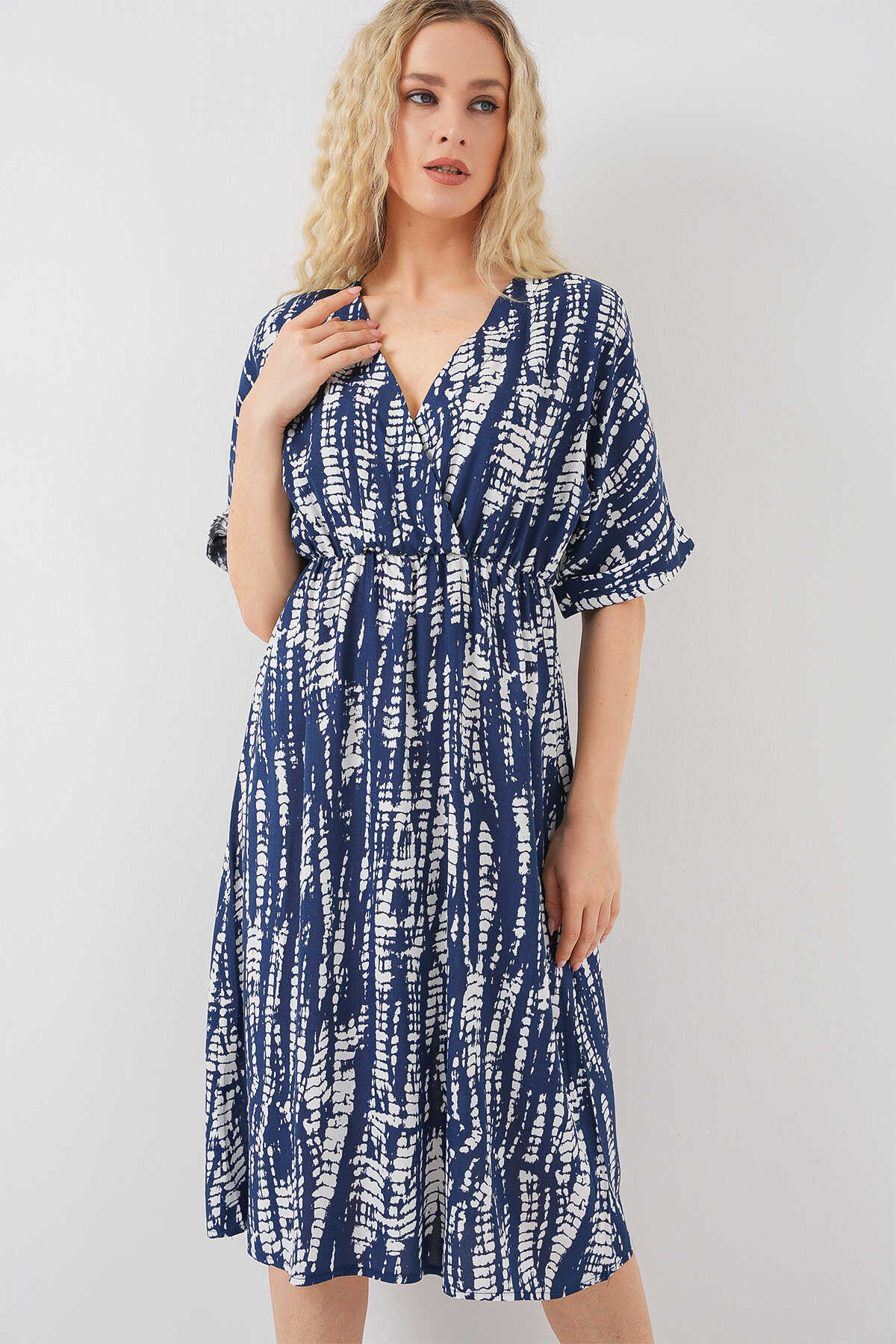 Kadin Desenli Kisa Kol Elbise