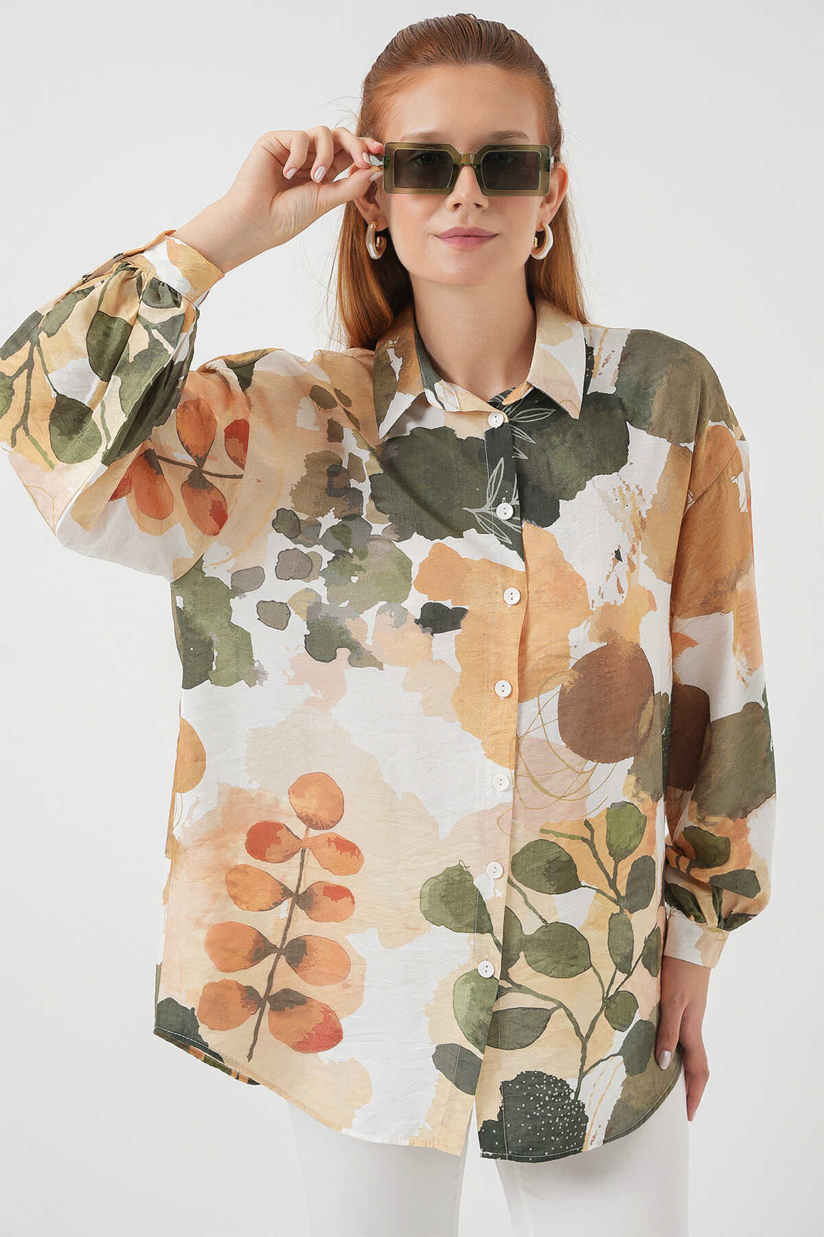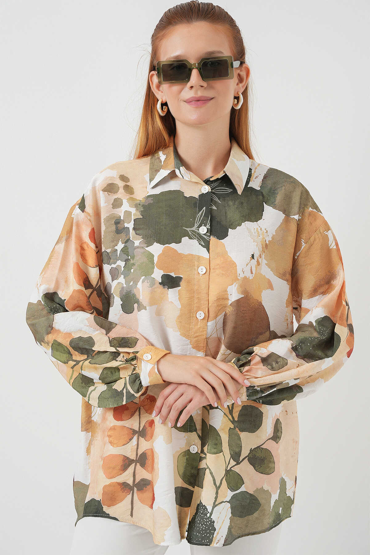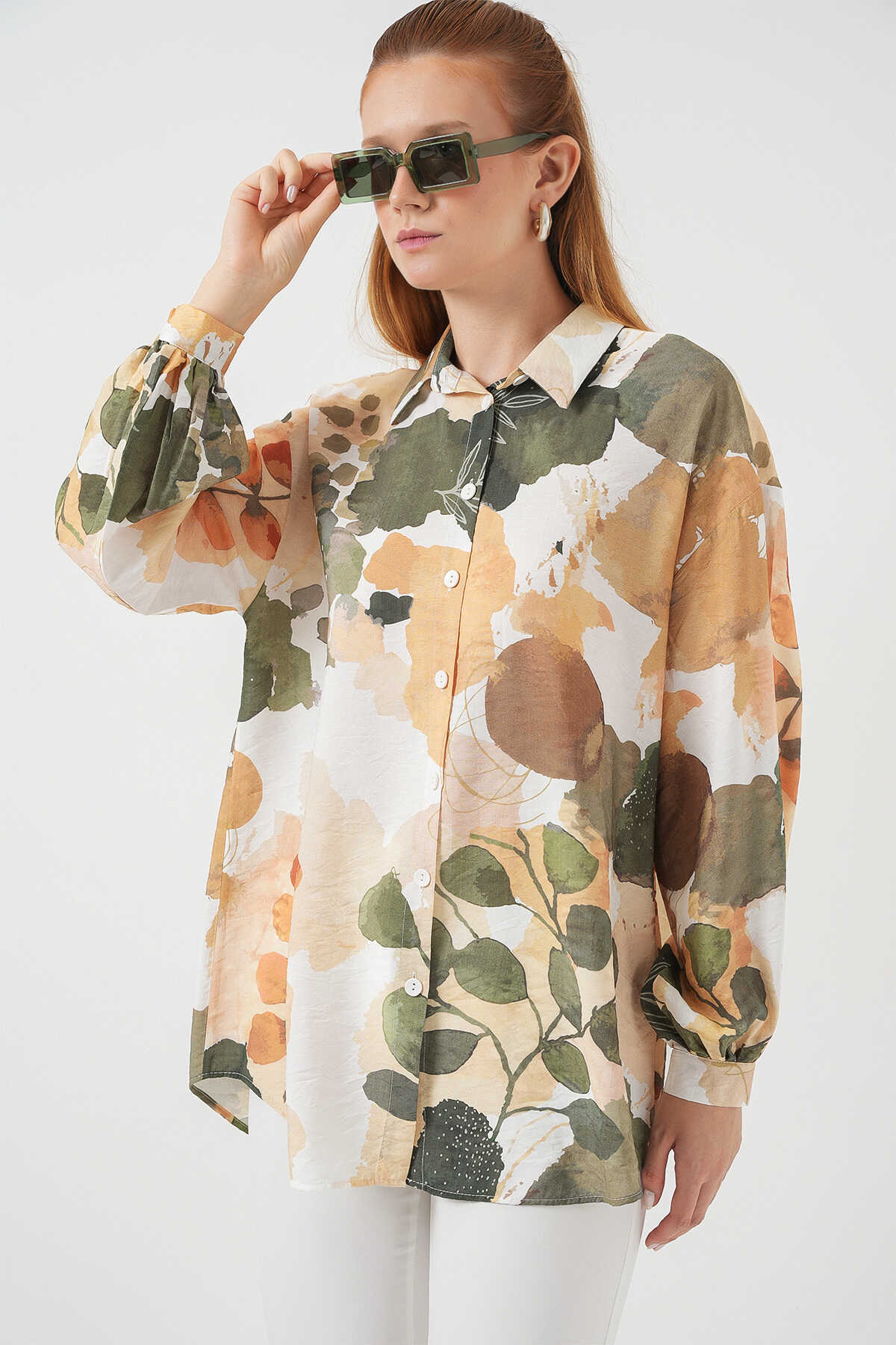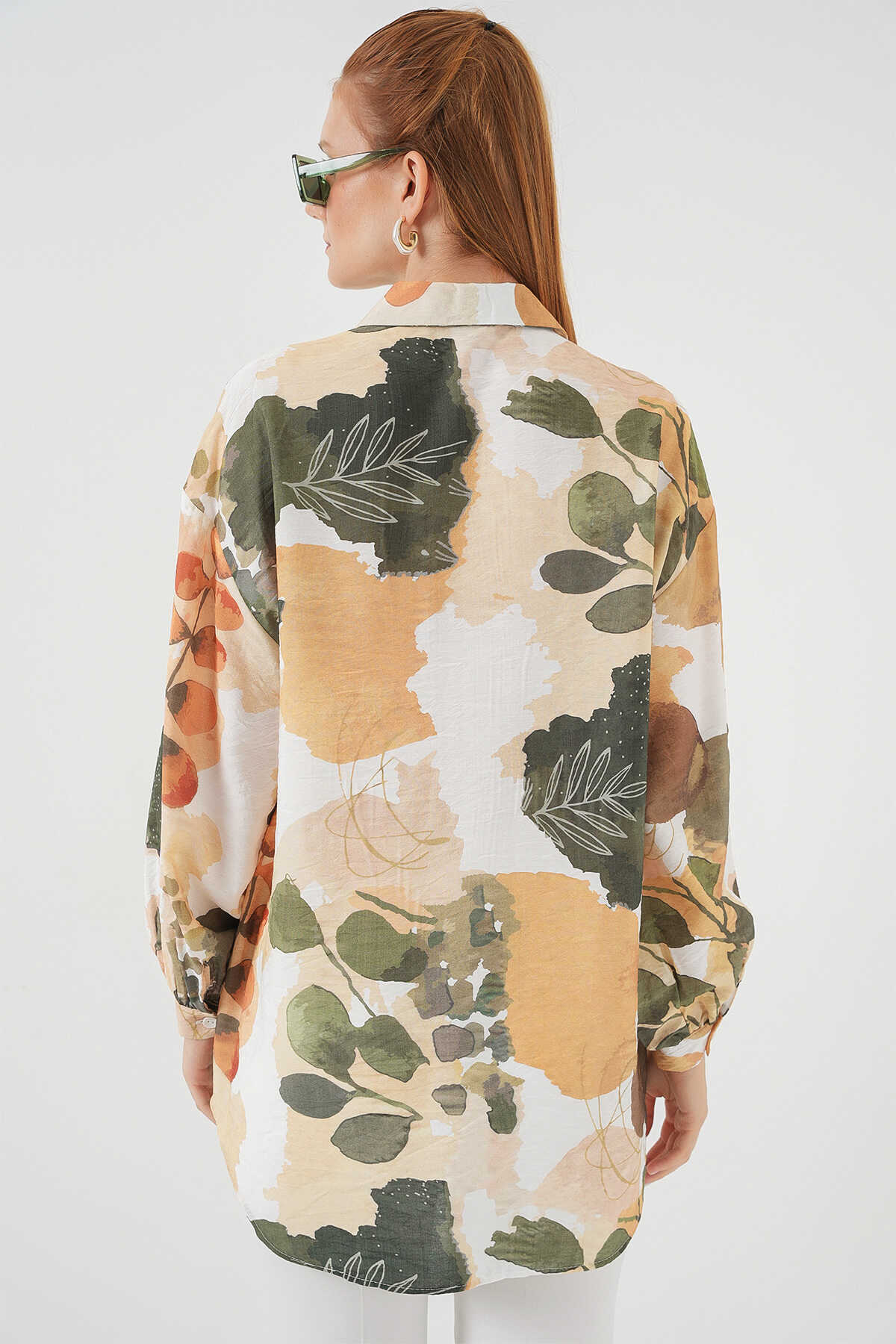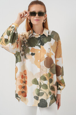Kadın Desenli Overize Gömlek Tunik 5971 - Çağla - Kombin