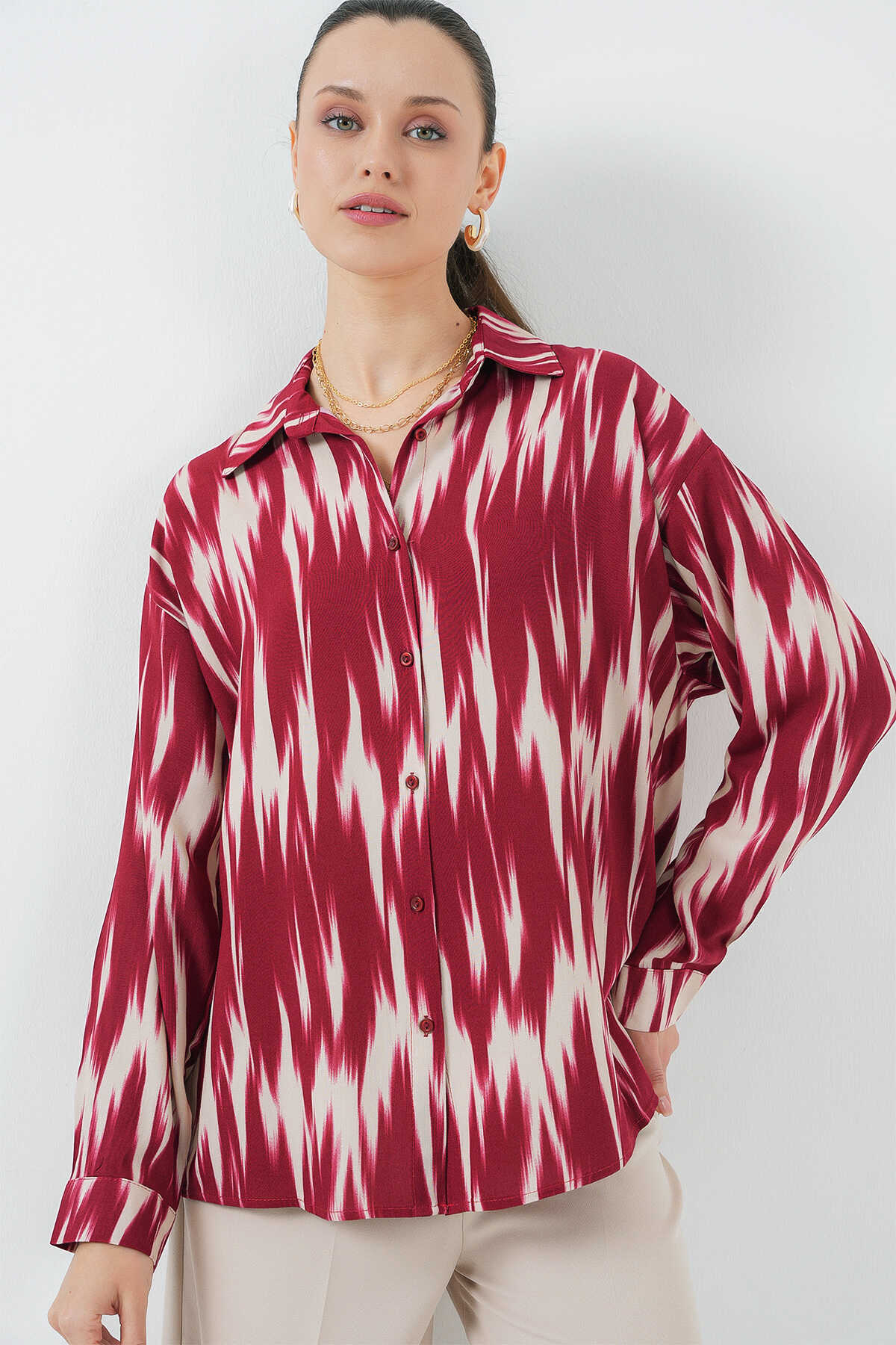 Kadin Desenli Oversize Gömlek