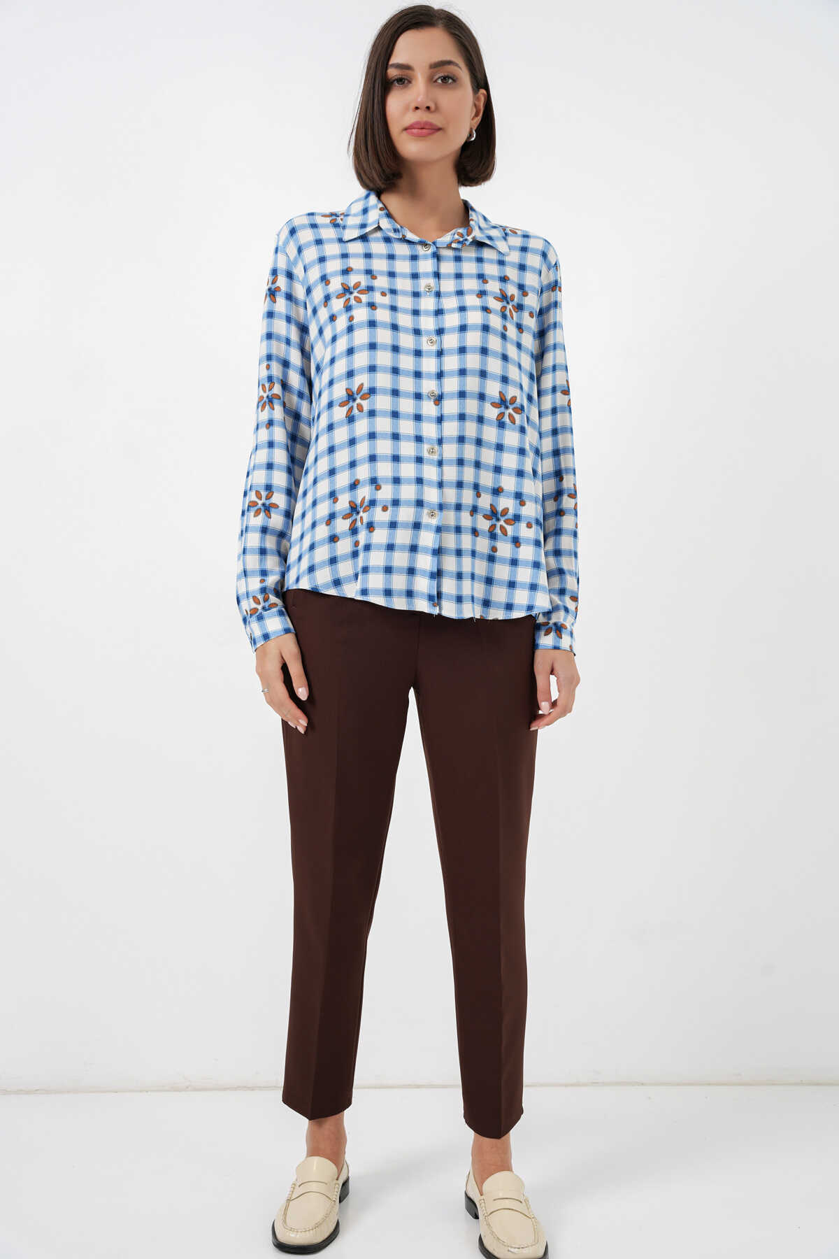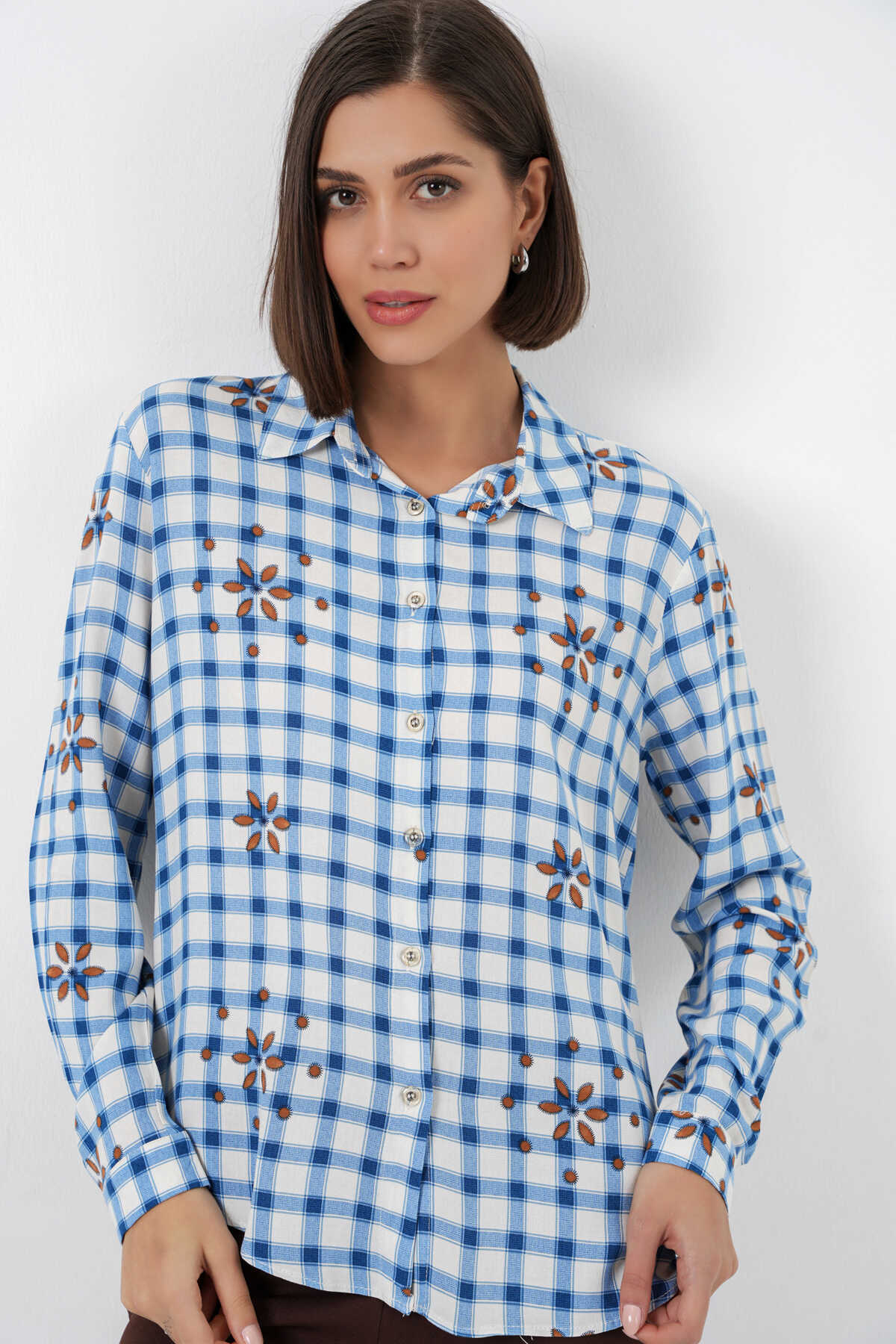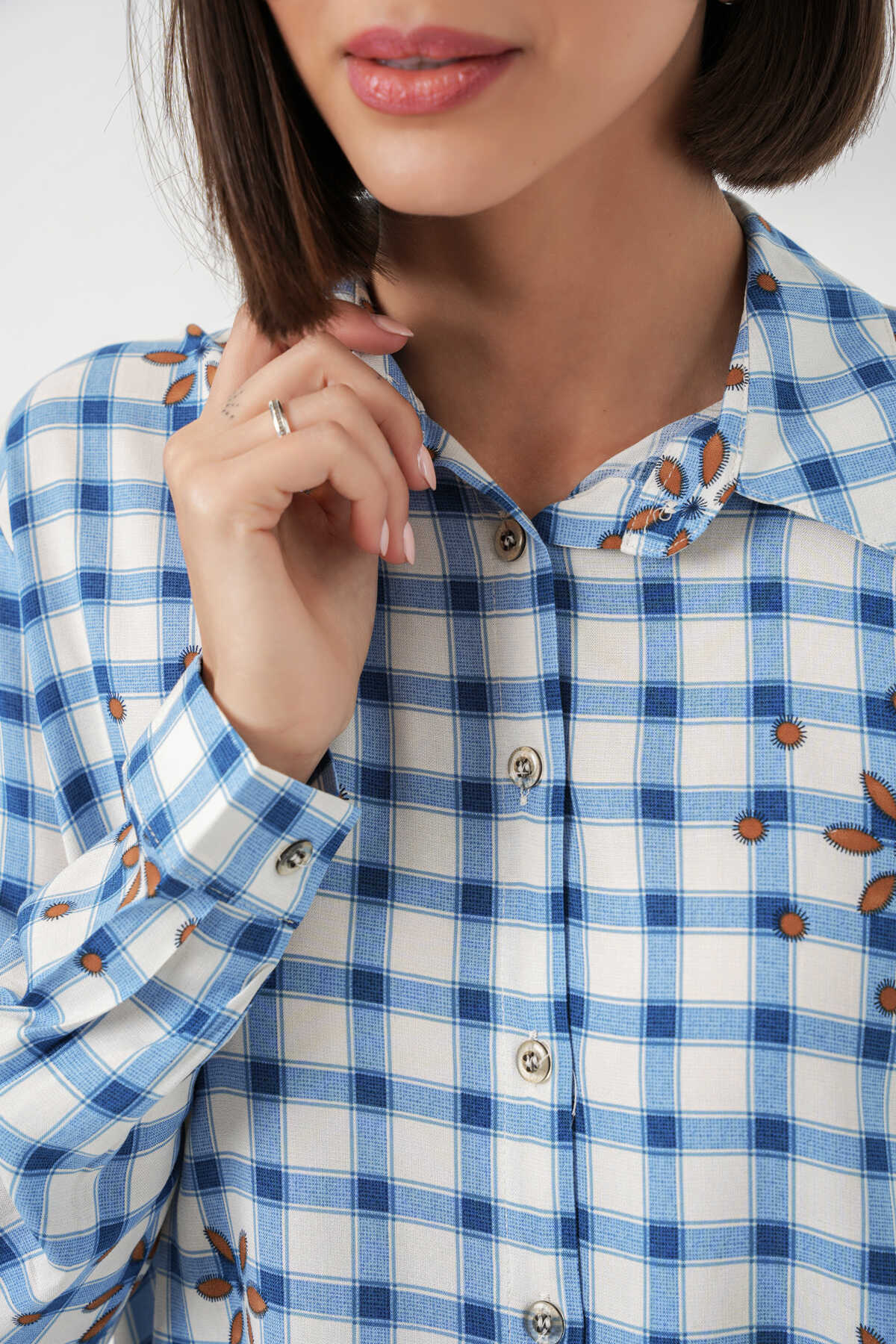 Kadin Desenli Oversize Viskon Gömlek 20371