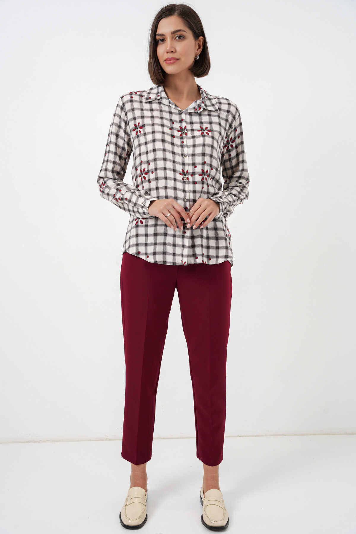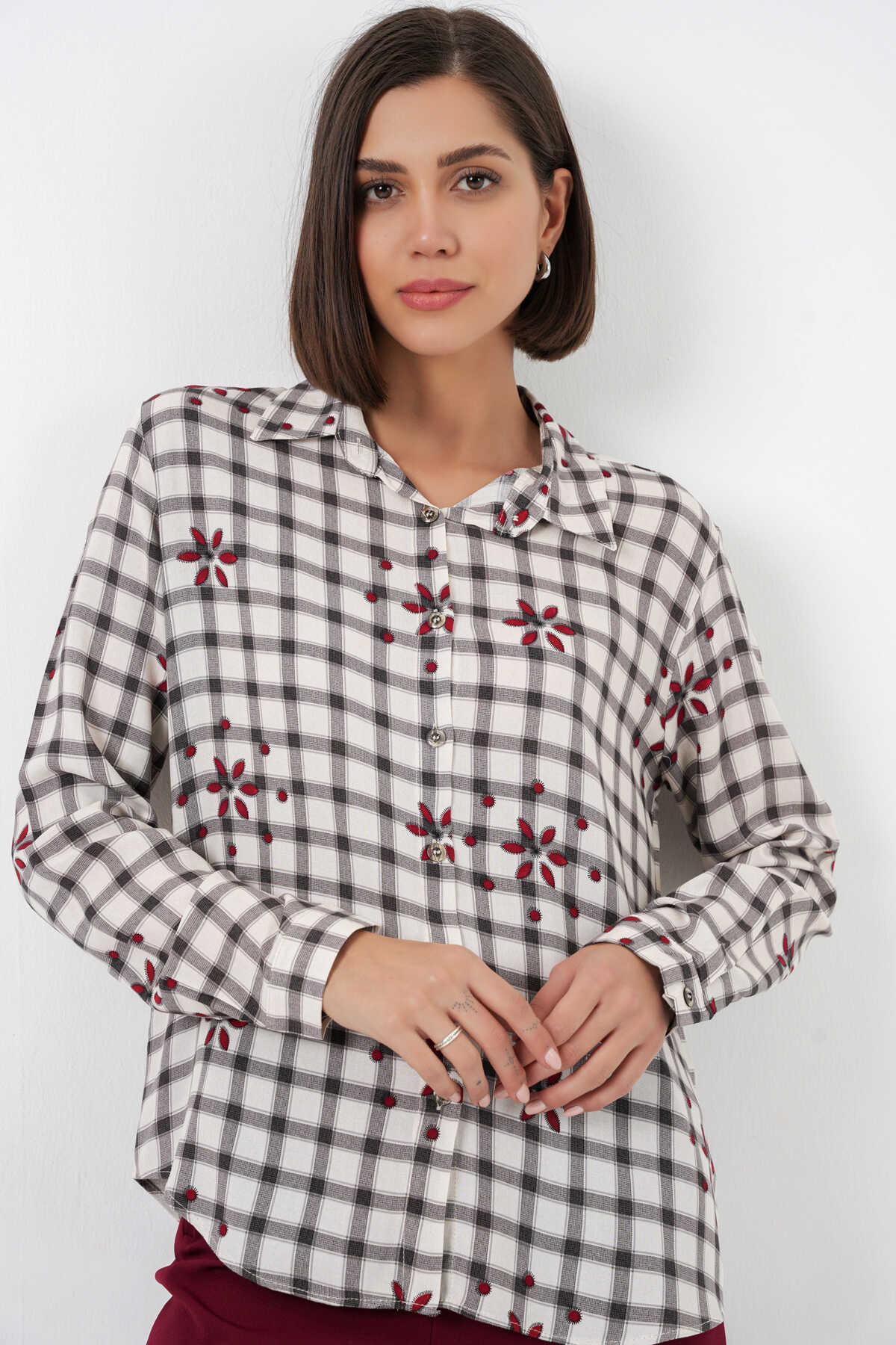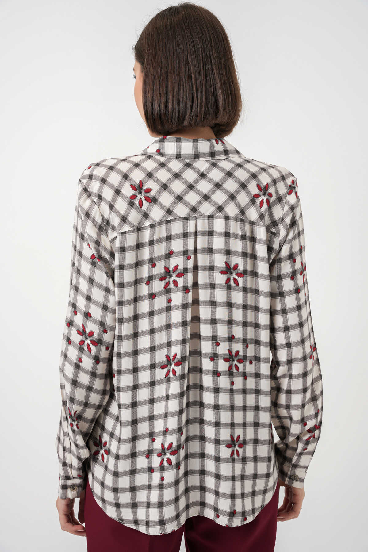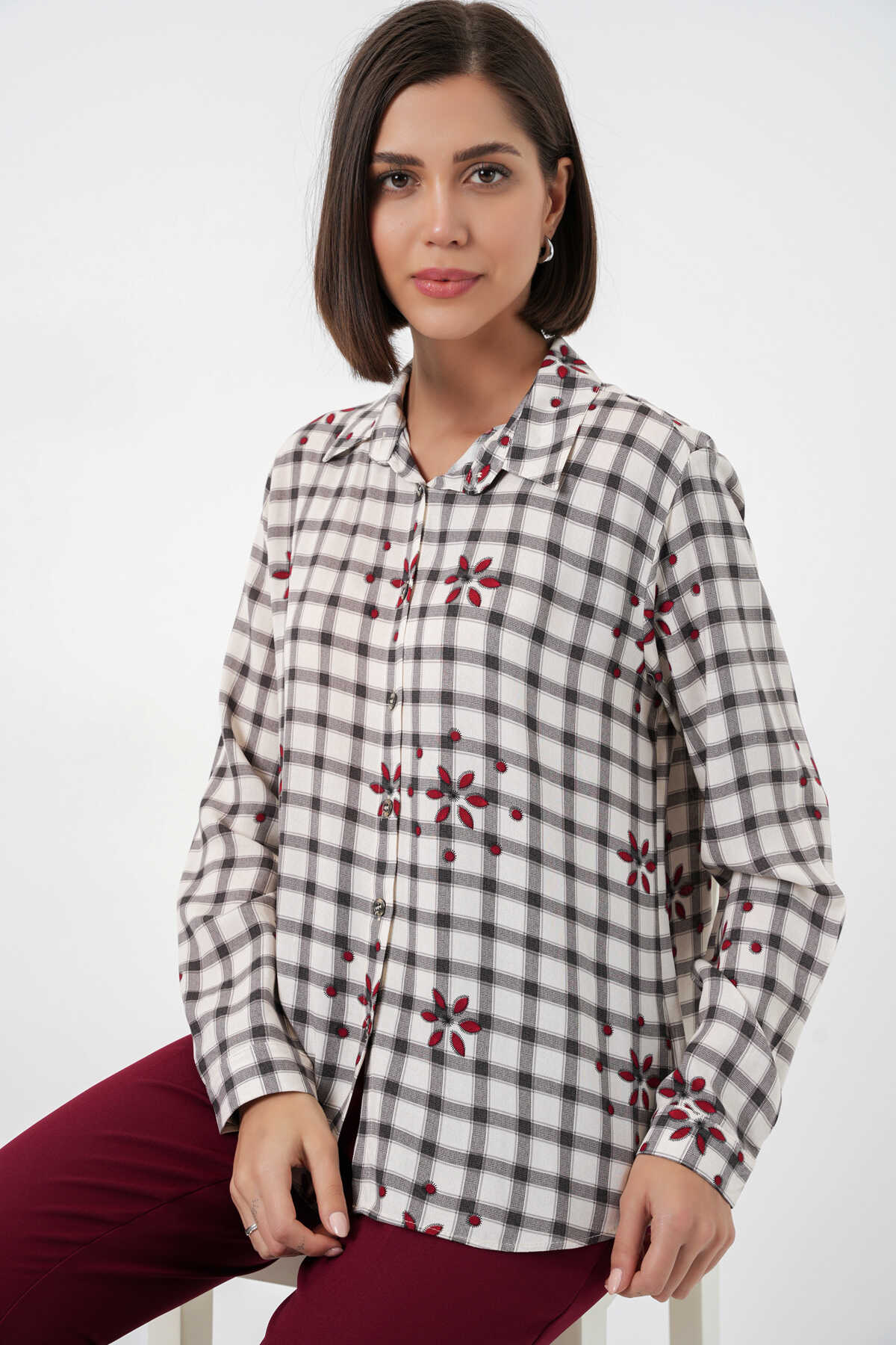 Kadin Desenli Oversize Viskon Gömlek 20371
