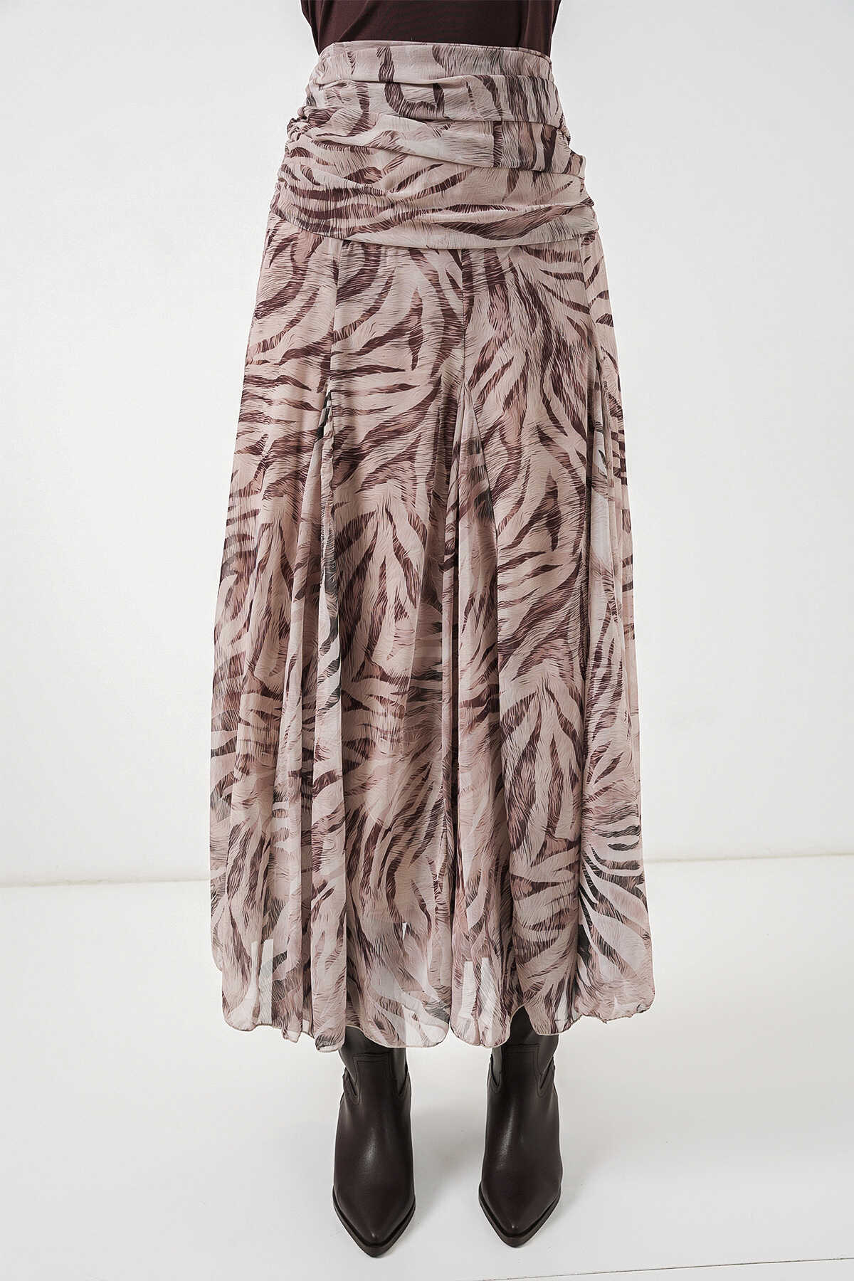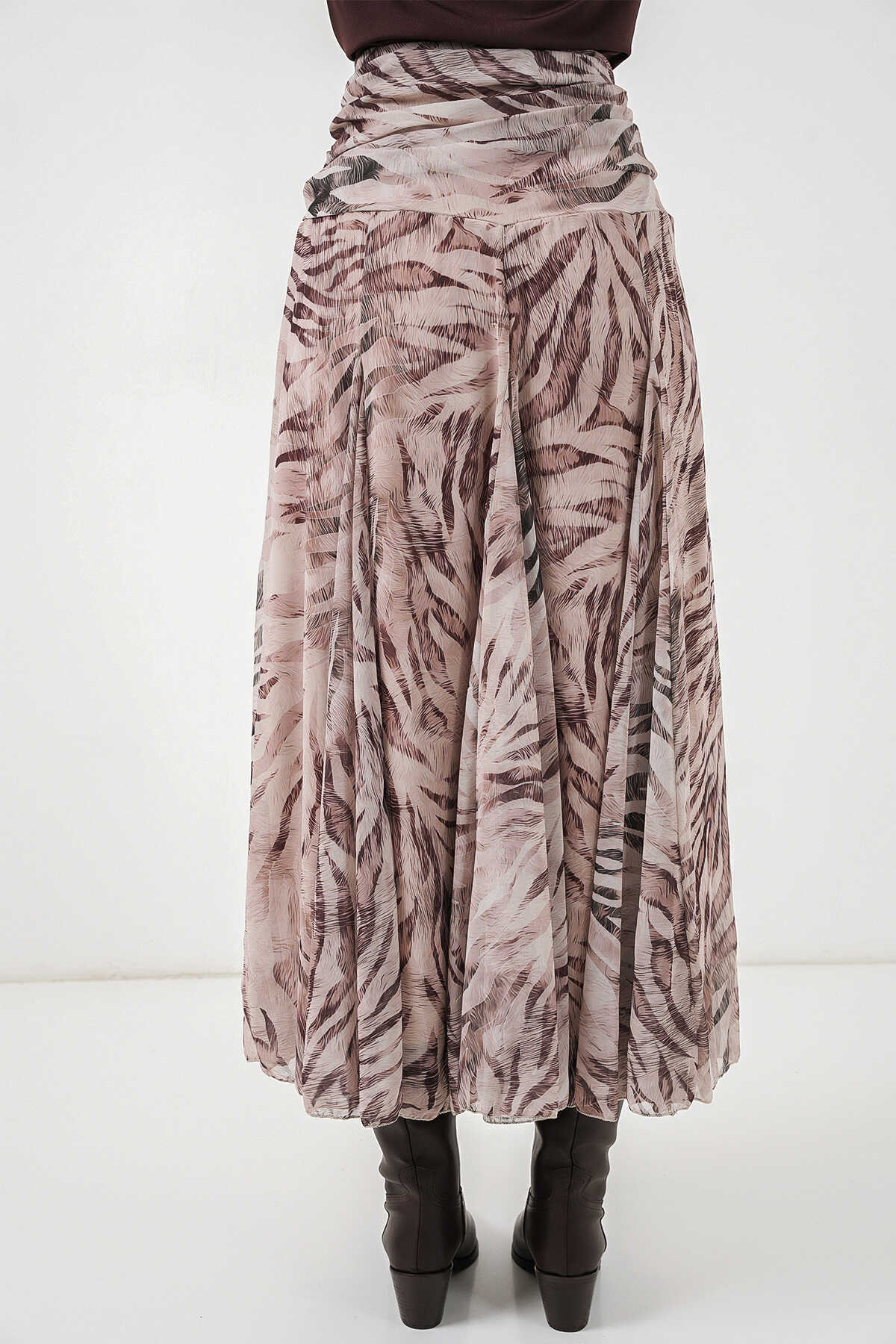 Kadın Desenli Şifon Etek 8057 - Ekru