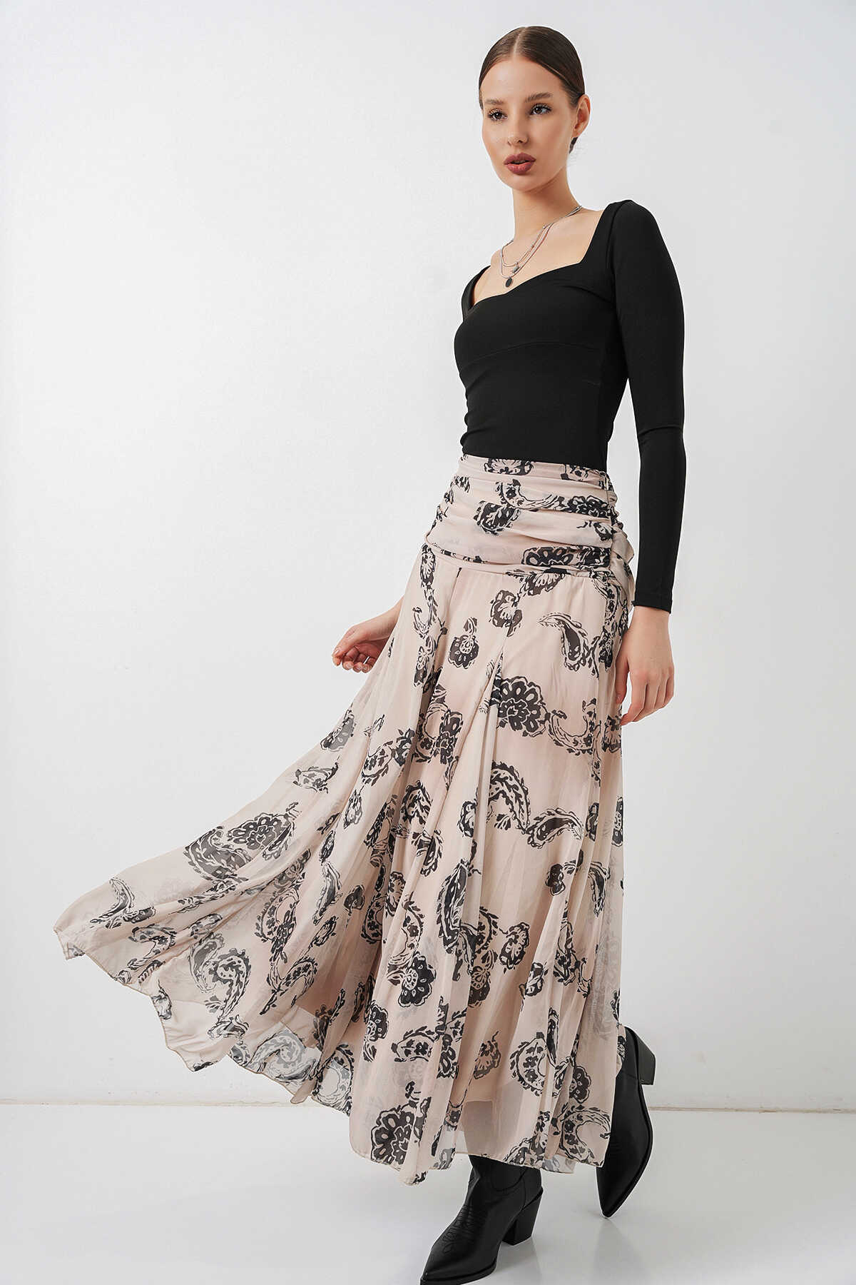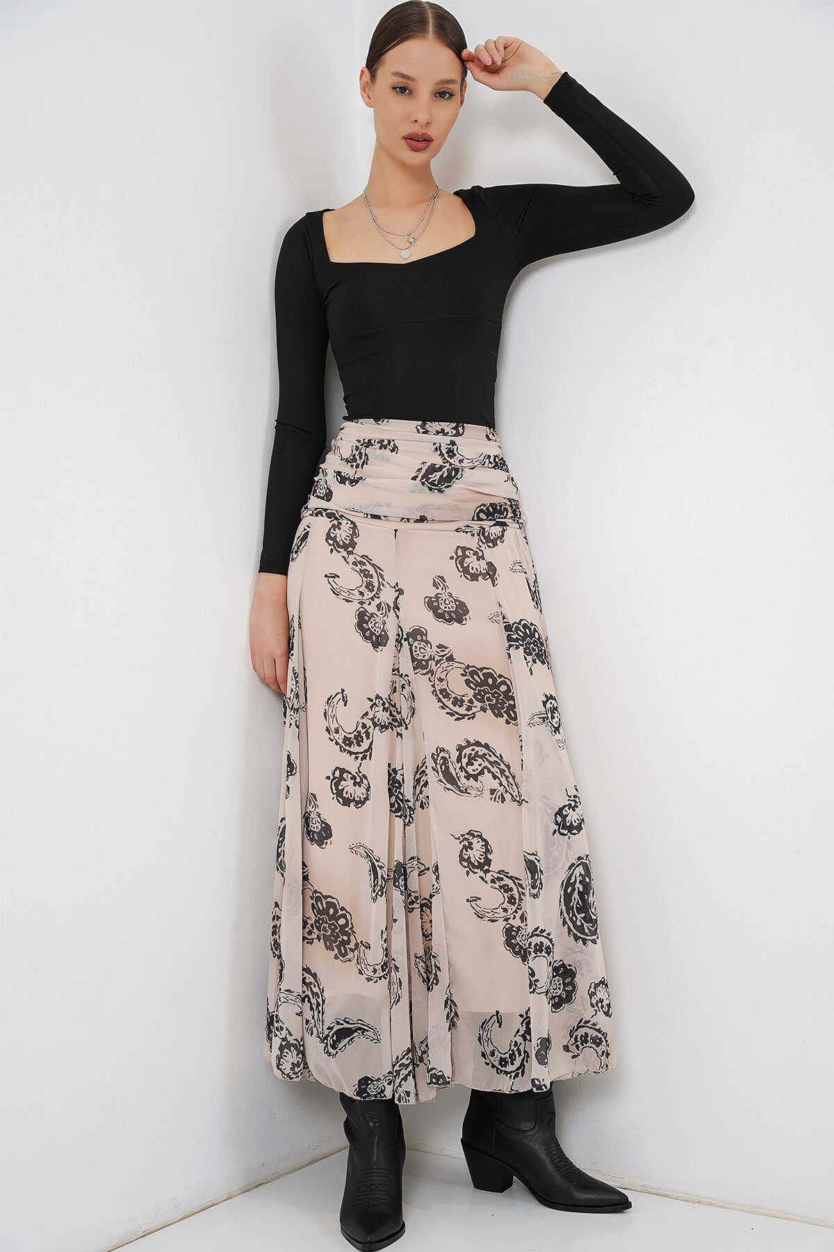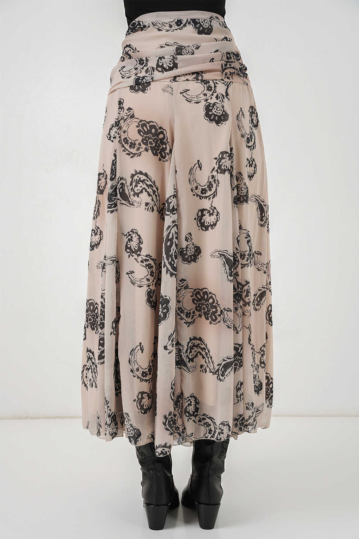 Kadın Desenli Şifon Etek 8057 - Krem - Kombin