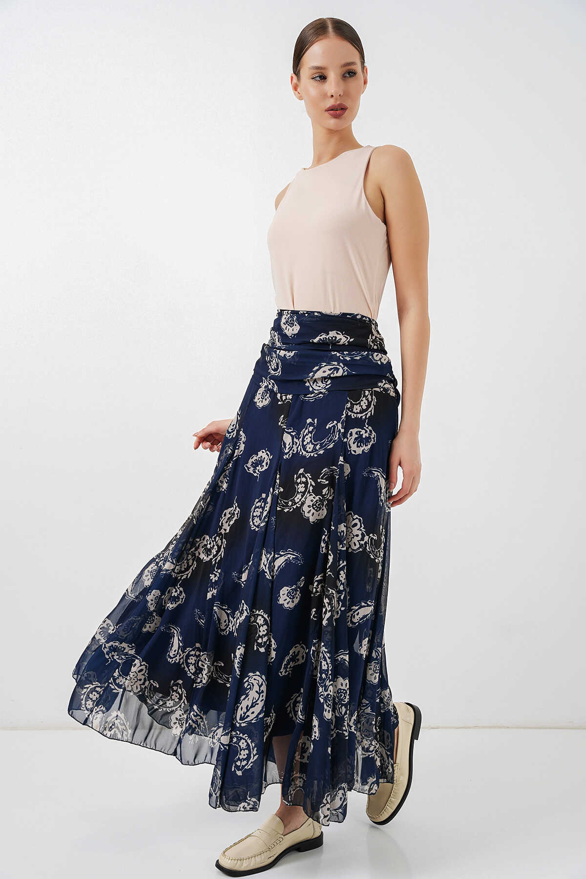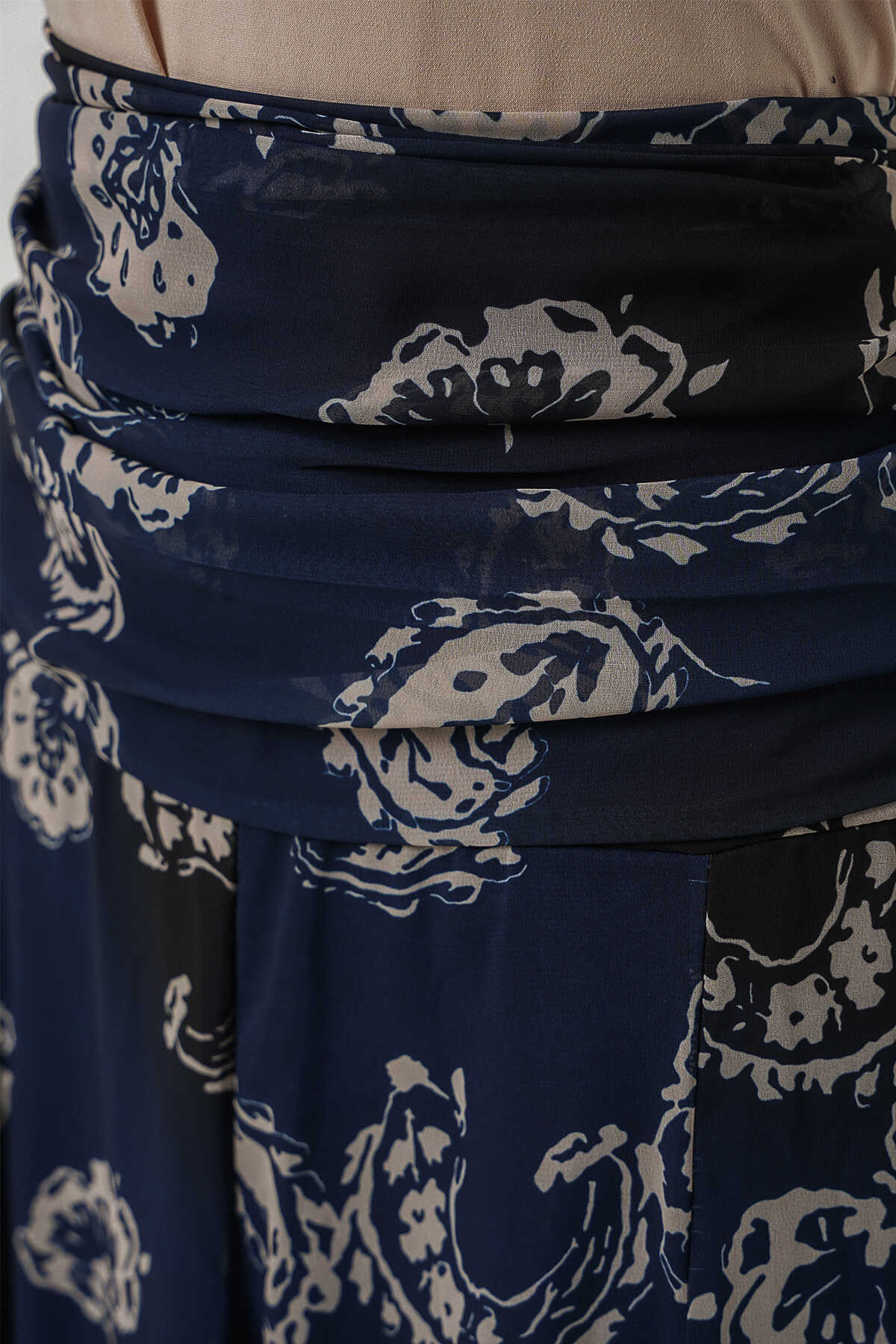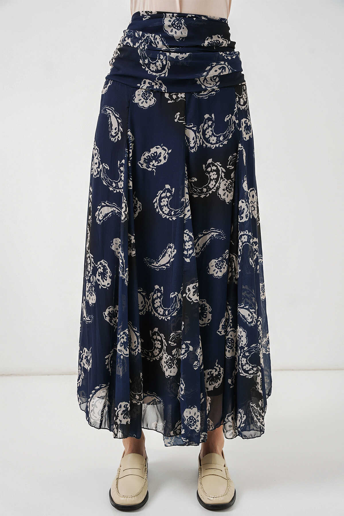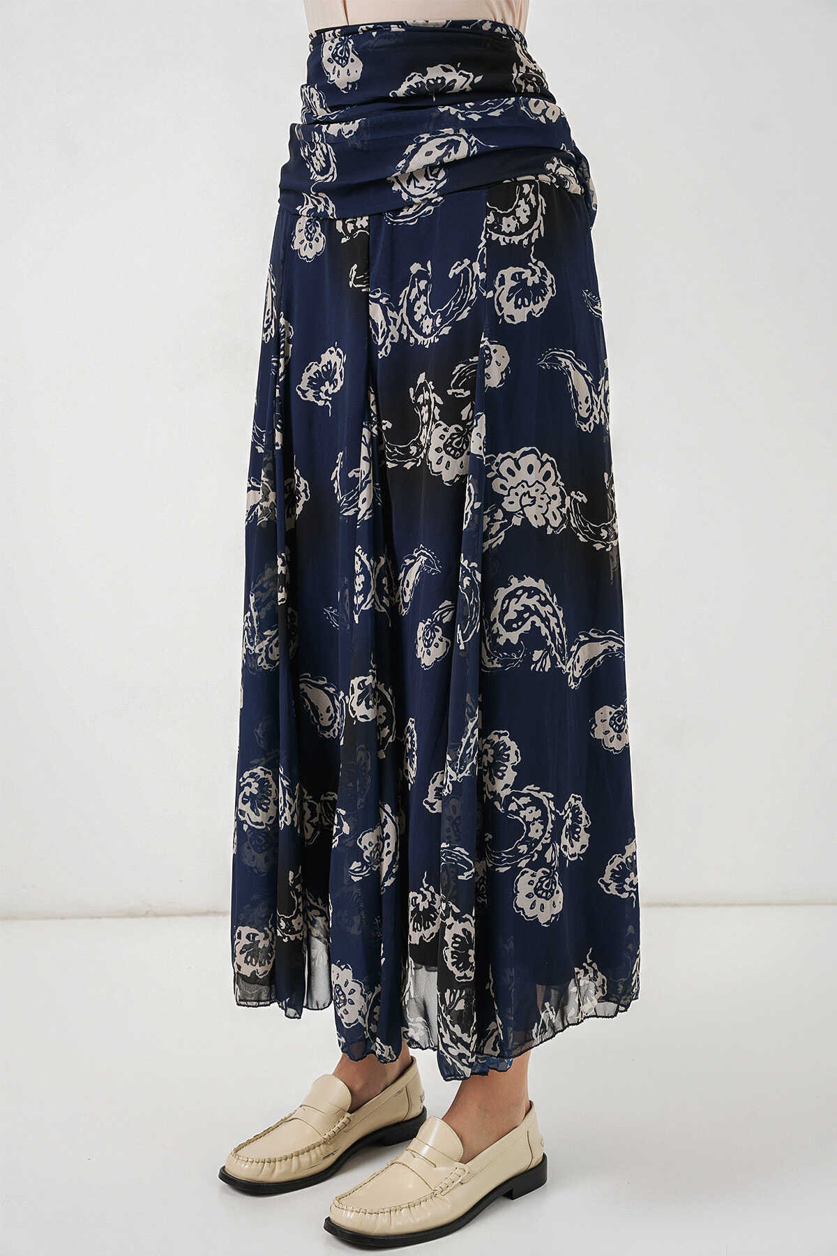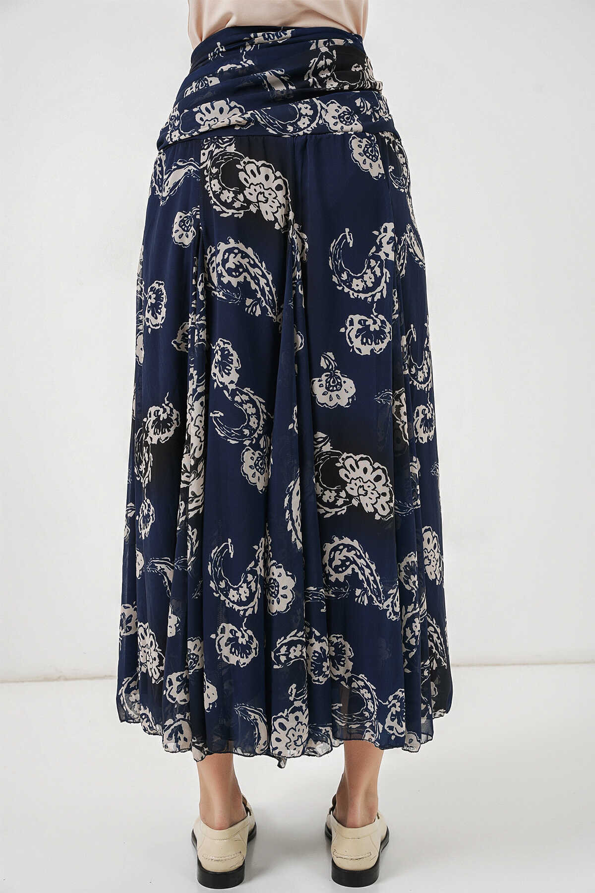 Kadın Desenli Şifon Etek 8057 - Lacivert - Kombin