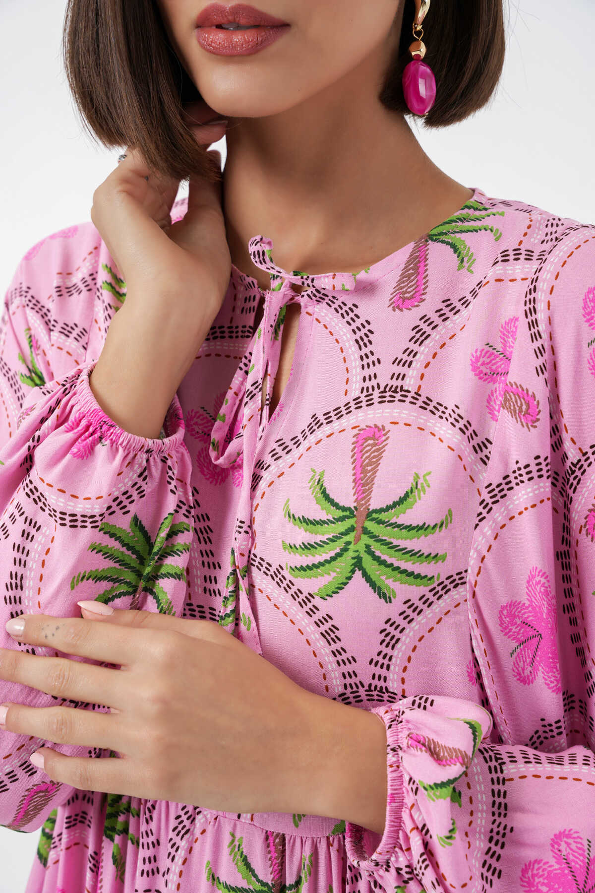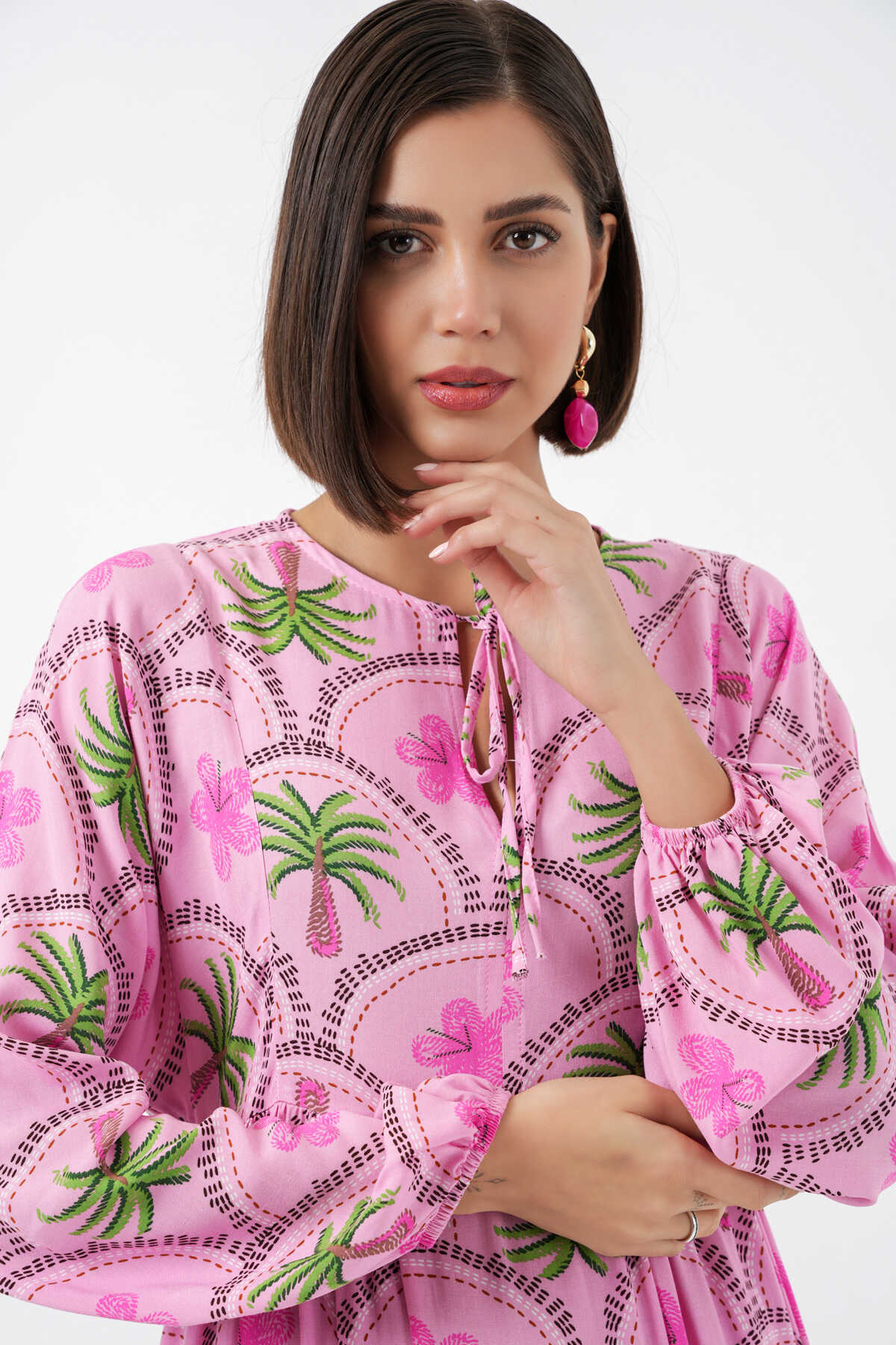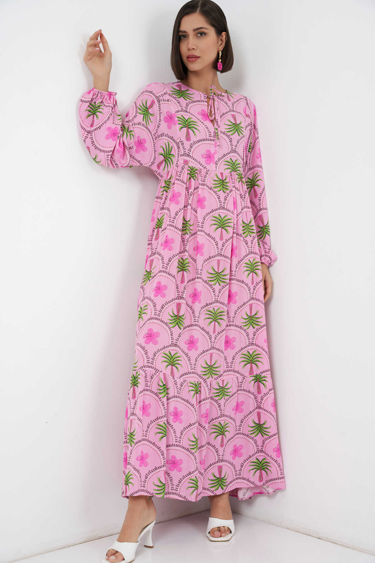 Kadın Desenli Tesettür Elbise 2594 - Pembe