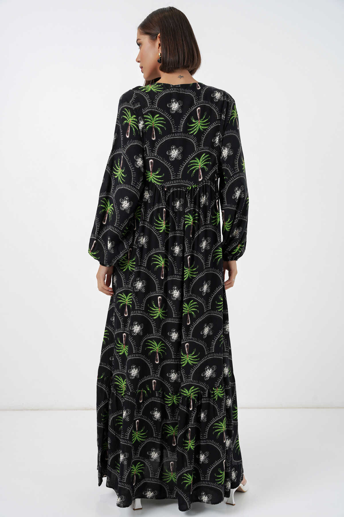 Kadın Desenli Tesettür Elbise 2594 - Siyah - Kombin