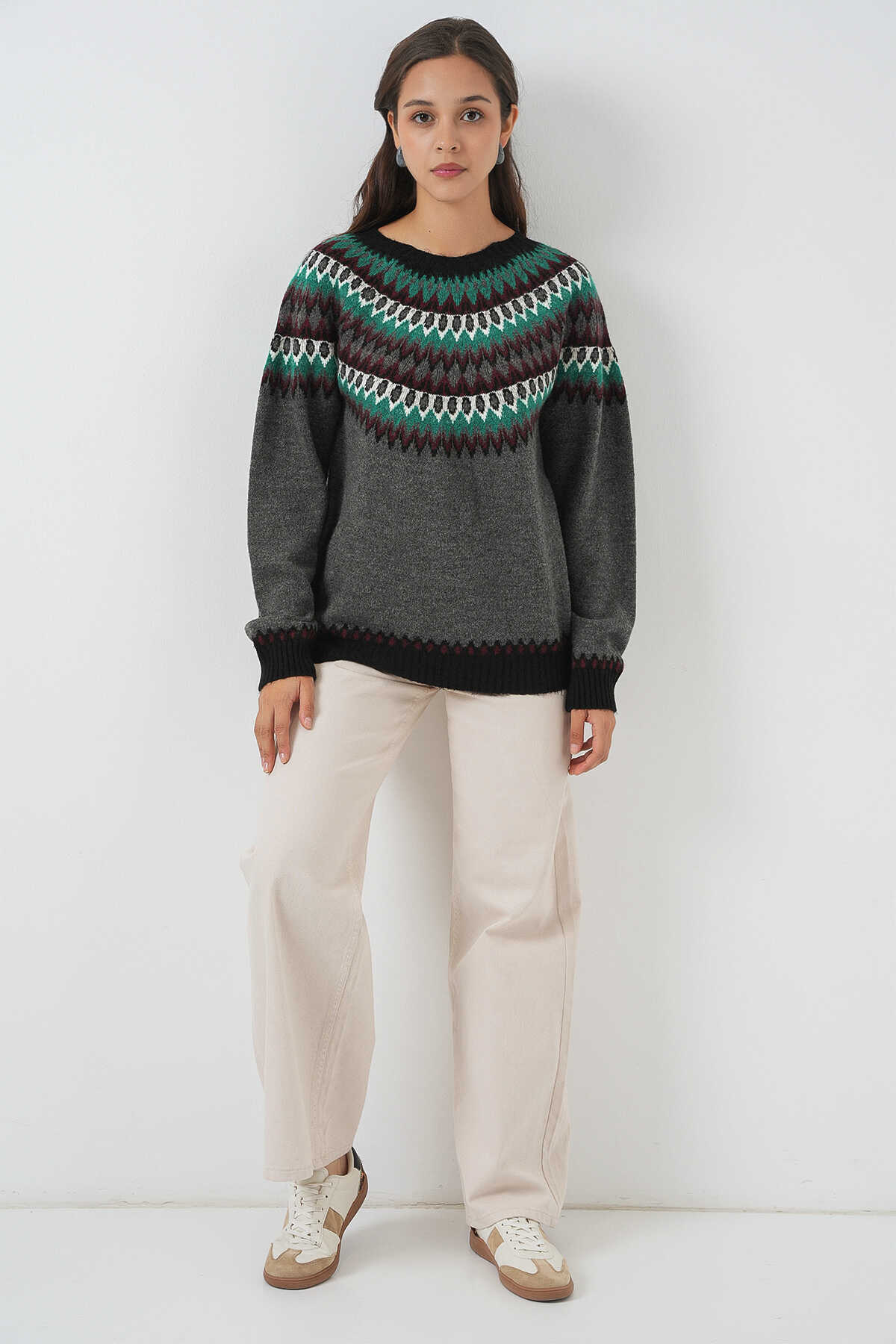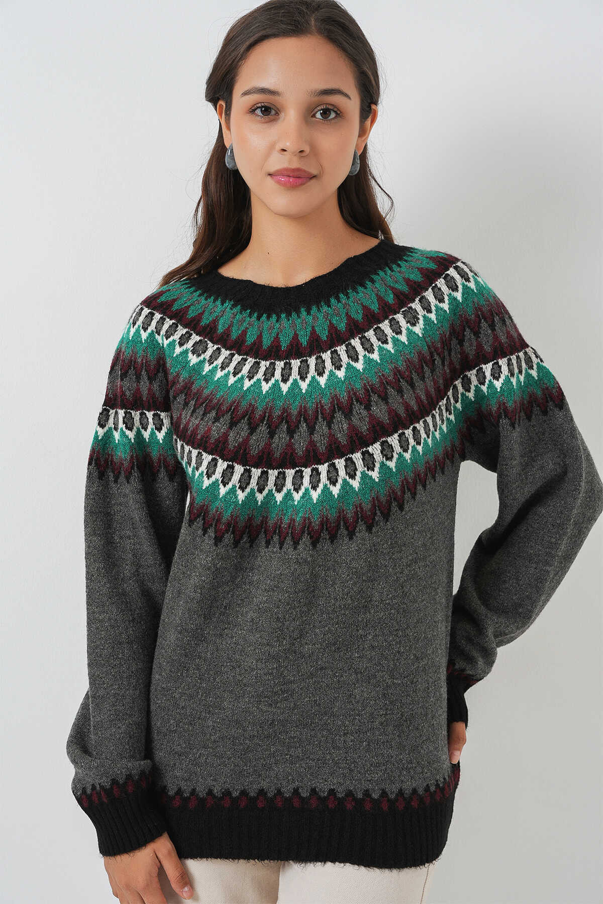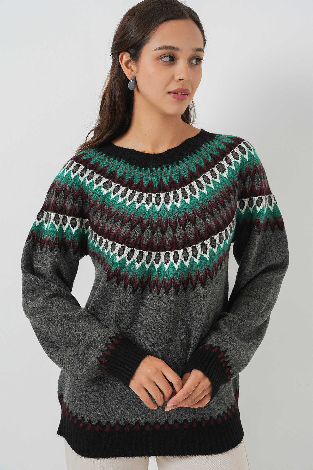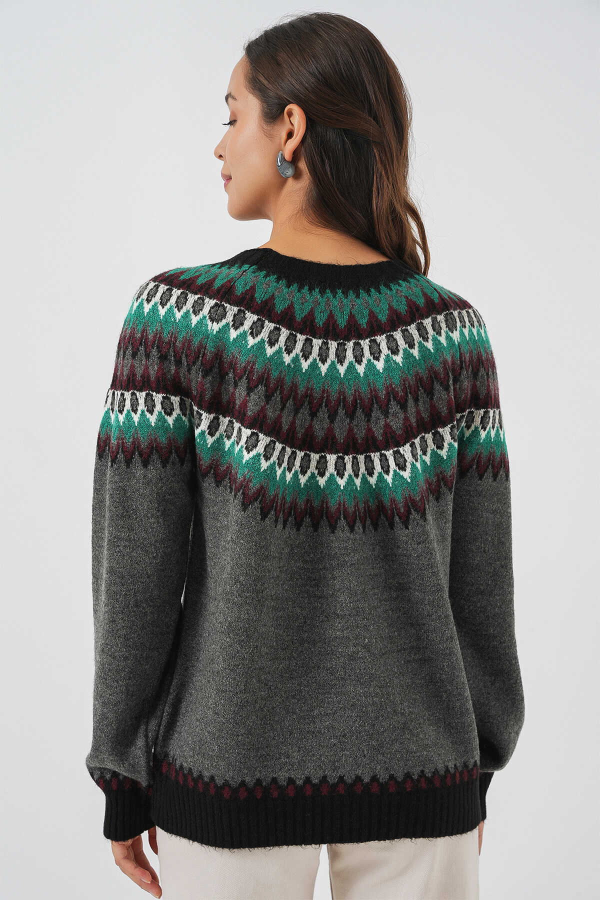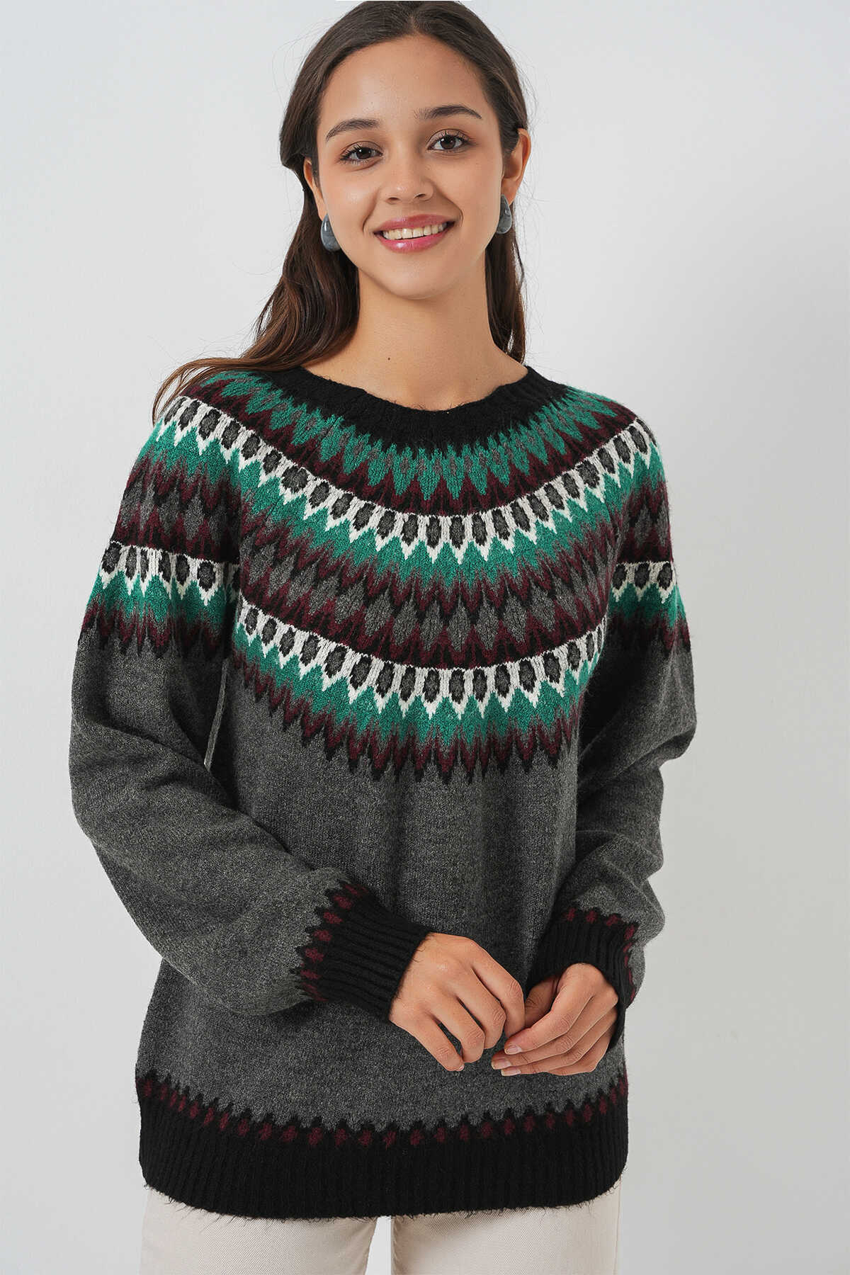Kadin Yumusak Dokulu Desenli Triko Kazak