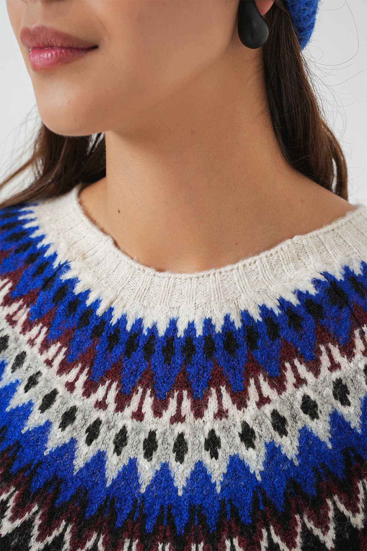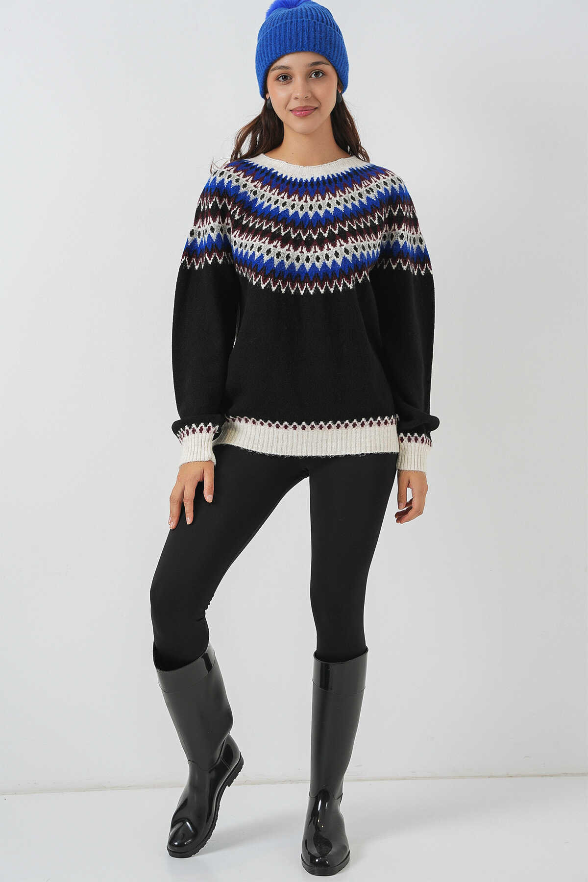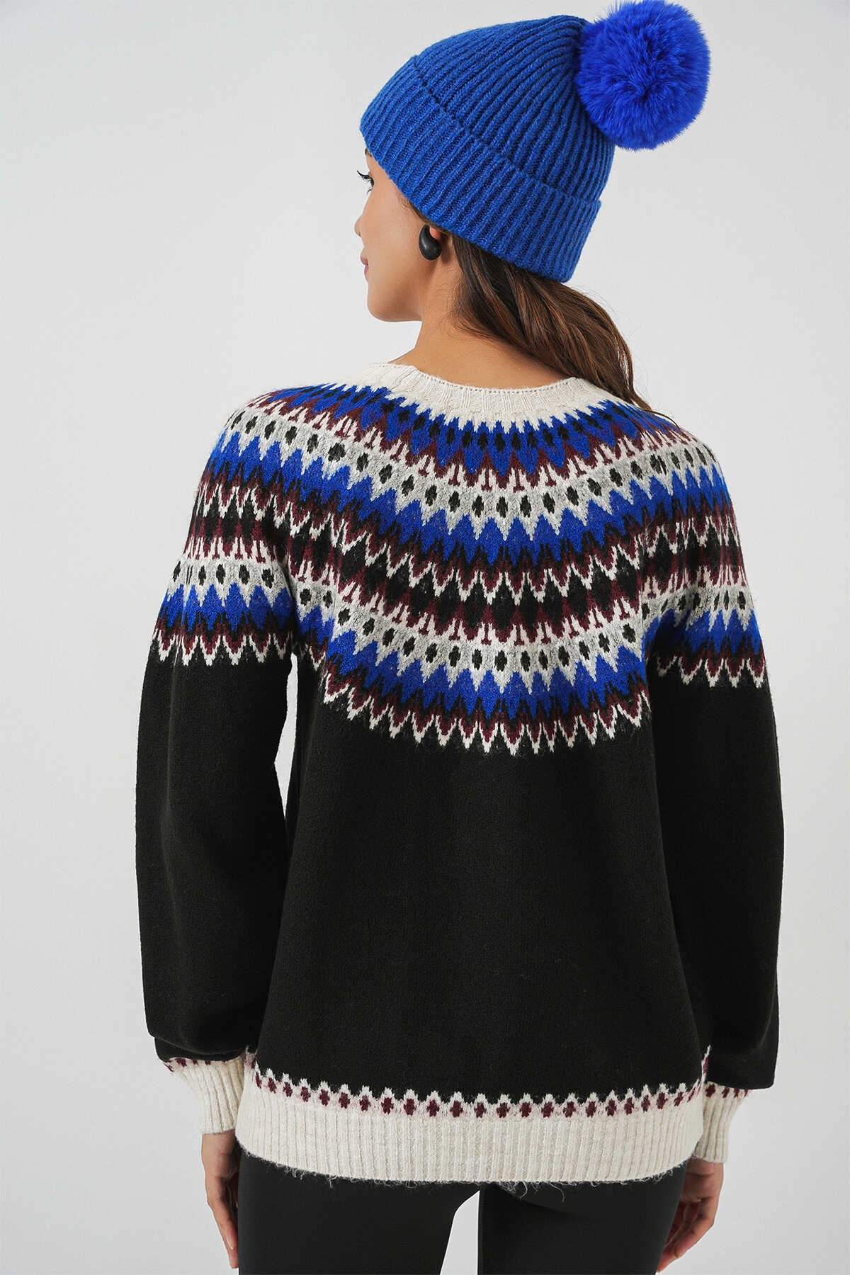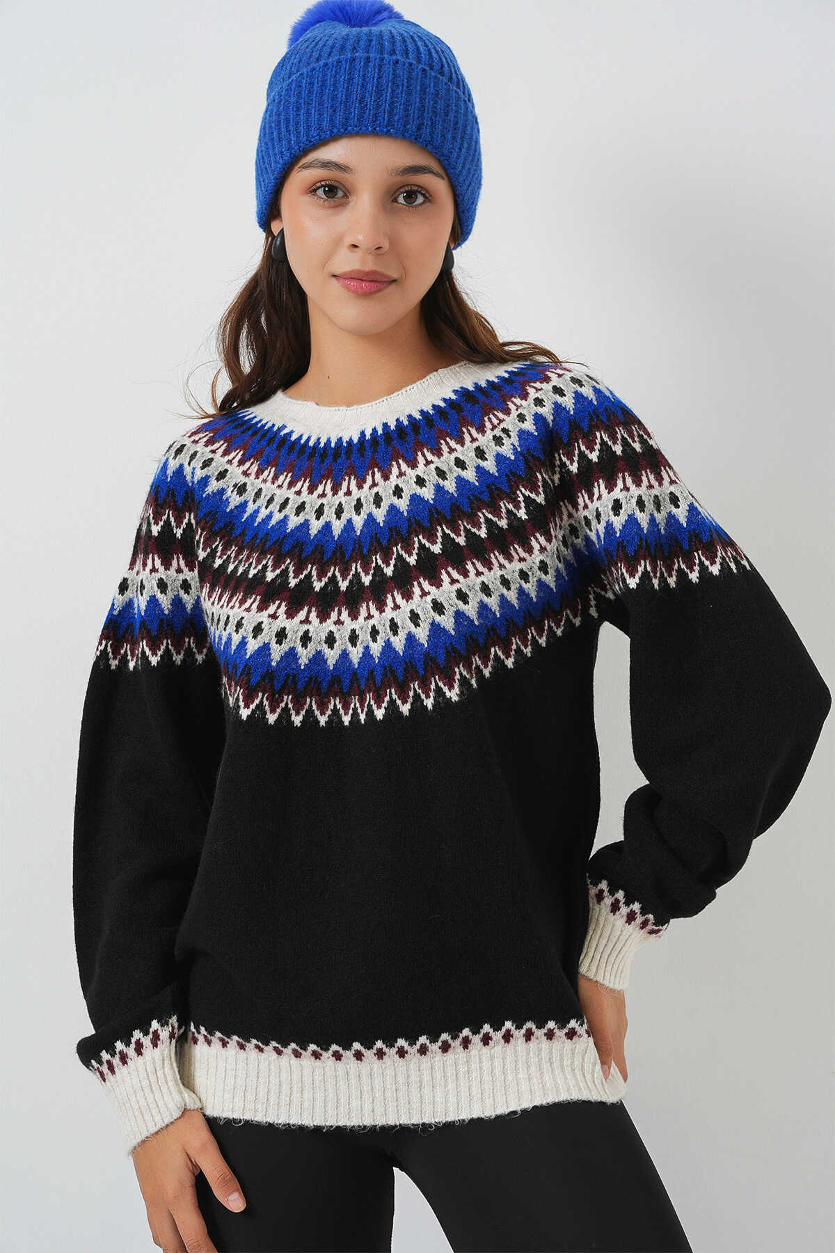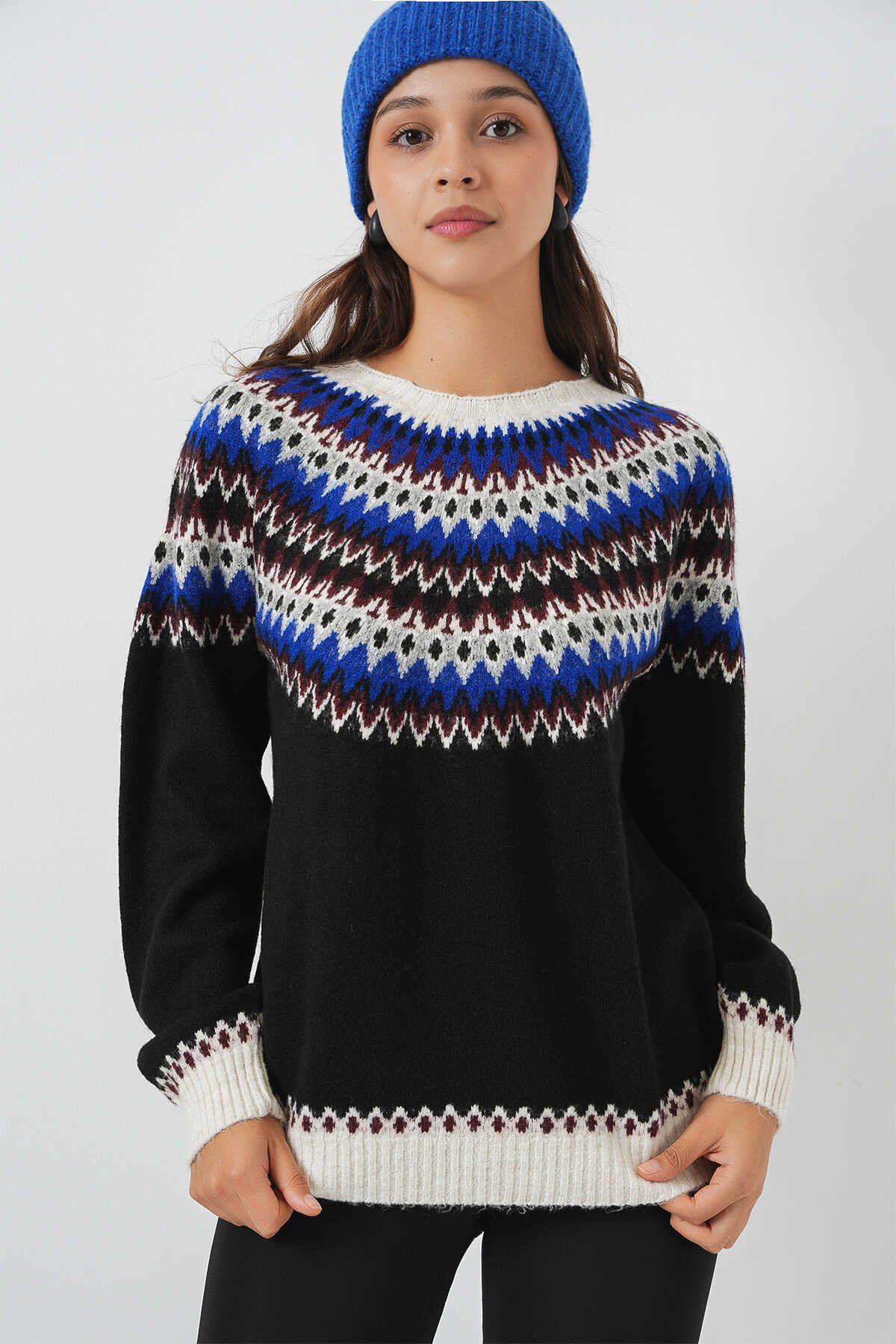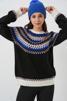 Kadin Yumusak Dokulu Desenli Triko Kazak