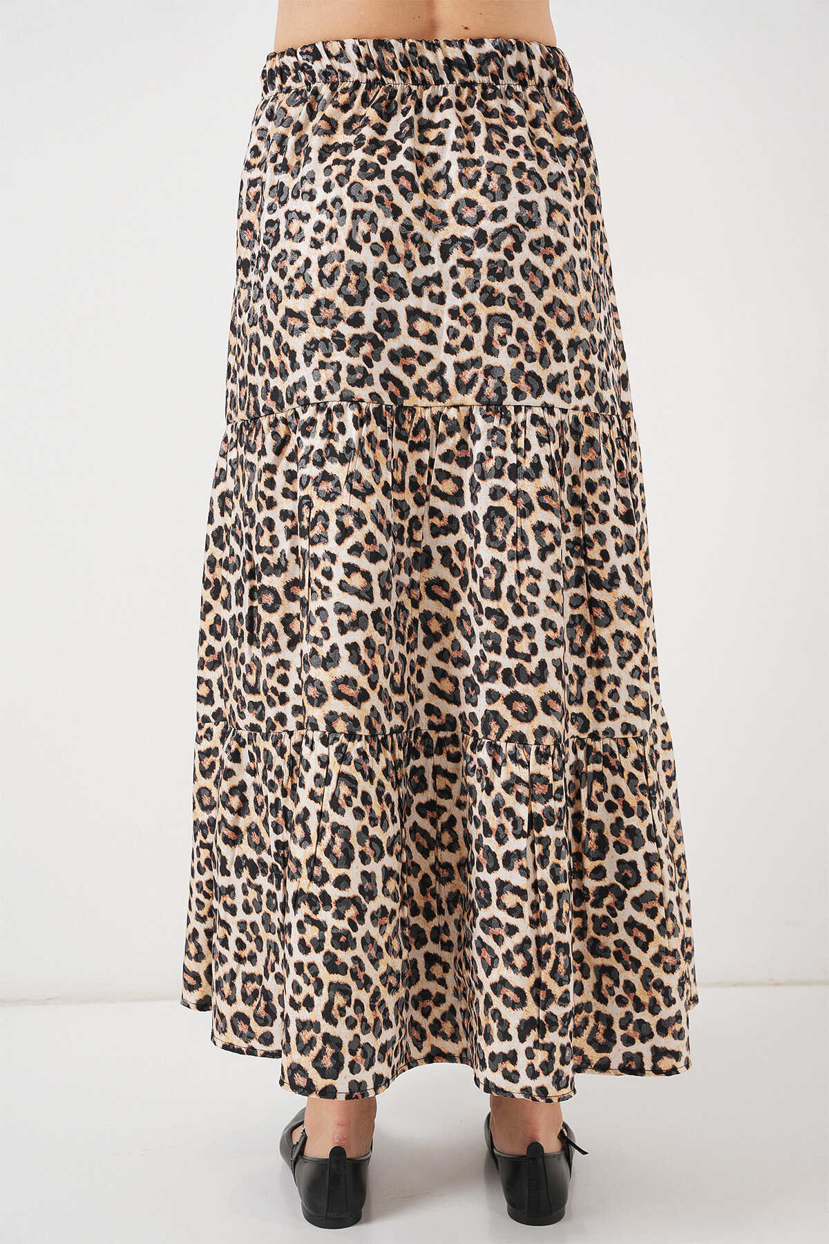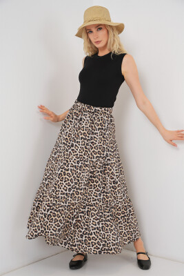 Kadın Desenli Uzun Etek 8053 - C. Kahverengi - Kombin