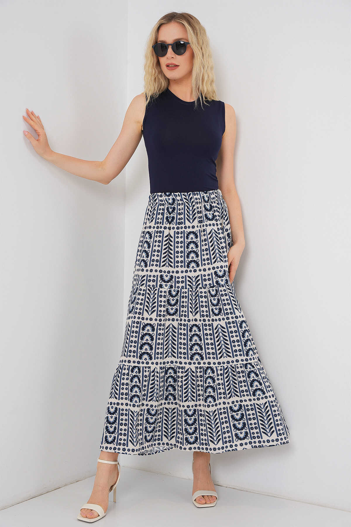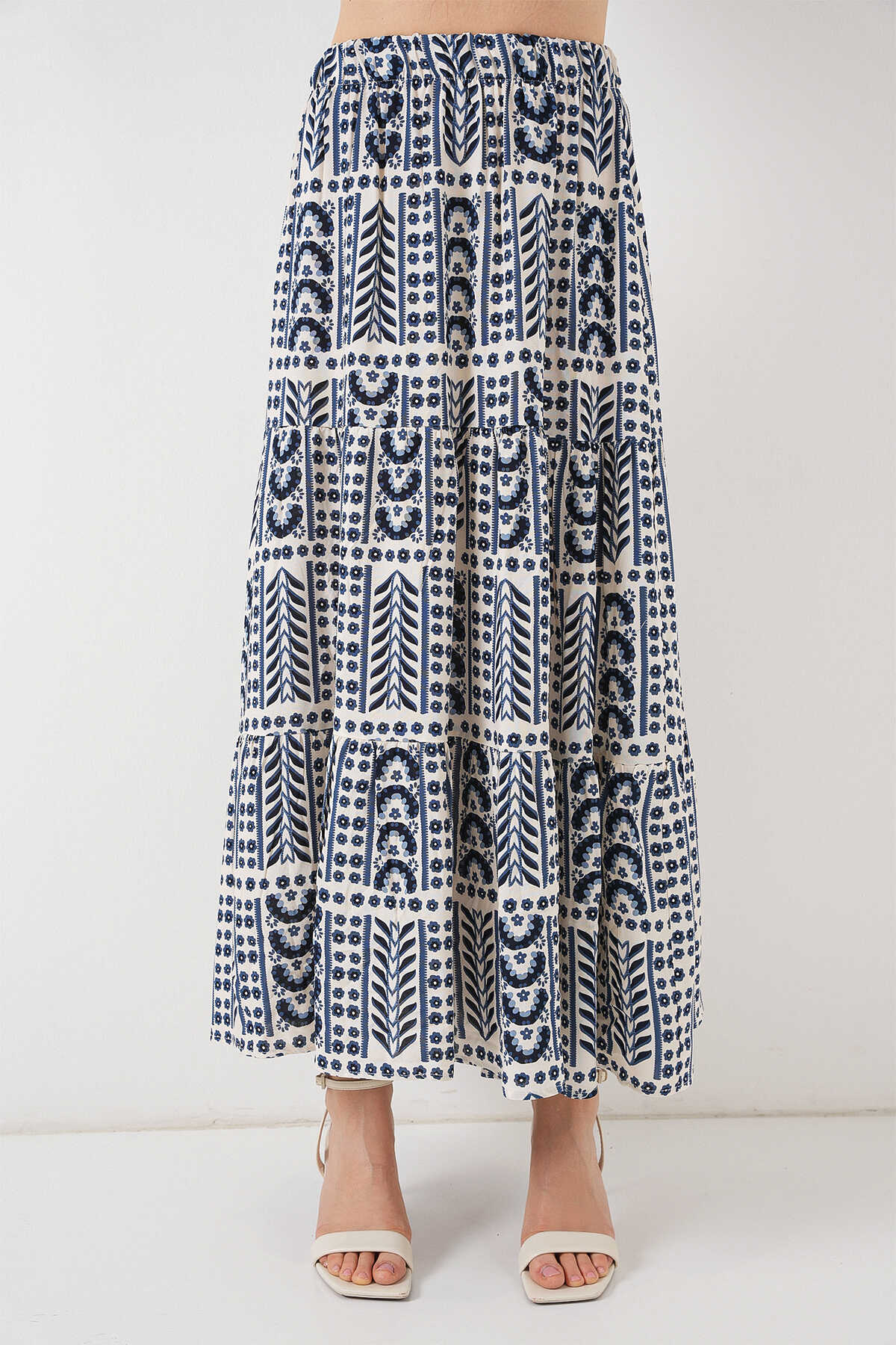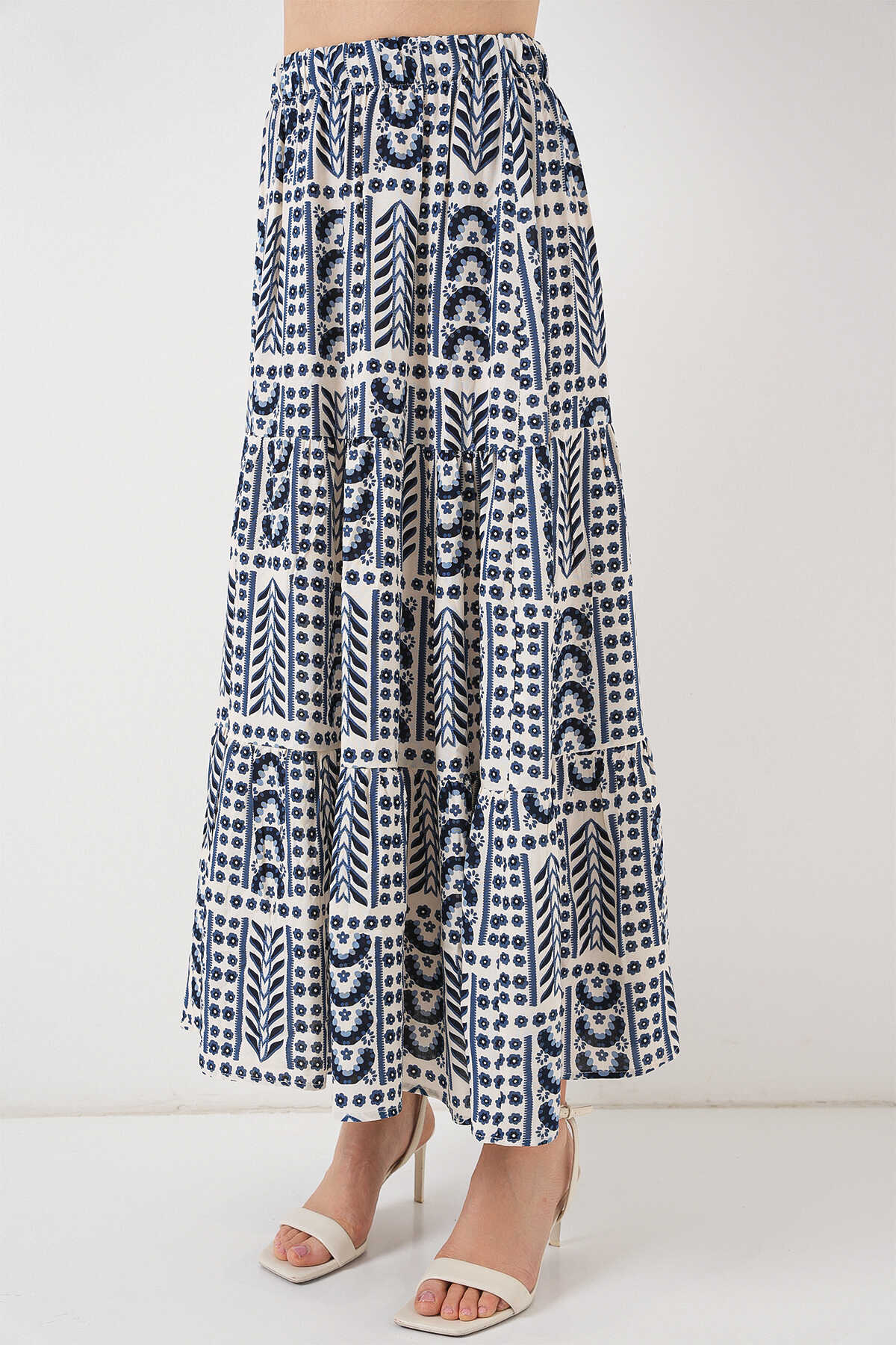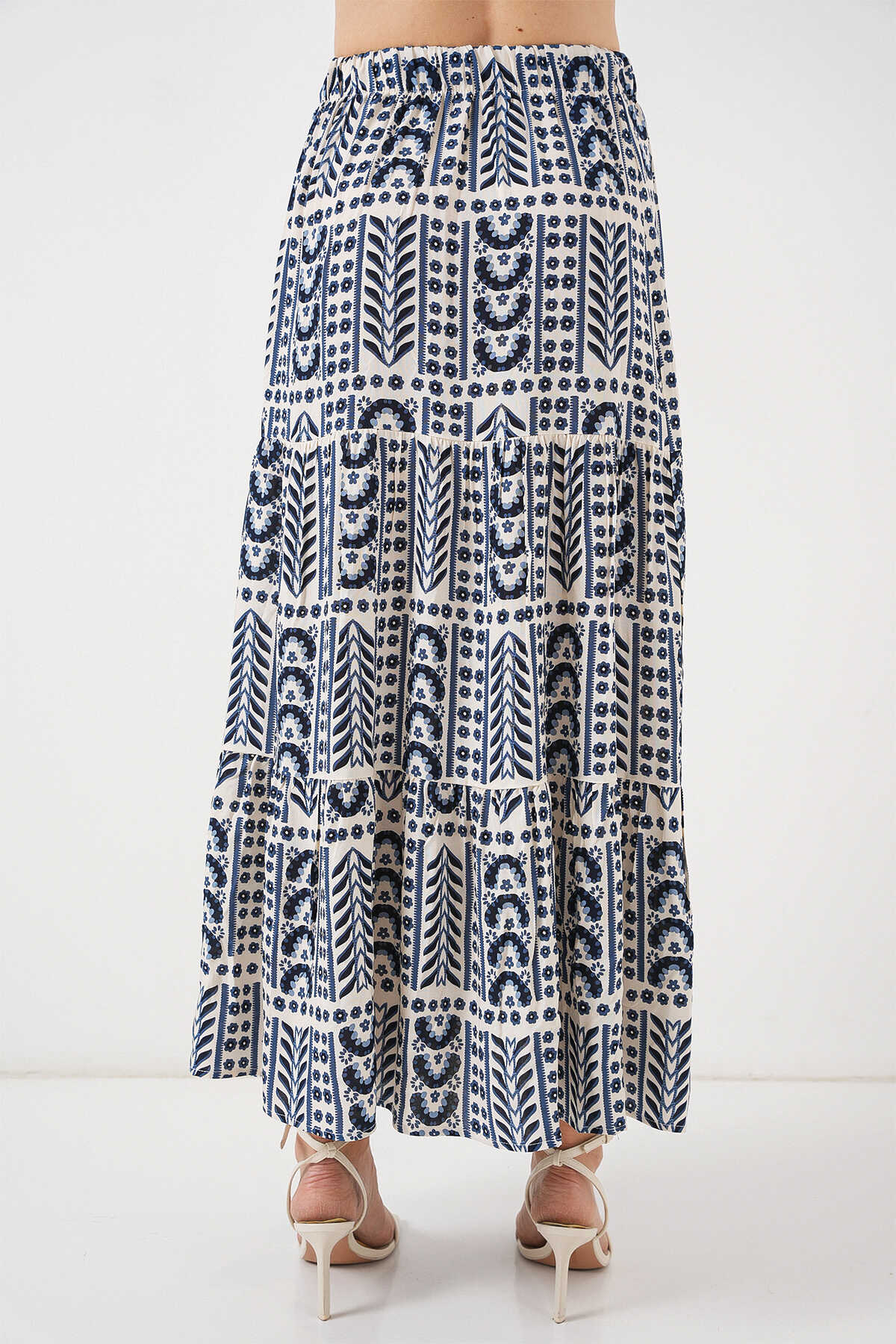 Kadın Desenli Uzun Etek 8053 - Krem - Kombin