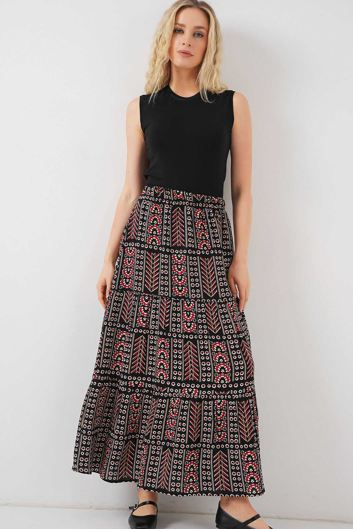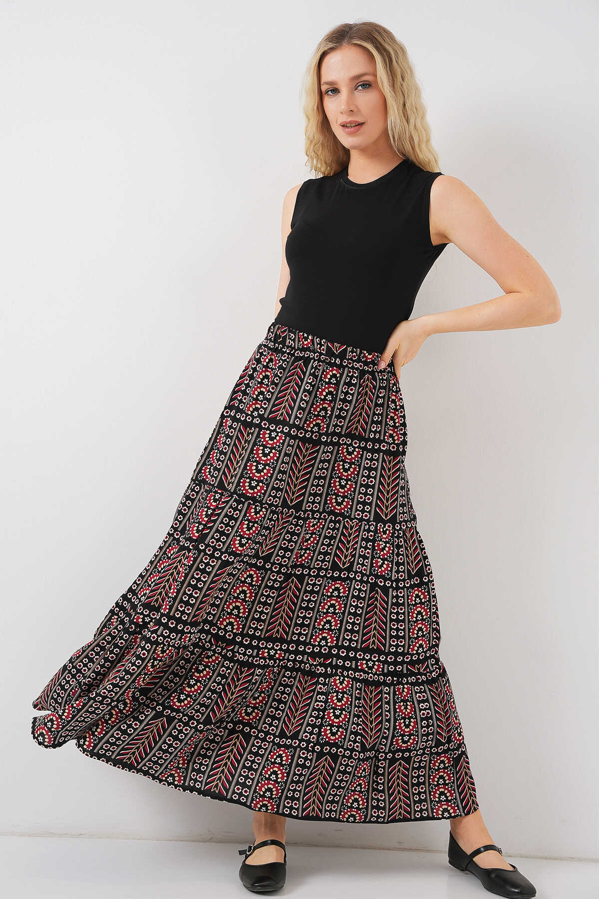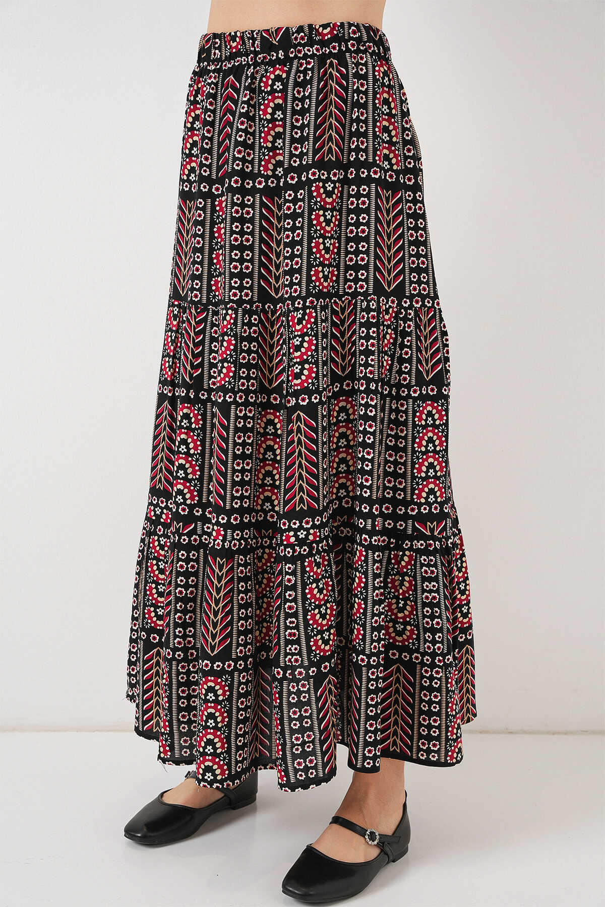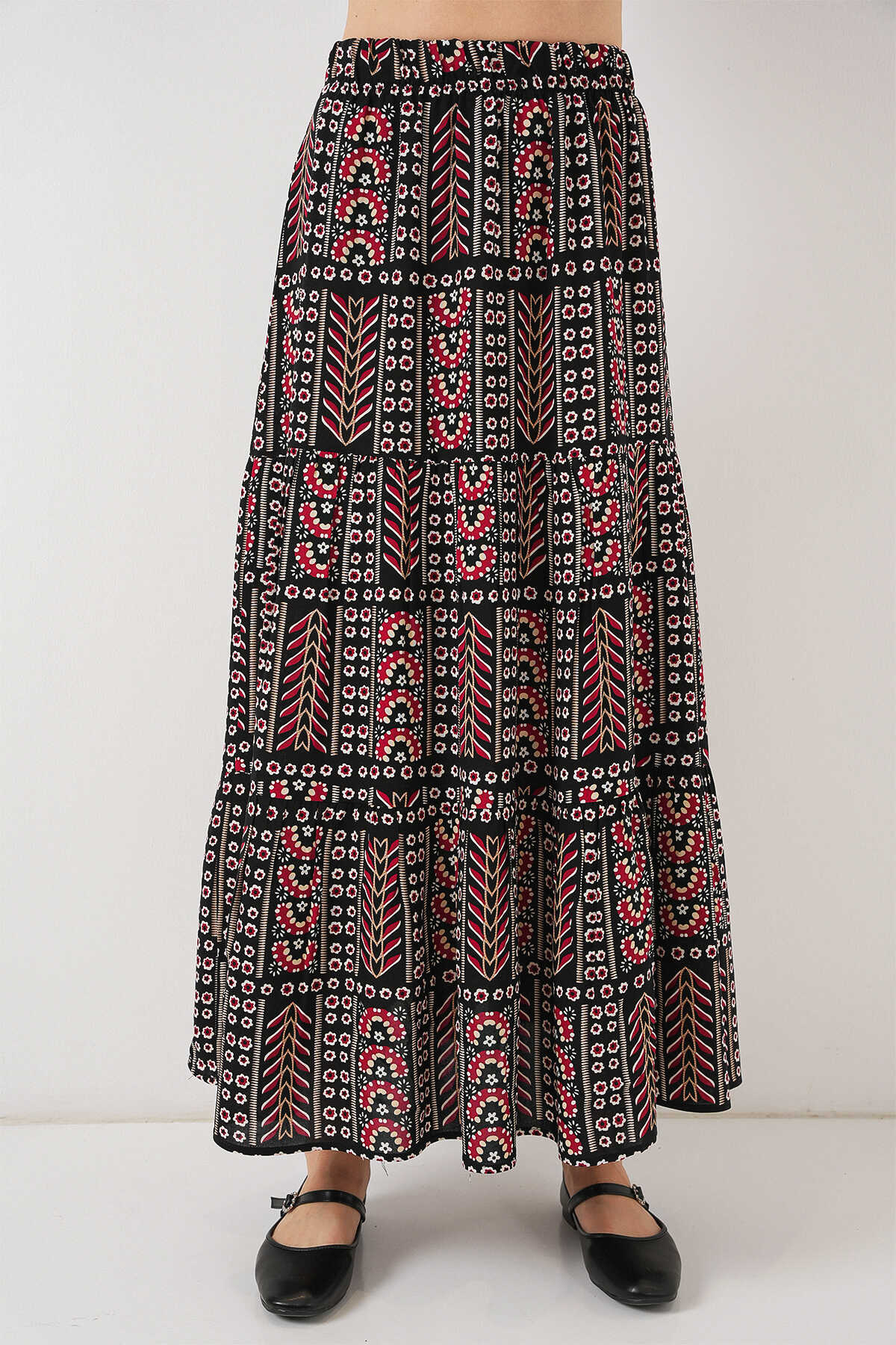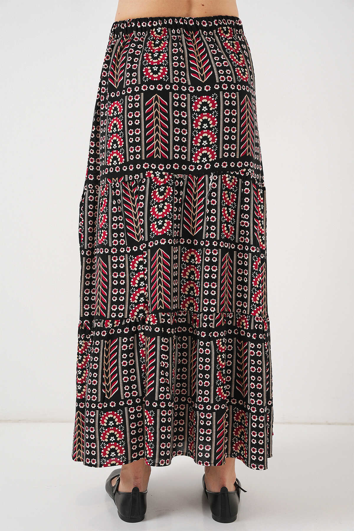 Kadın Desenli Uzun Etek 8053 - Siyah - Kombin