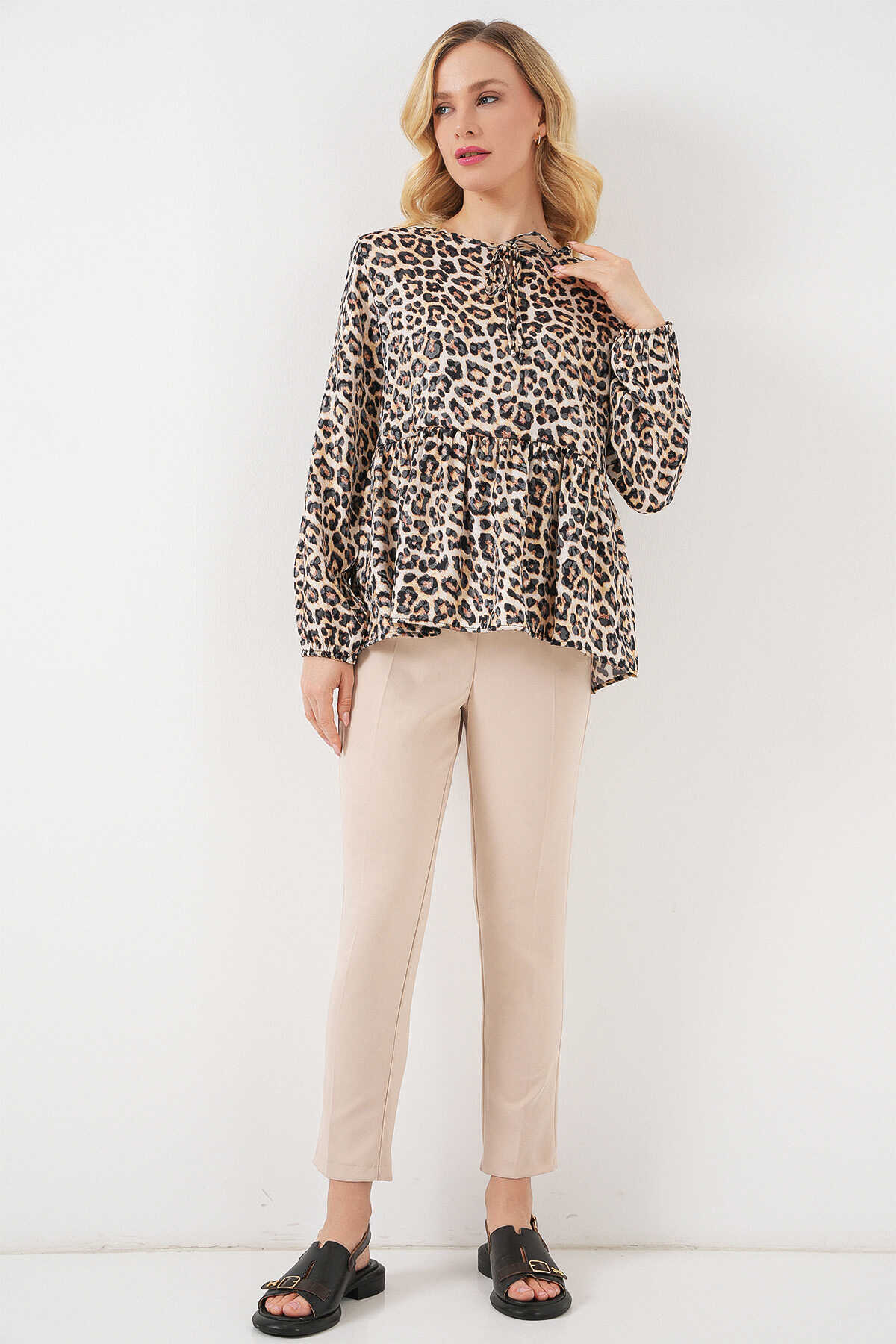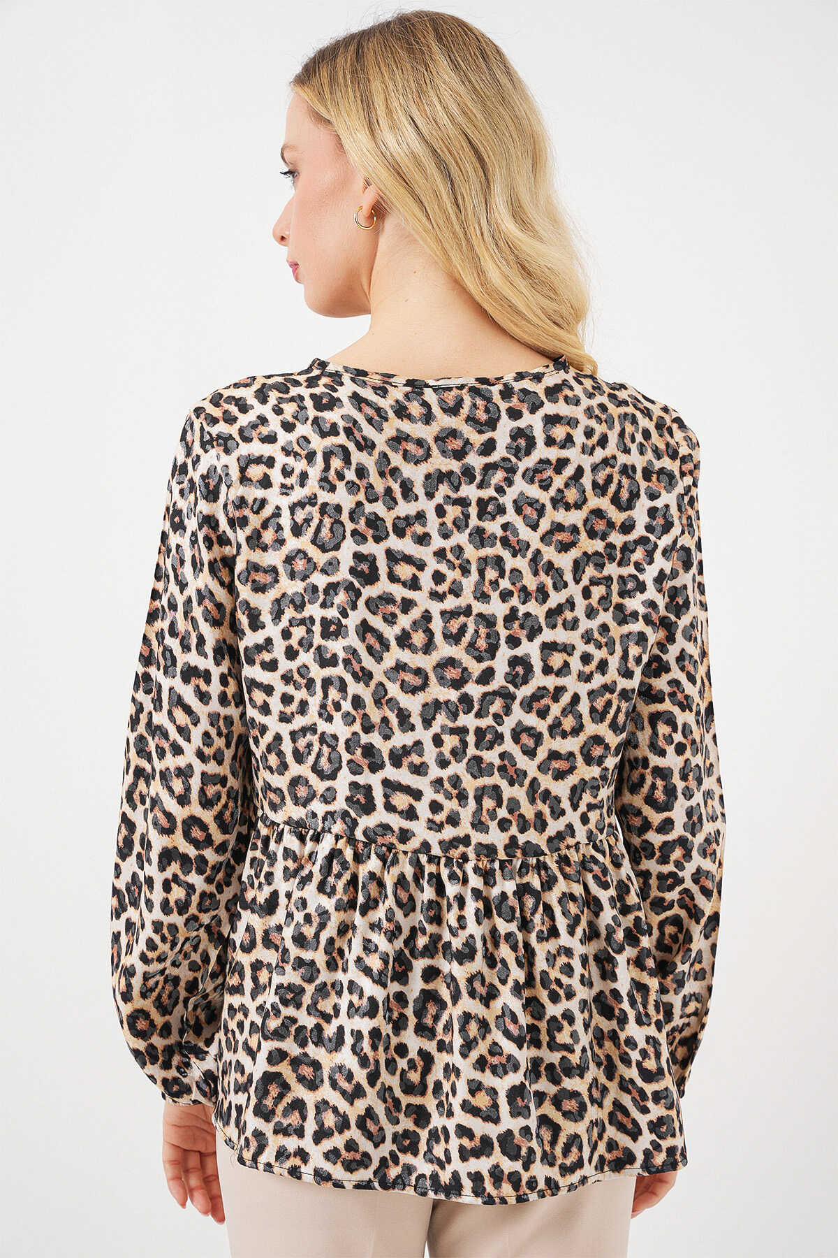 Kadın Desenli Uzun Kol Bluz 970 - C. Kahverengi - Kombin