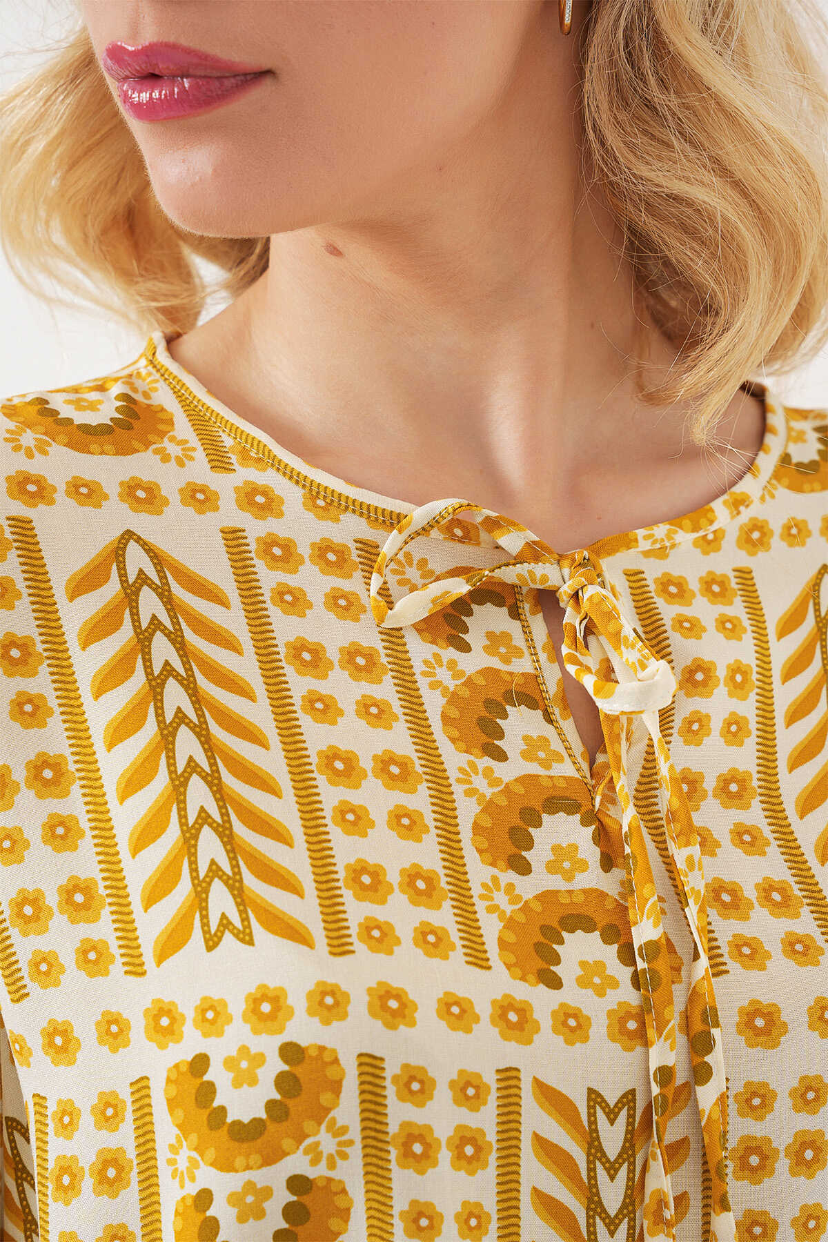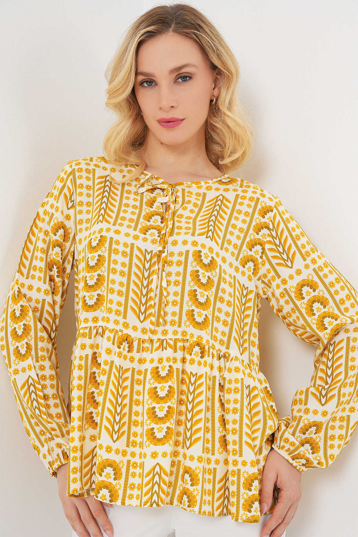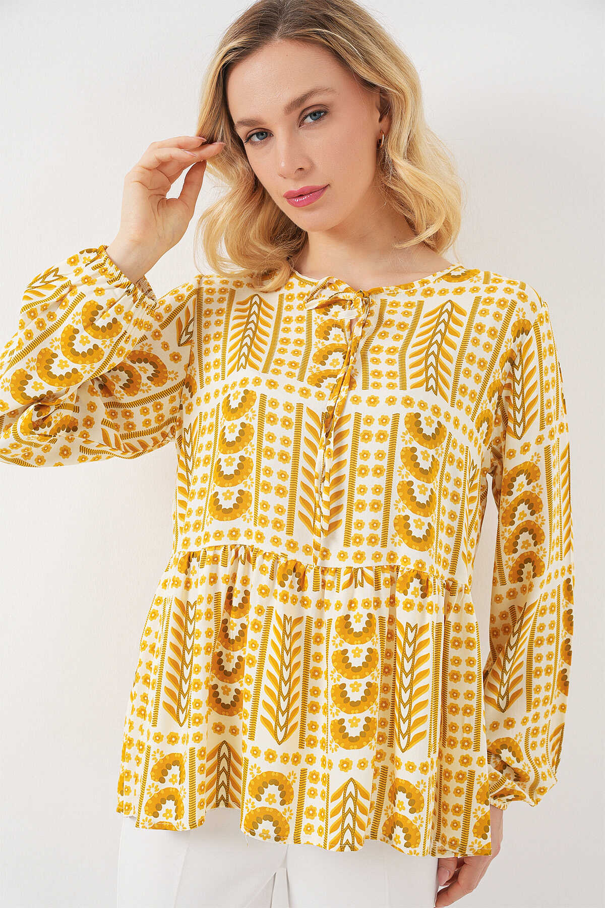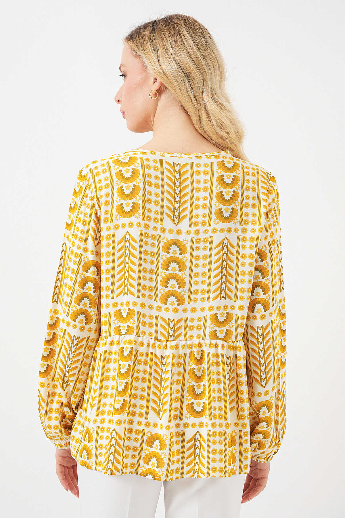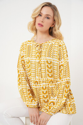 Kadın Desenli Uzun Kol Bluz 970 - Sarı - Kombin