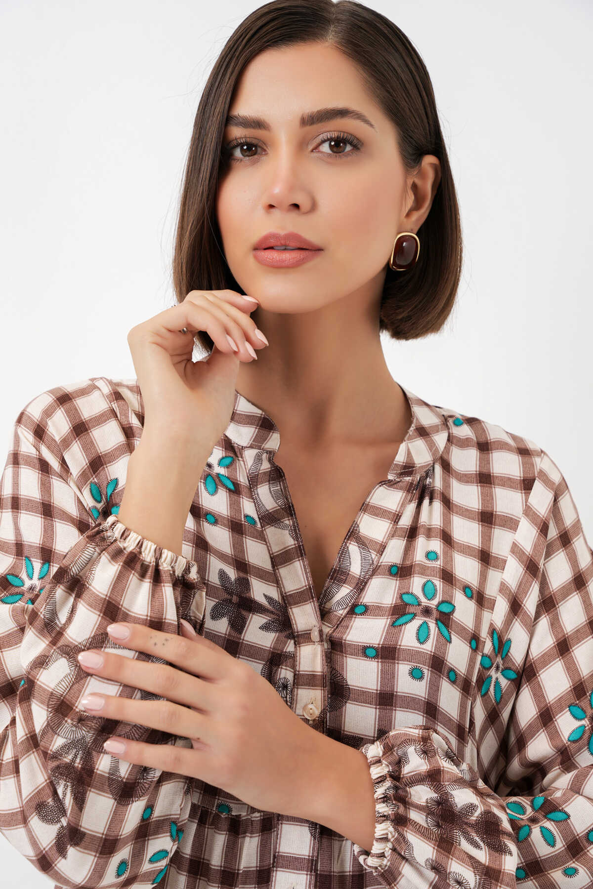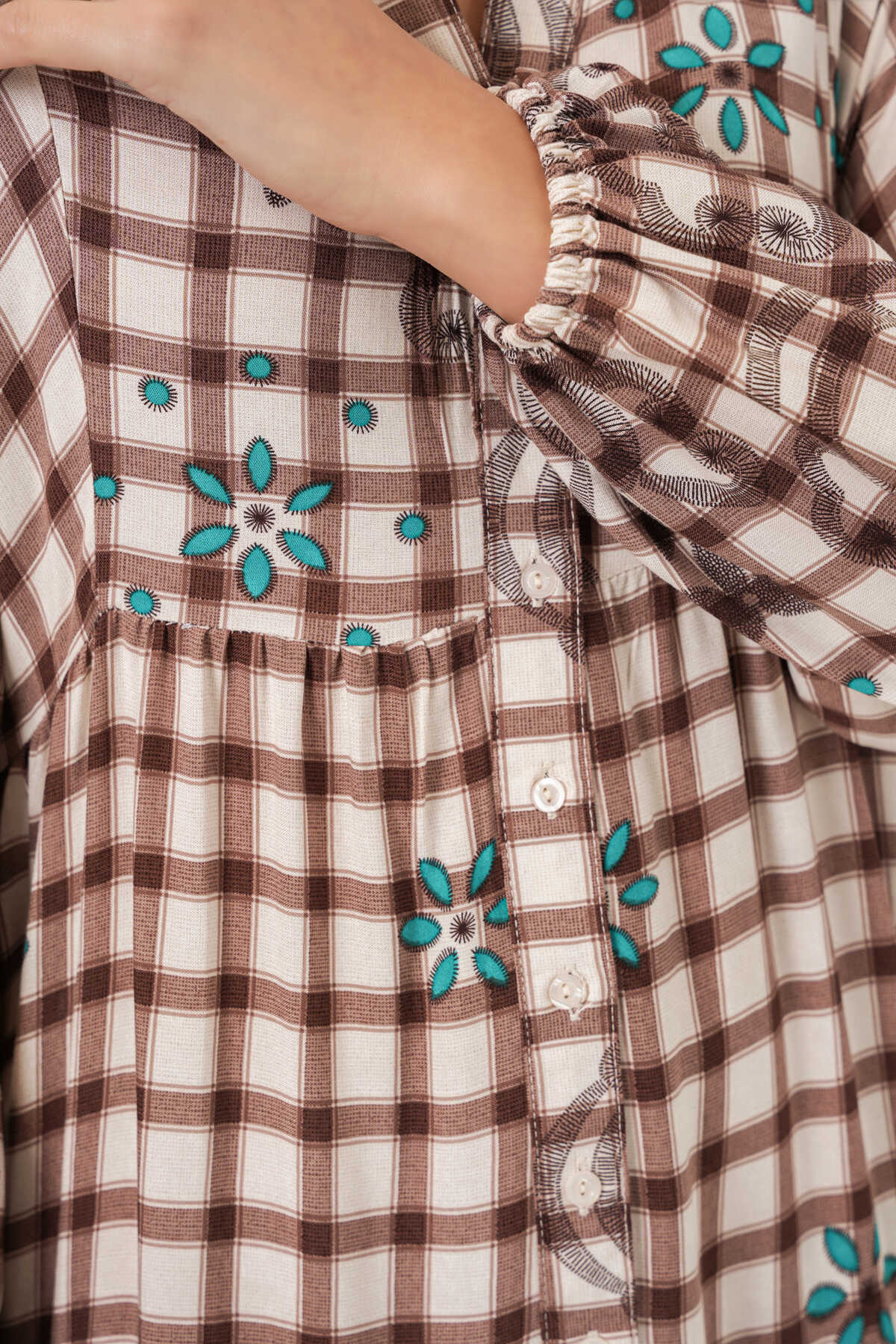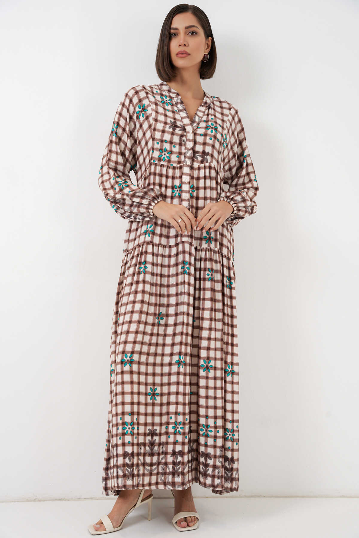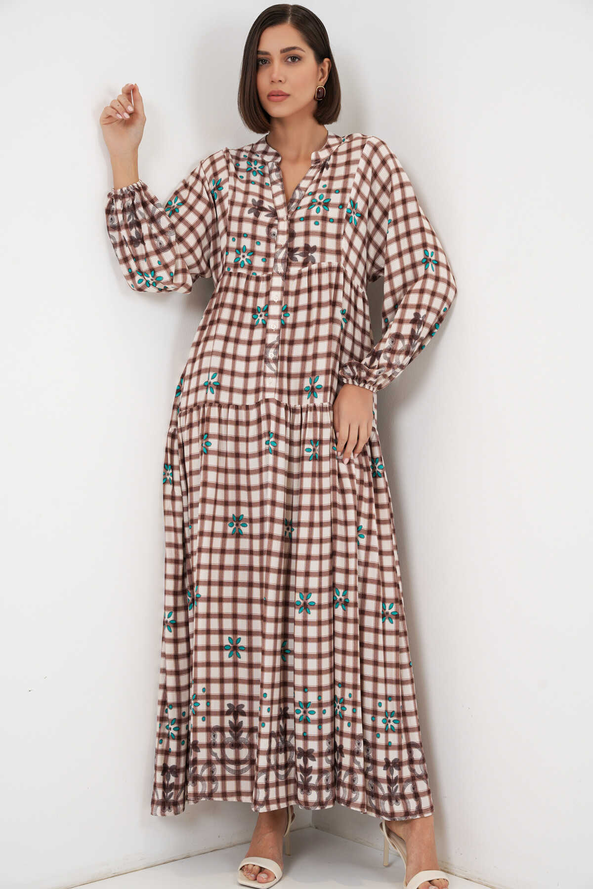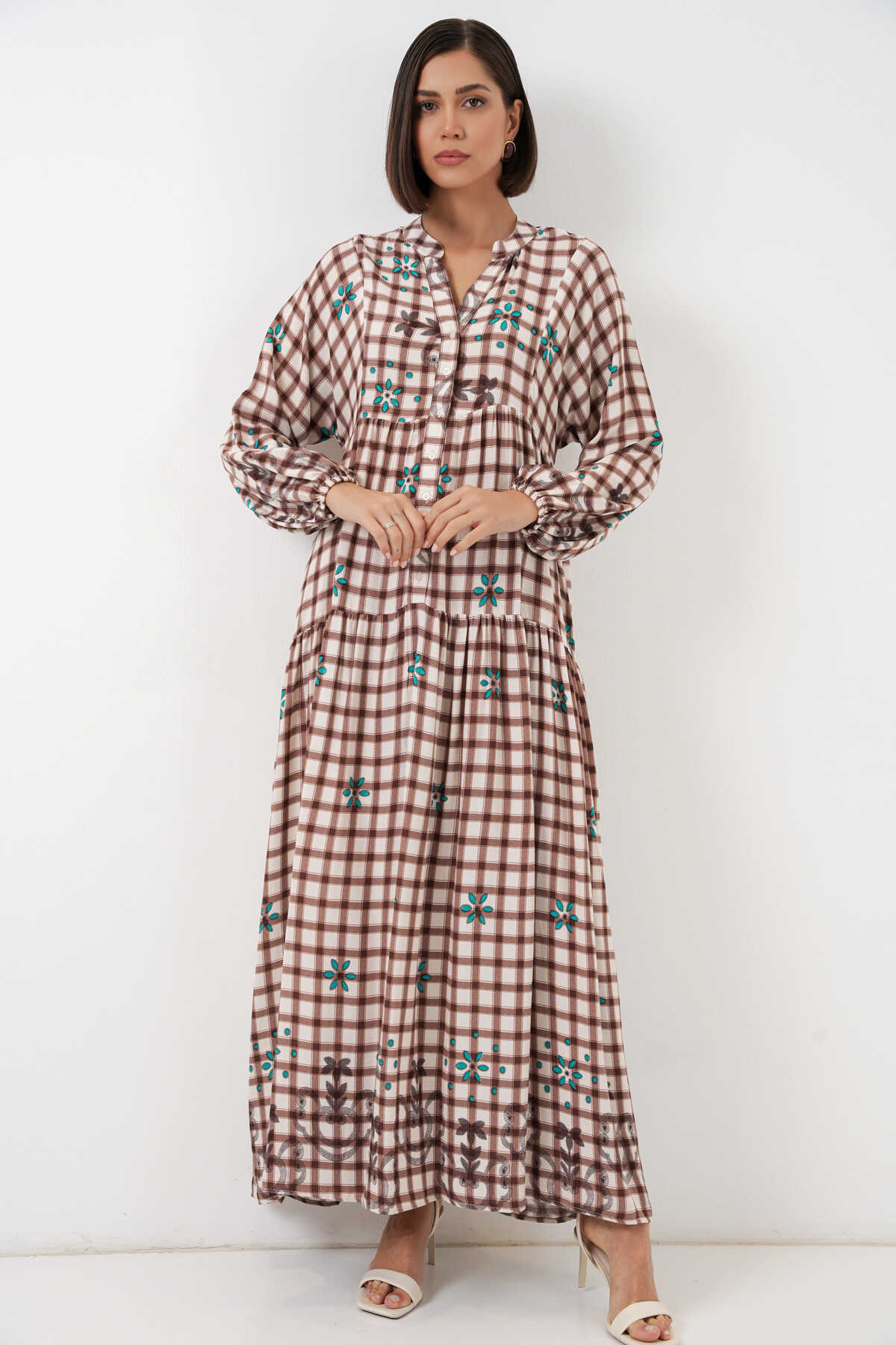 Kadın Desenli Uzun Tesettür Elbise 2585 - A.Taba