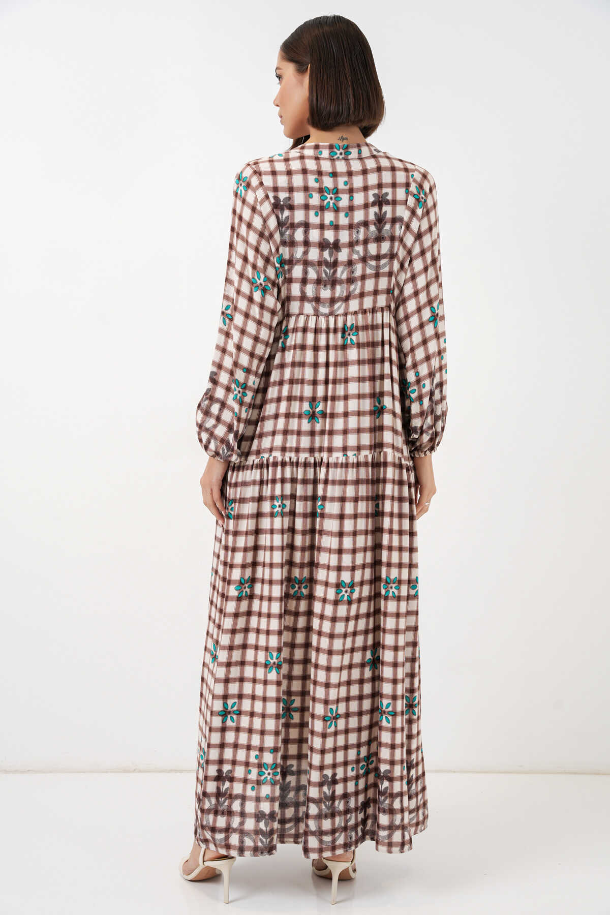 Kadın Desenli Uzun Tesettür Elbise 2585 - A.Taba - Kombin