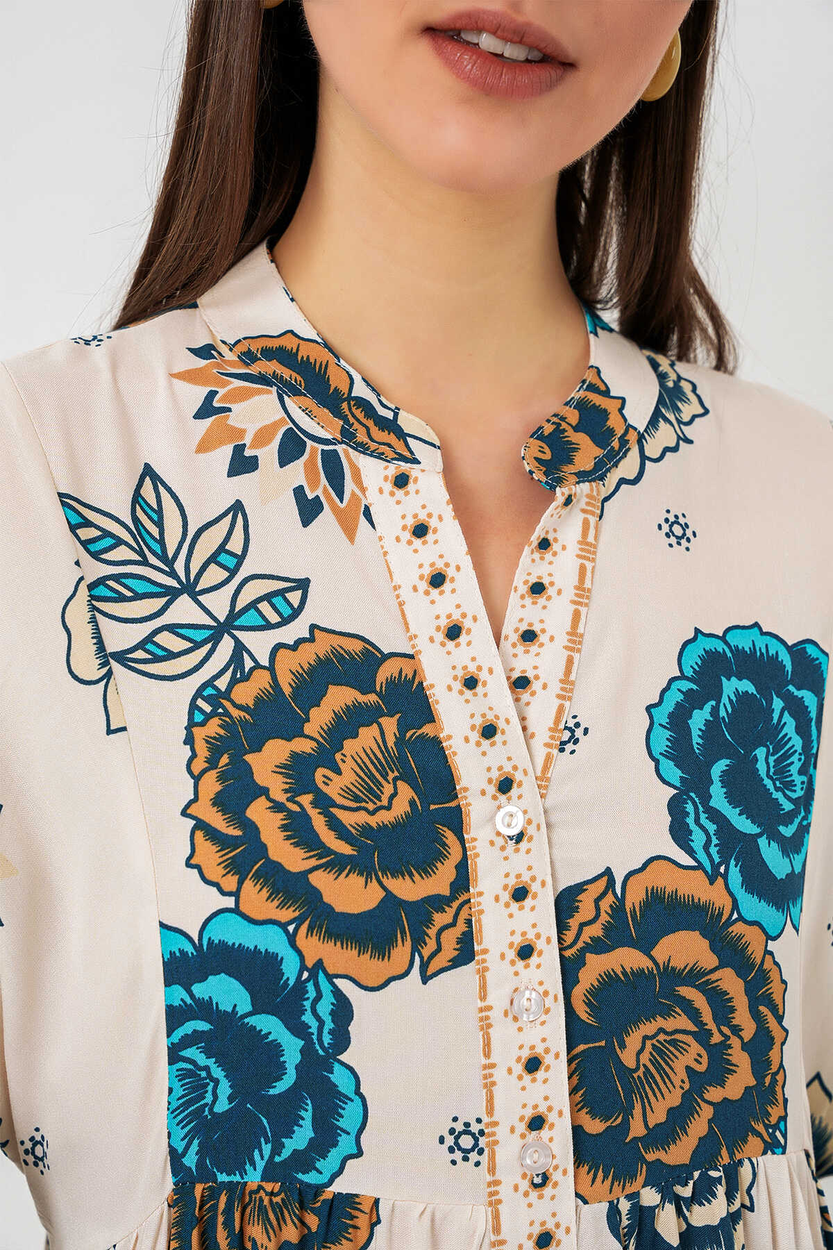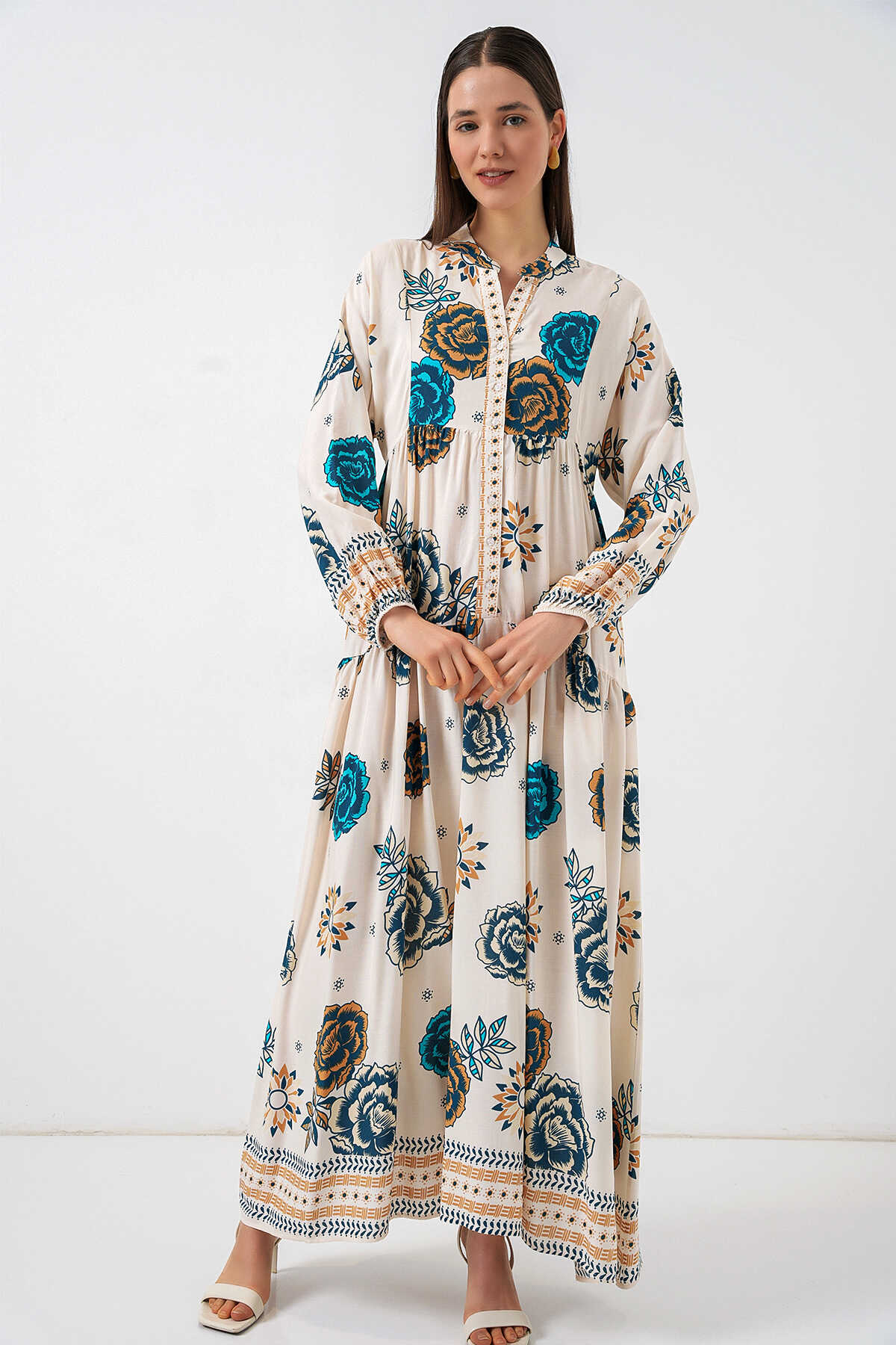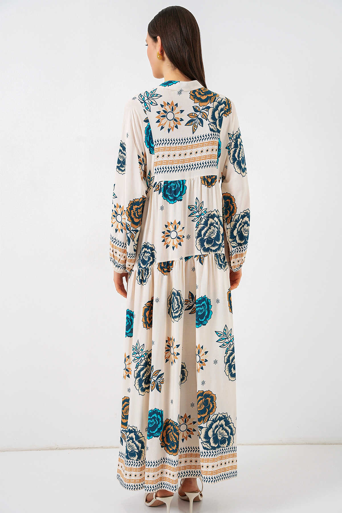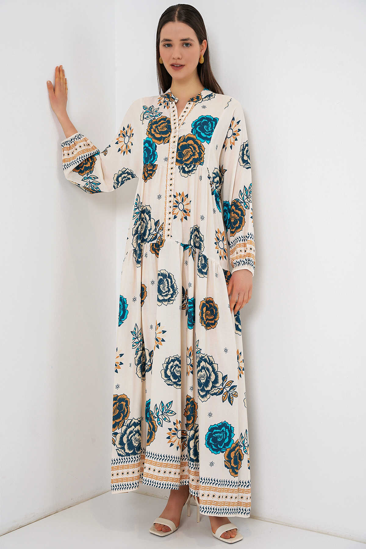 Kadın Desenli Uzun Tesettür Elbise 2585 - A.SAKS - Kombin