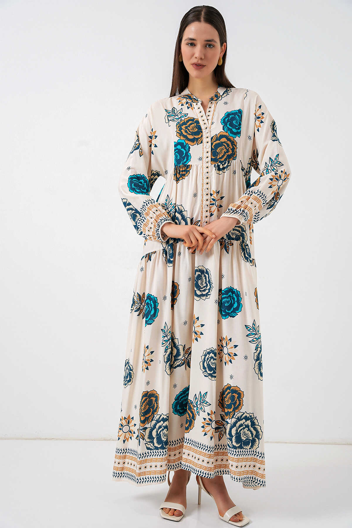 Kadın Desenli Uzun Tesettür Elbise 2585 - A.SAKS