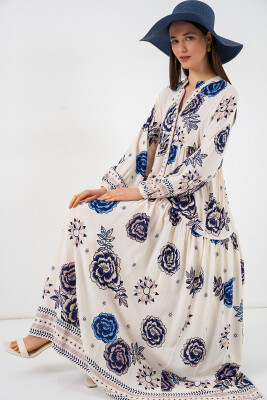 Kadın Desenli Uzun Tesettür Elbise 2585 - B.Lacivert