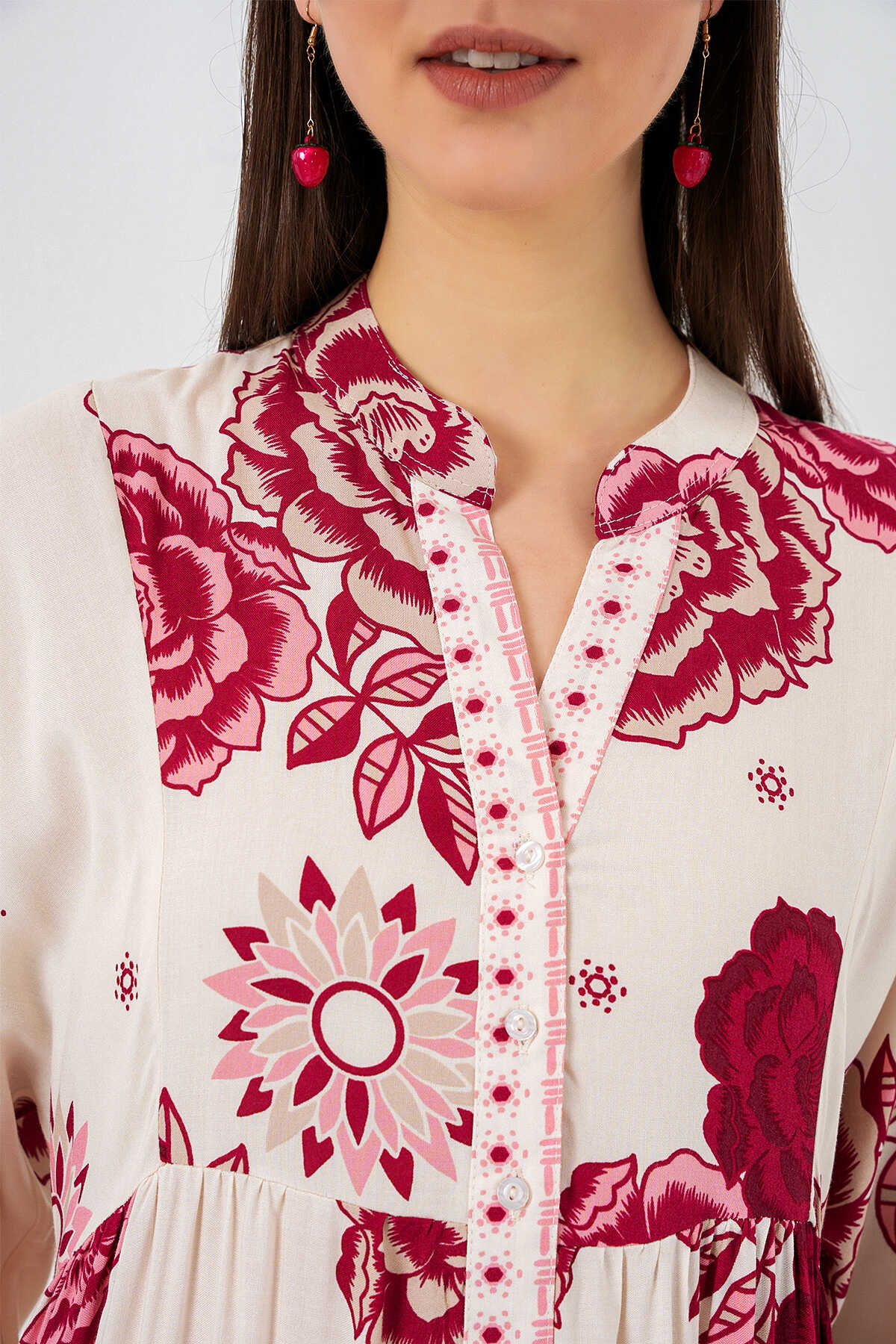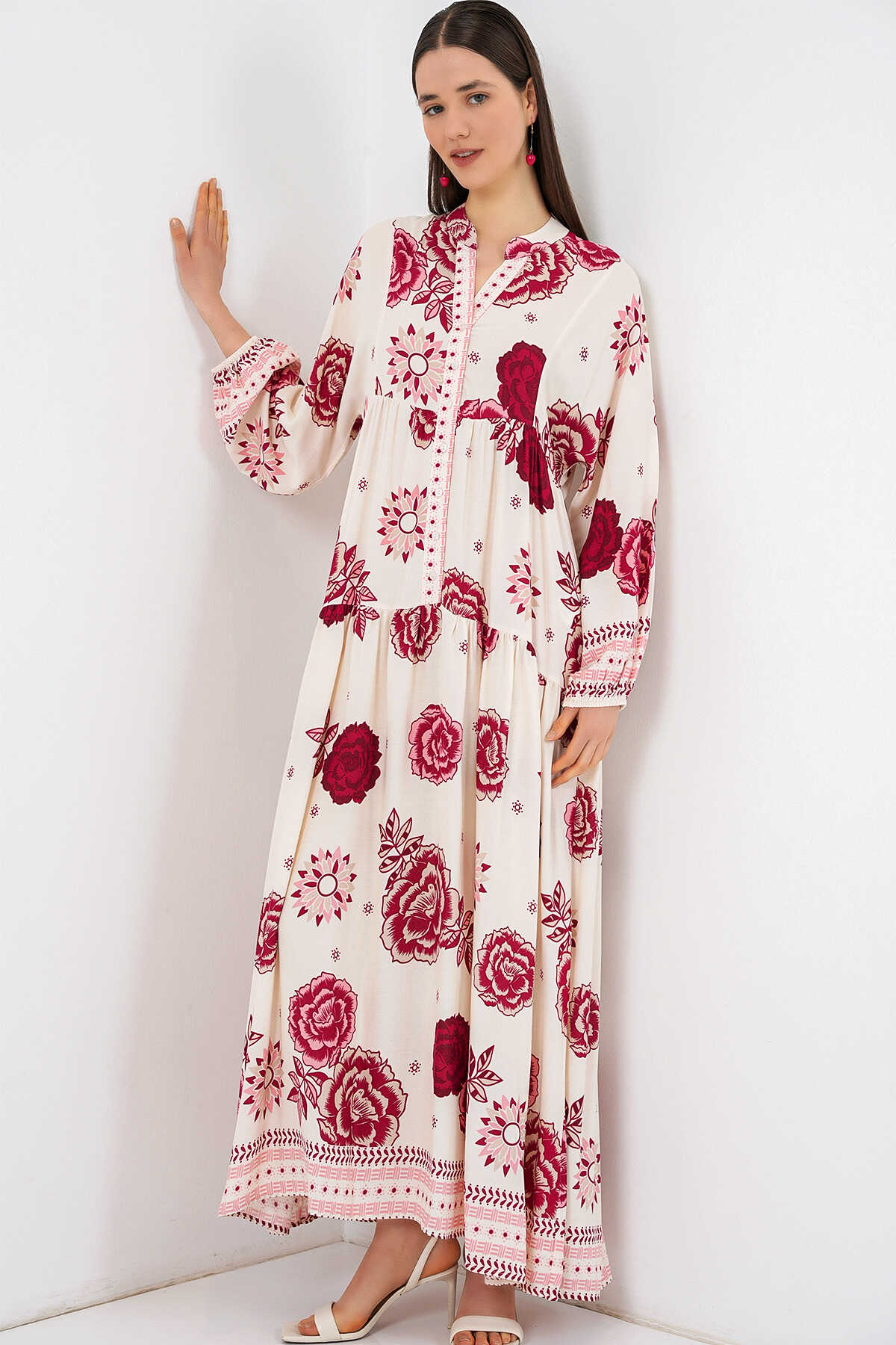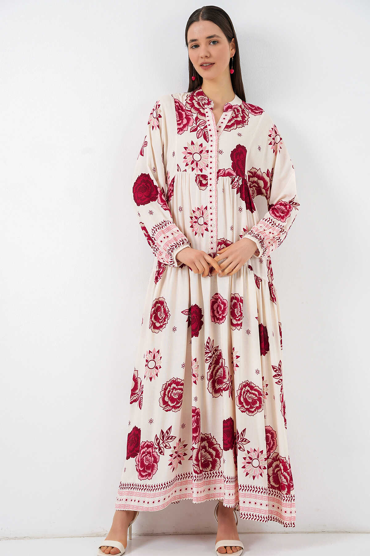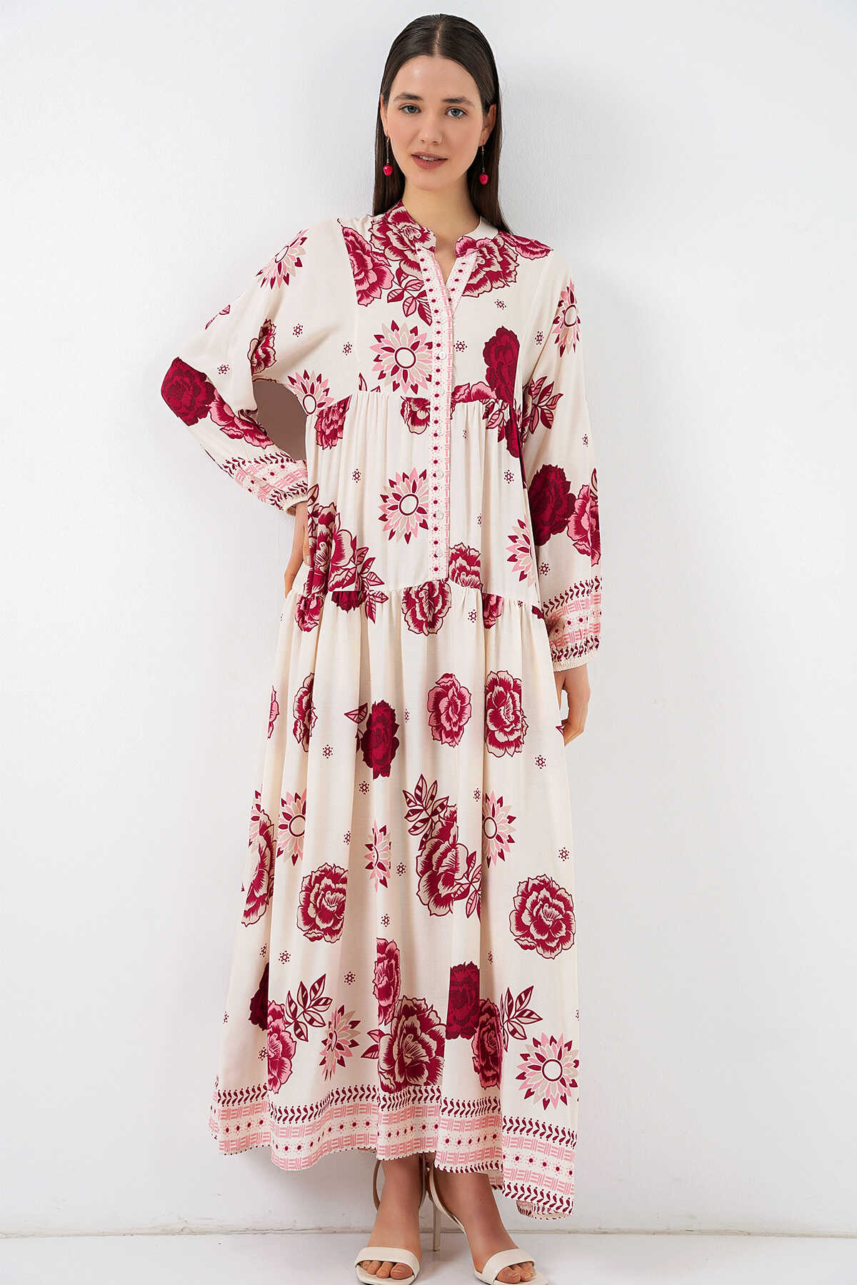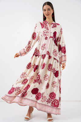 Kadın Desenli Uzun Tesettür Elbise 2585 - Bordo 1 - Kombin