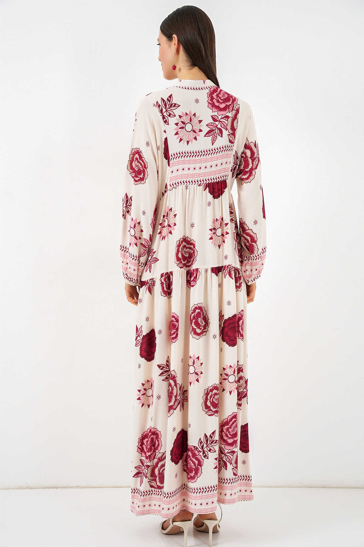 Kadın Desenli Uzun Tesettür Elbise 2585 - Bordo 1