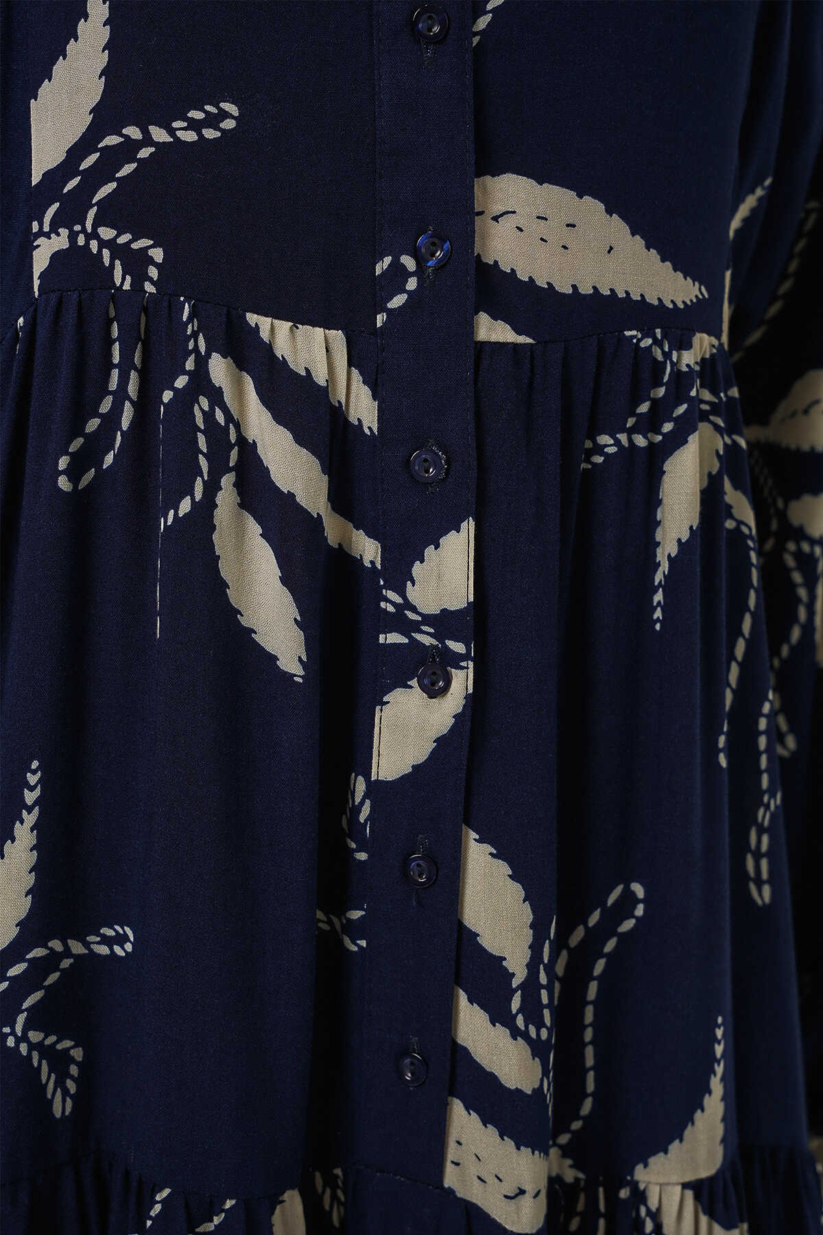 Kadın Desenli Uzun Tesettür Elbise 2585 - D.Lacivert