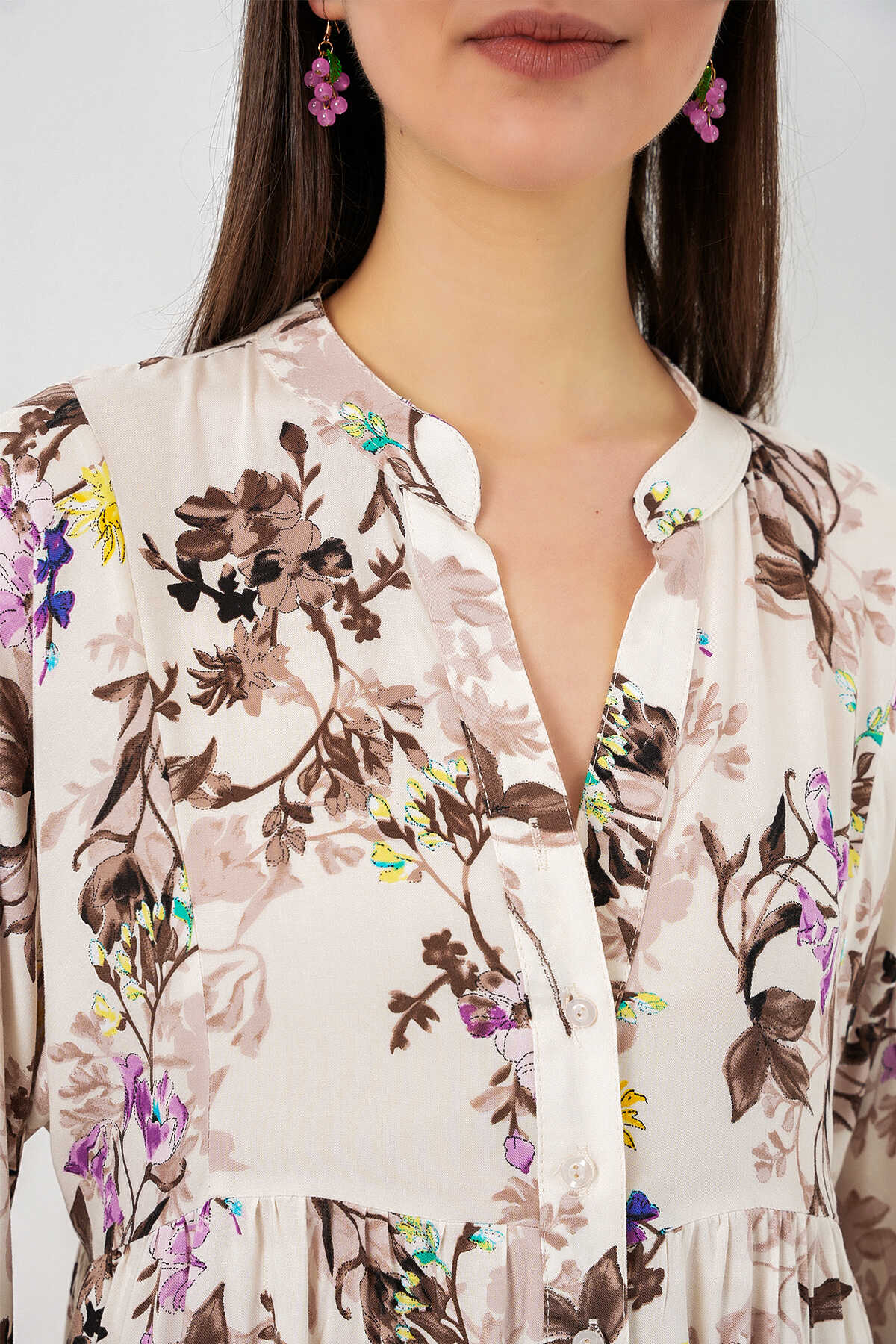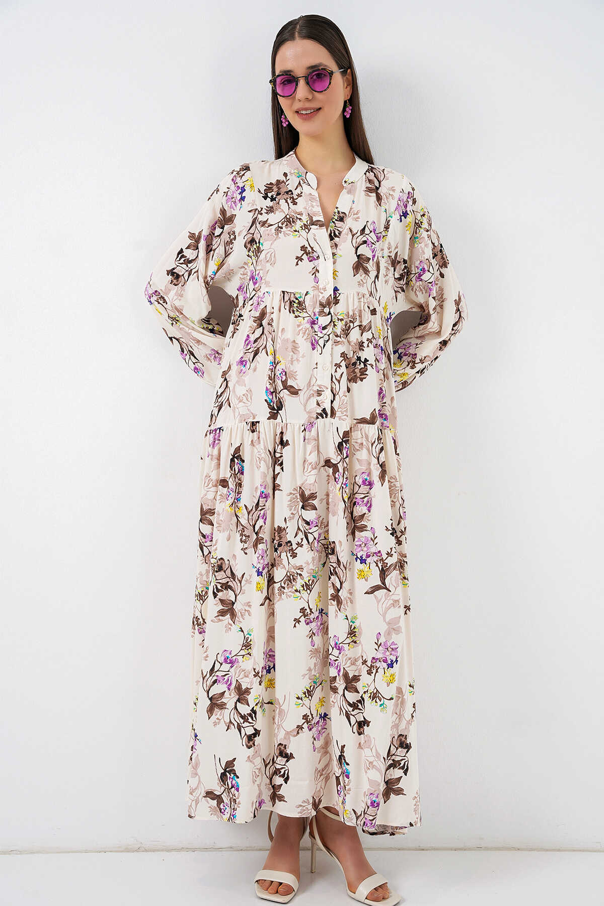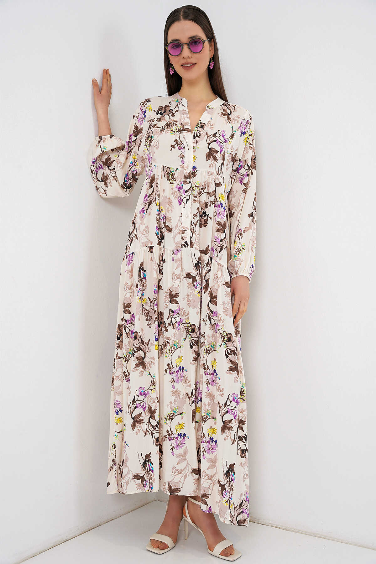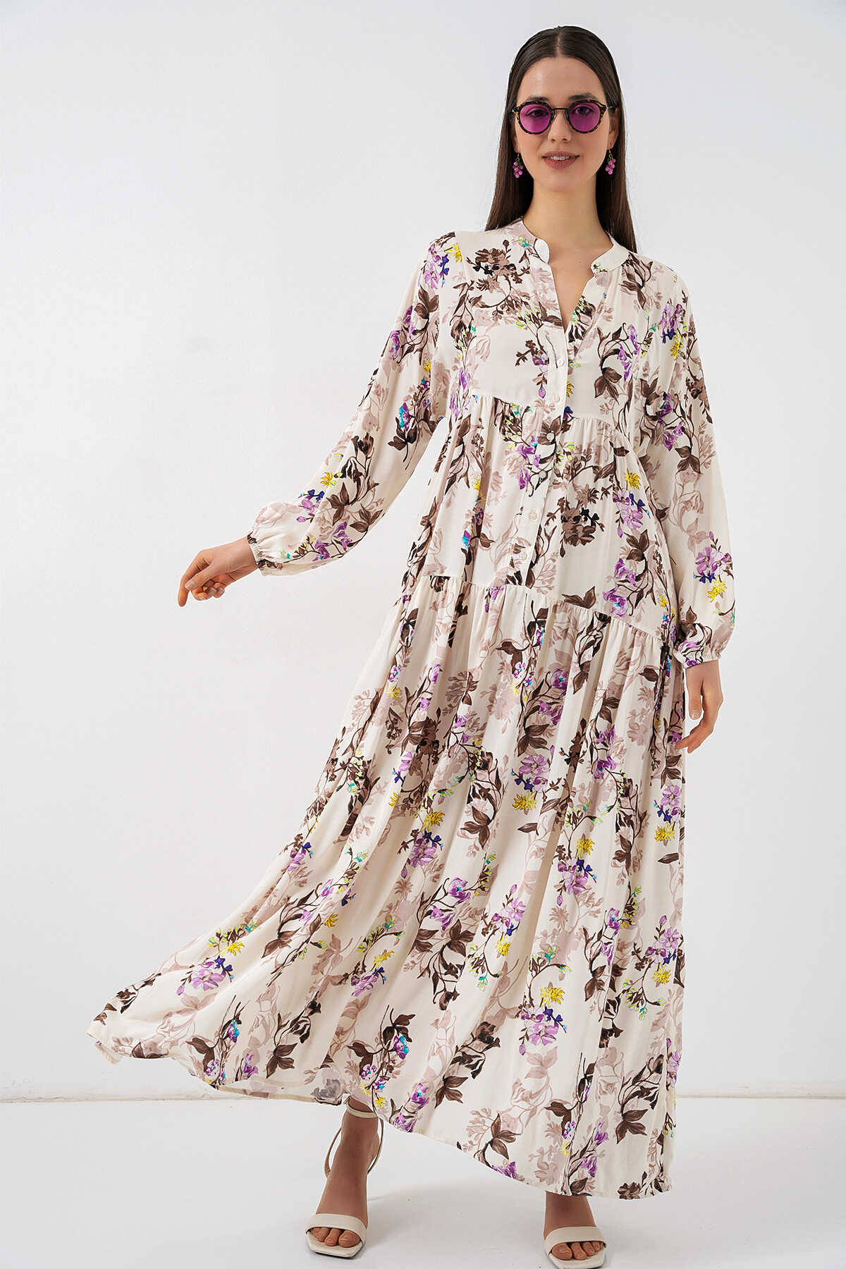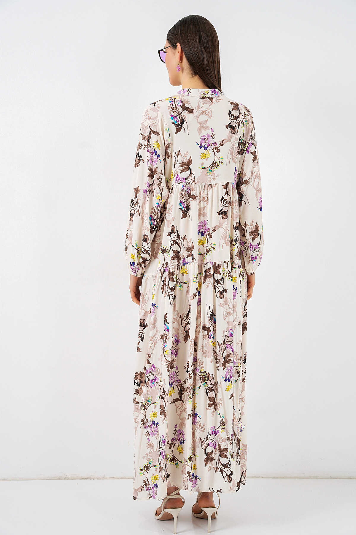 Kadın Desenli Uzun Tesettür Elbise 2585 - I. Kahverengi