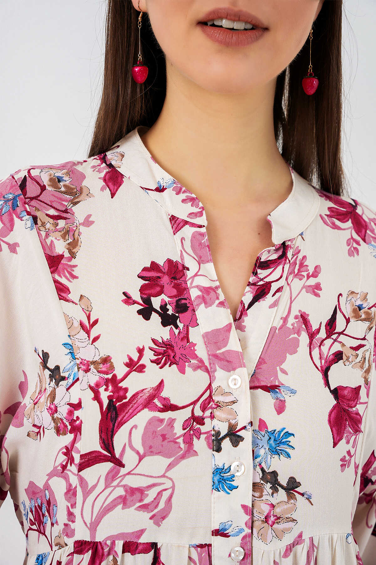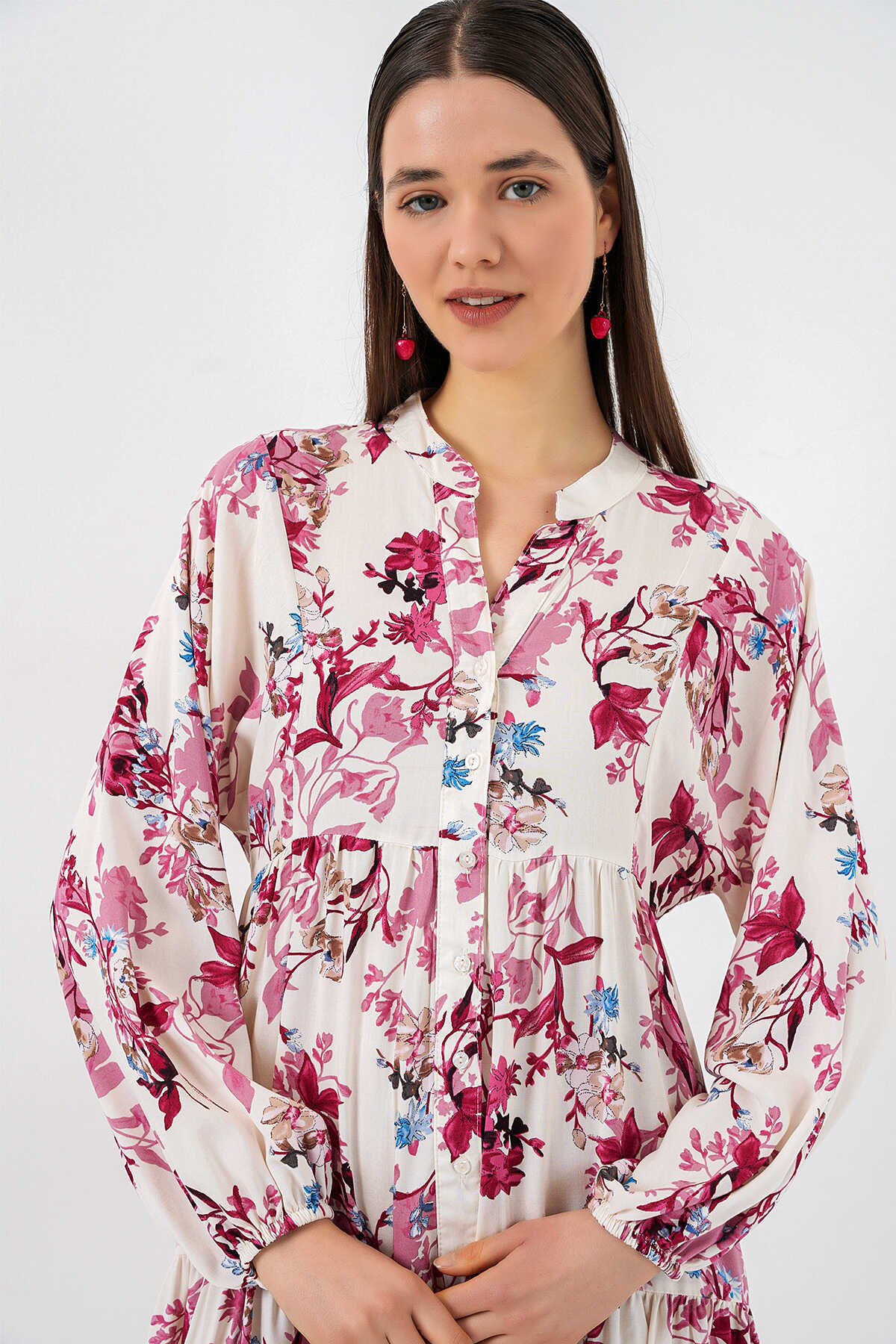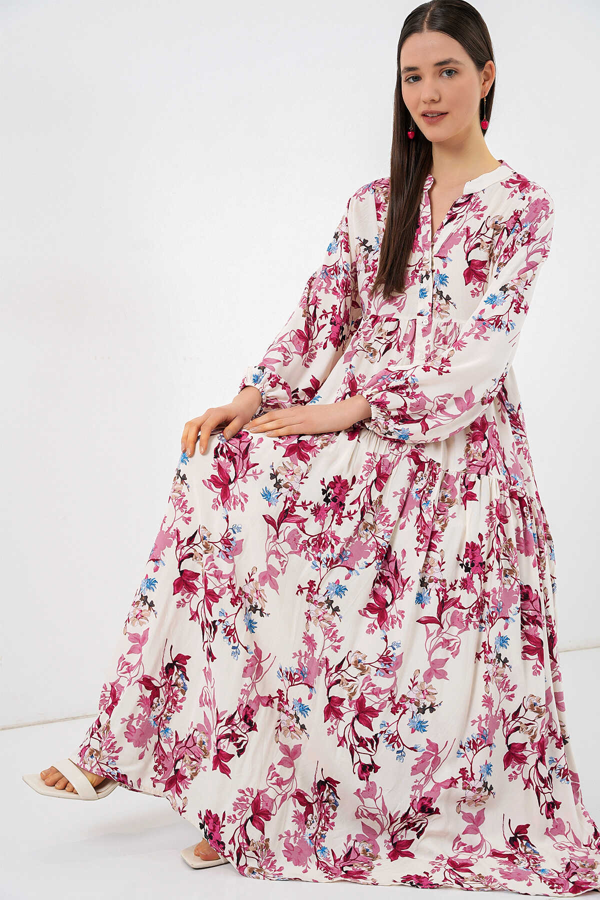 Kadın Desenli Uzun Tesettür Elbise 2585 - M. Kırmızı