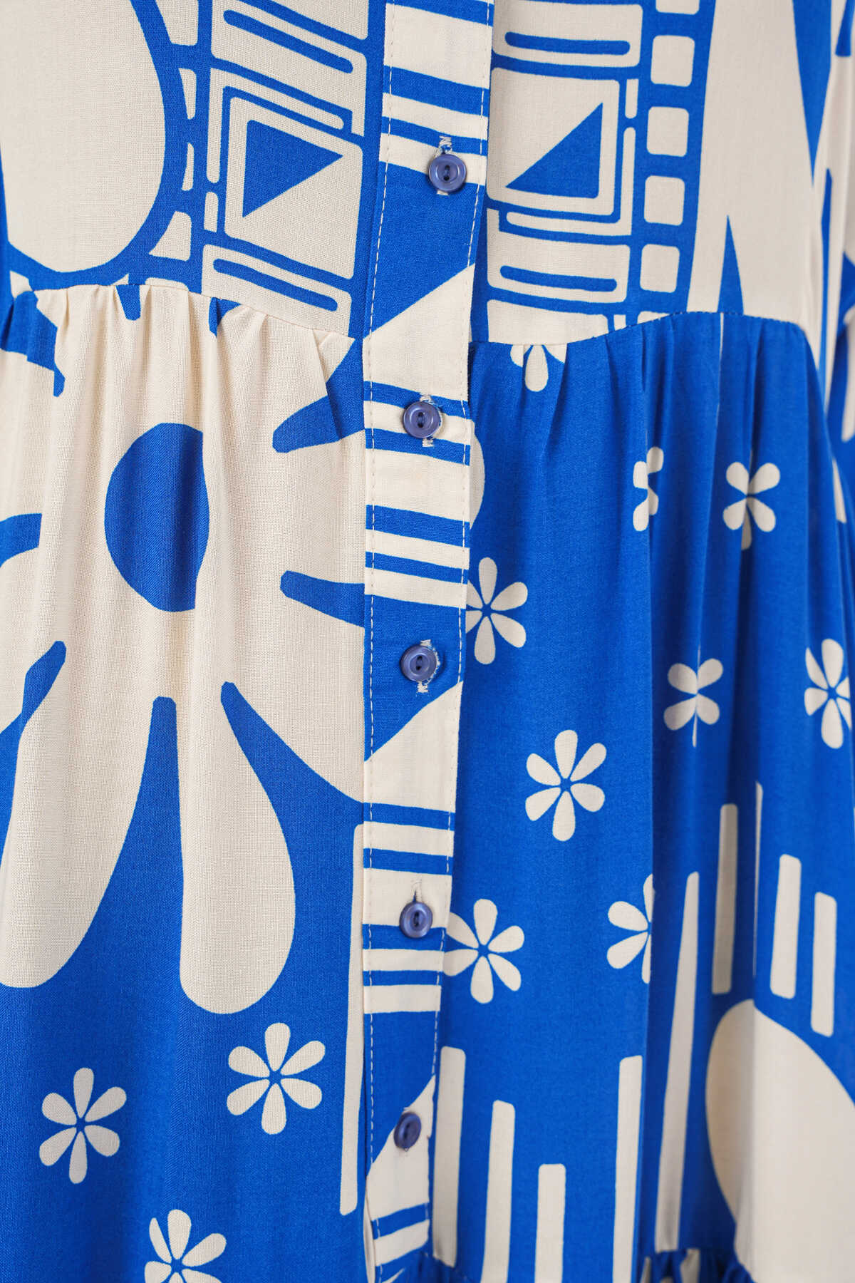 Kadın Desenli Uzun Tesettür Elbise 2585 - Mavi - Kombin