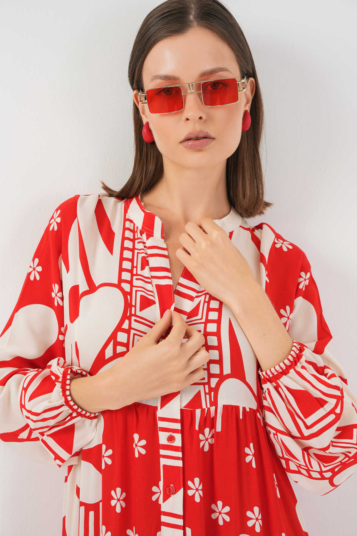 Kadın Desenli Uzun Tesettür Elbise 2585 - N. Kırmızı - Kombin