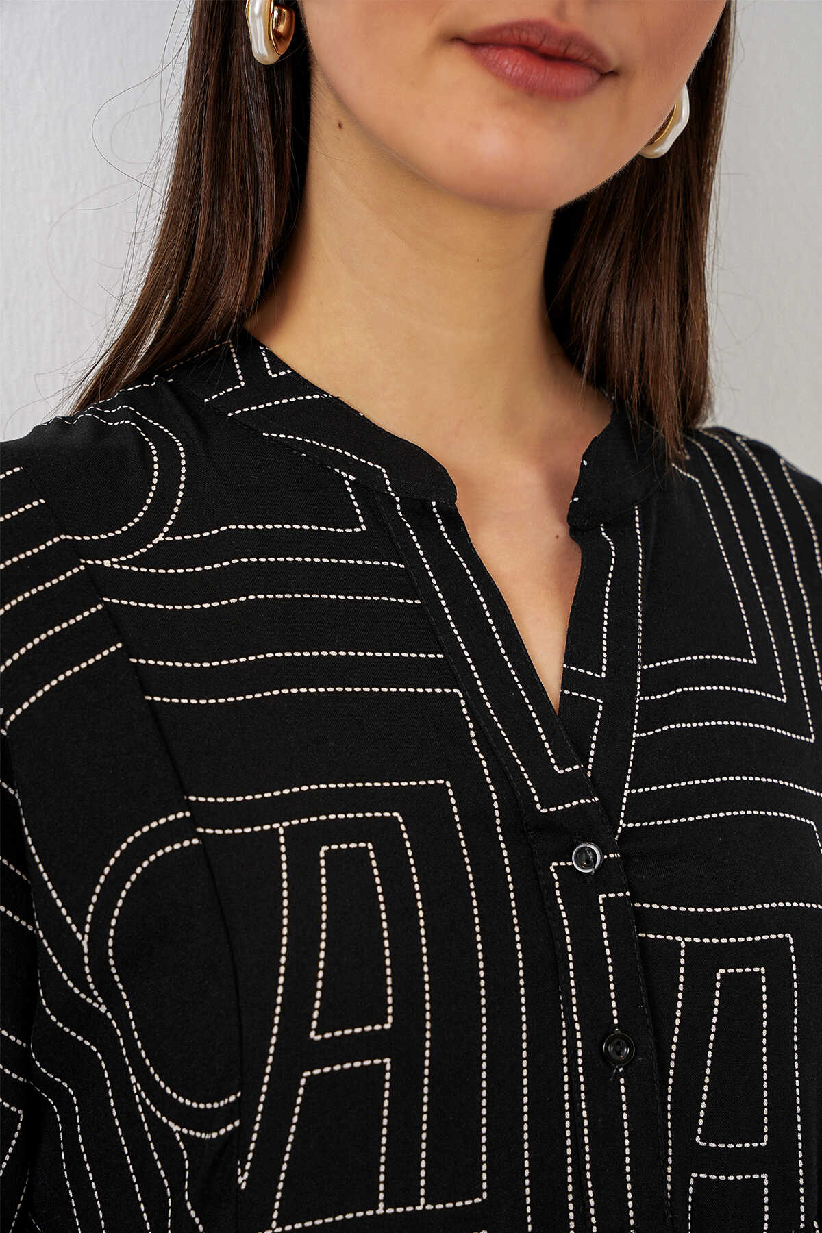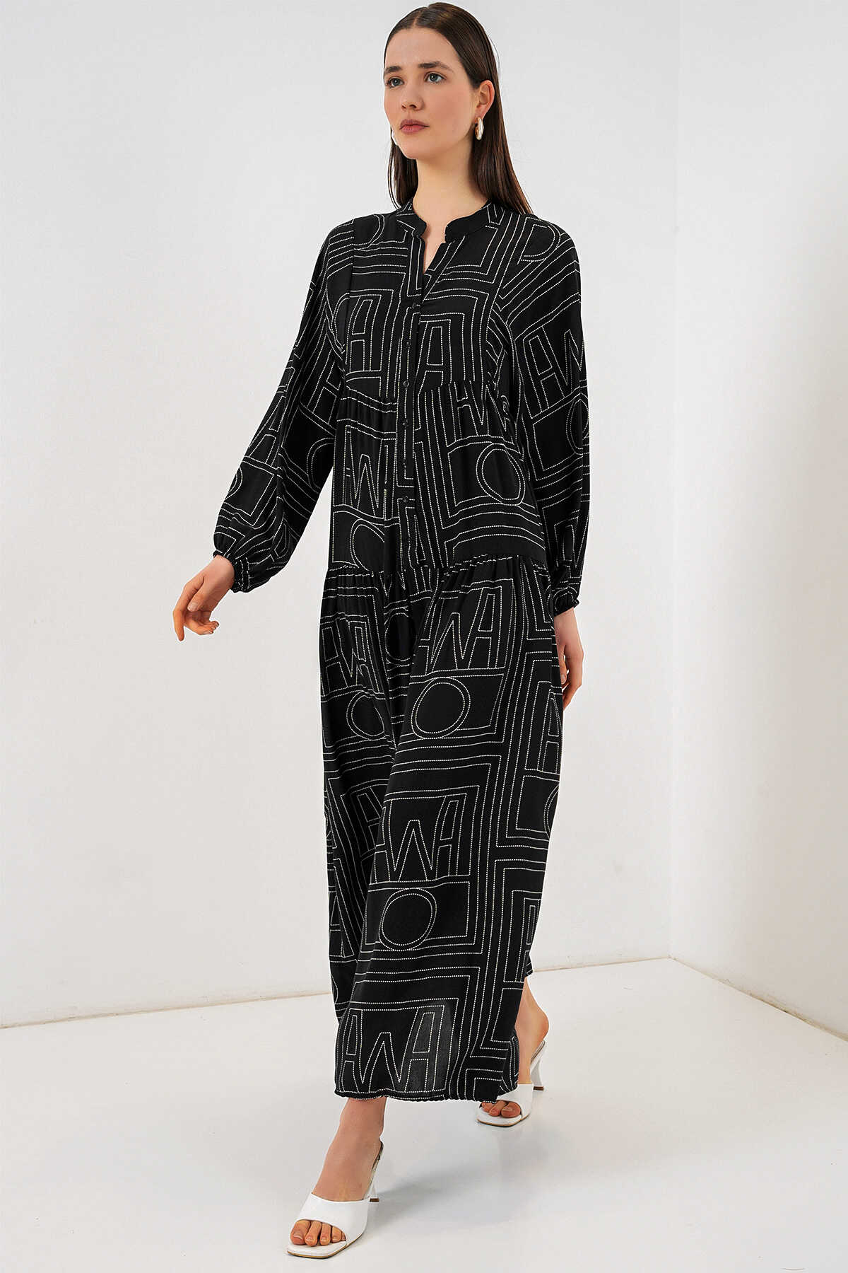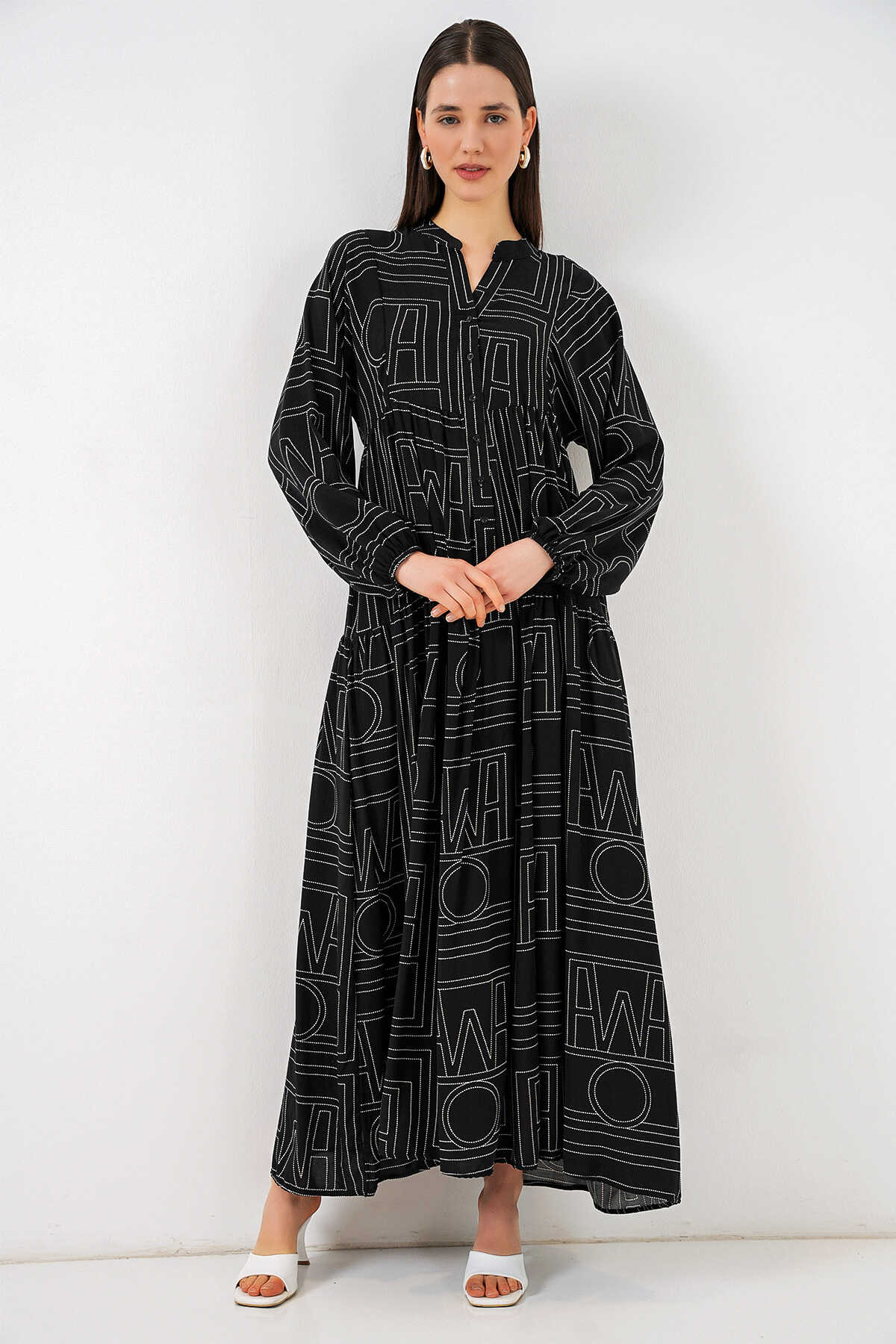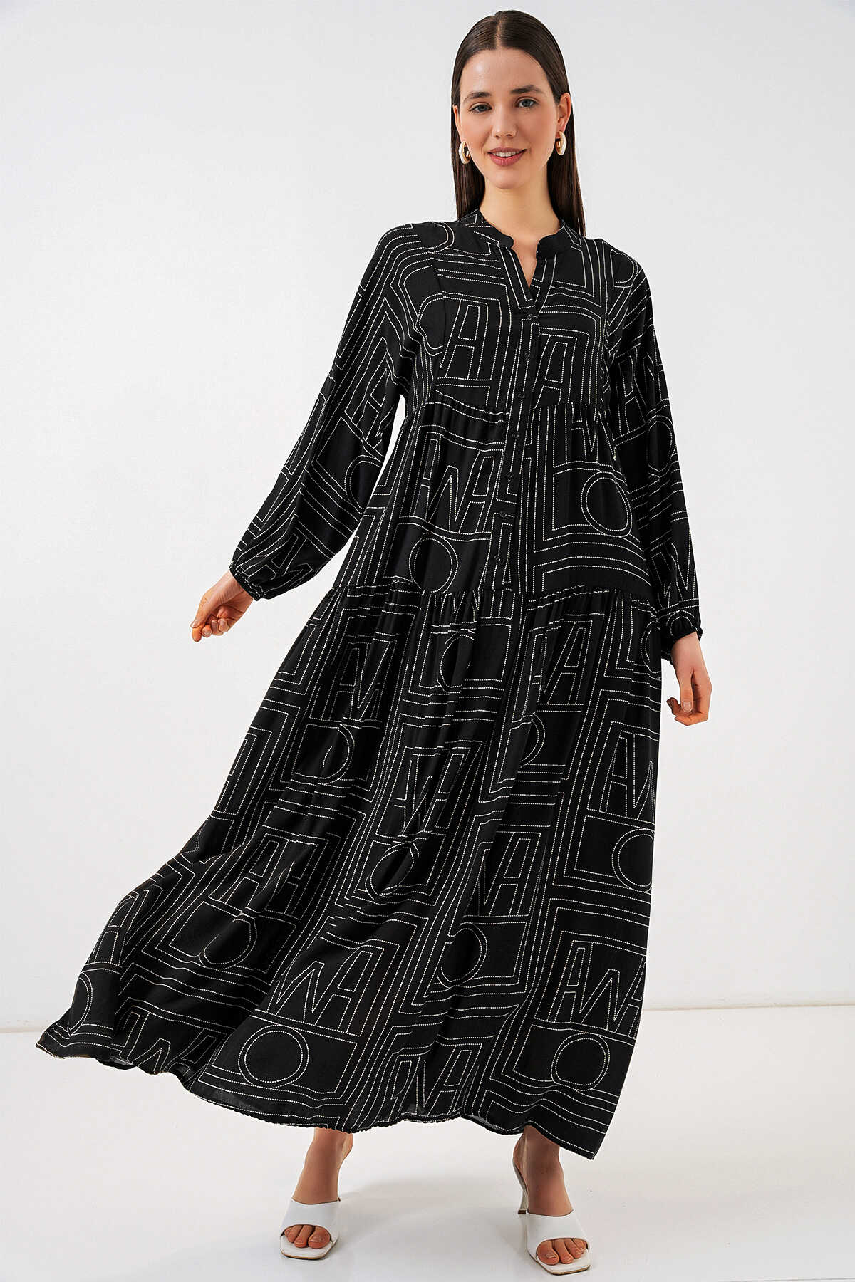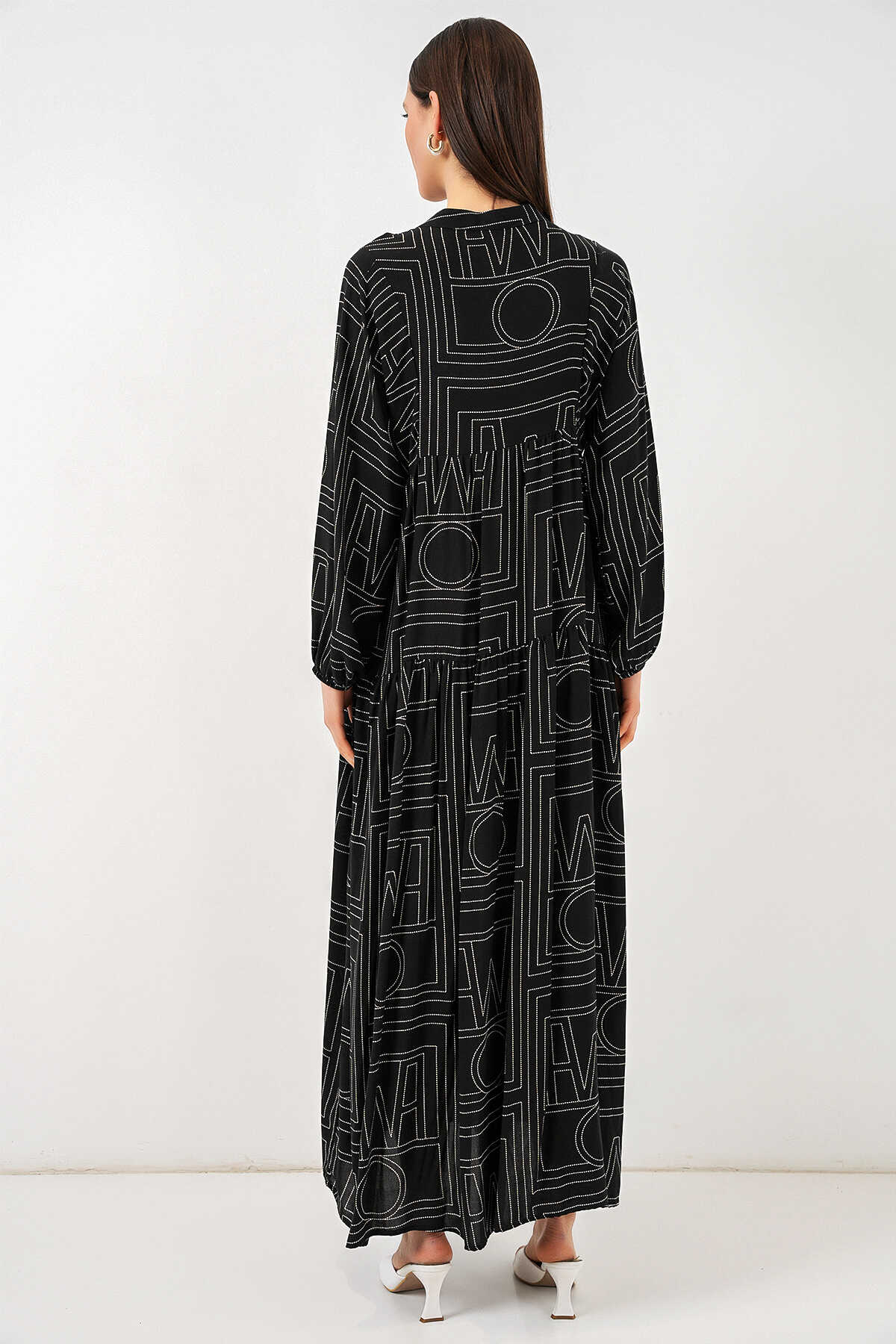 Kadın Desenli Uzun Tesettür Elbise 2585 - Siyah10 - Kombin