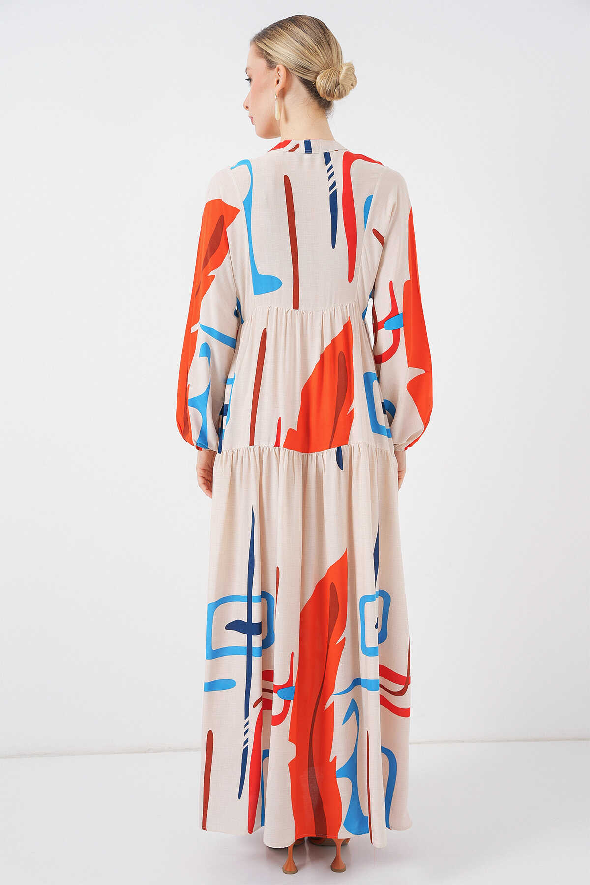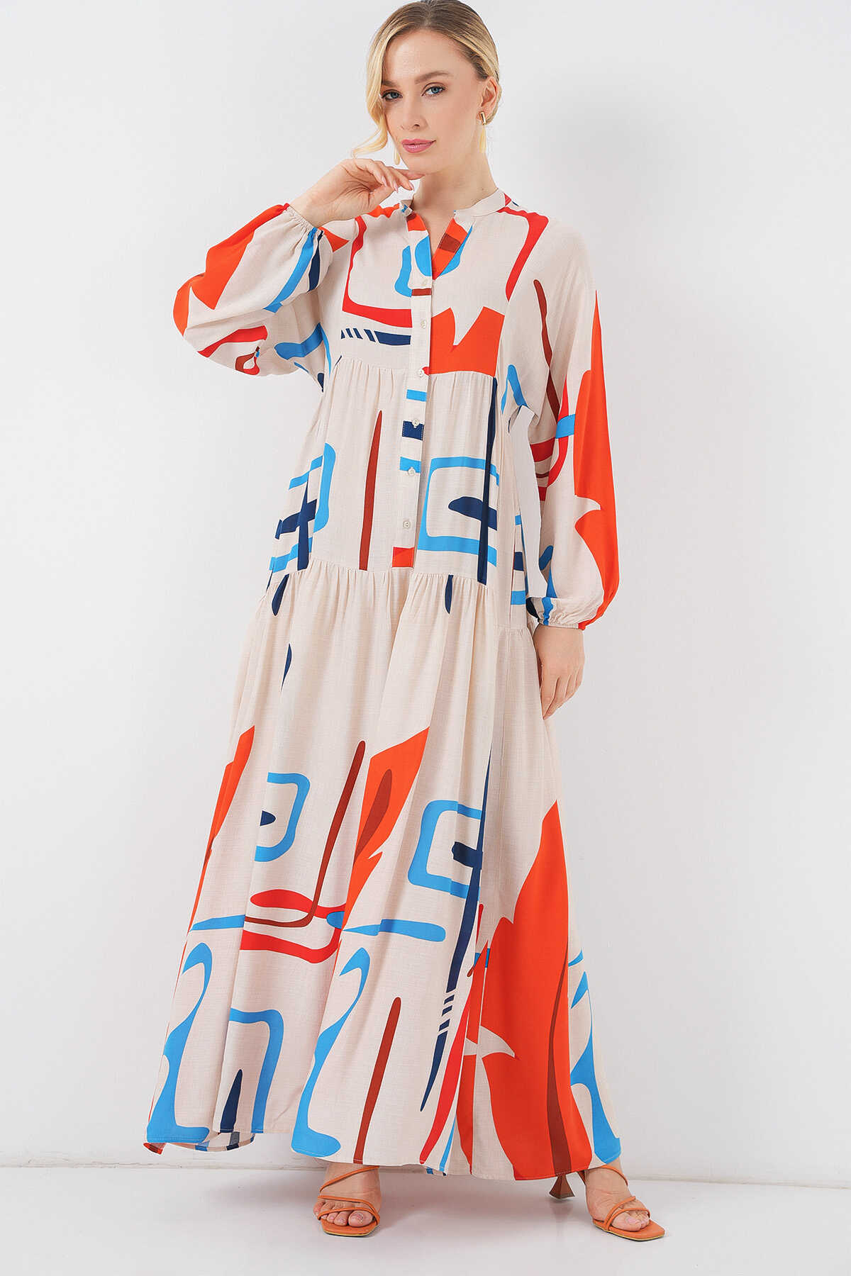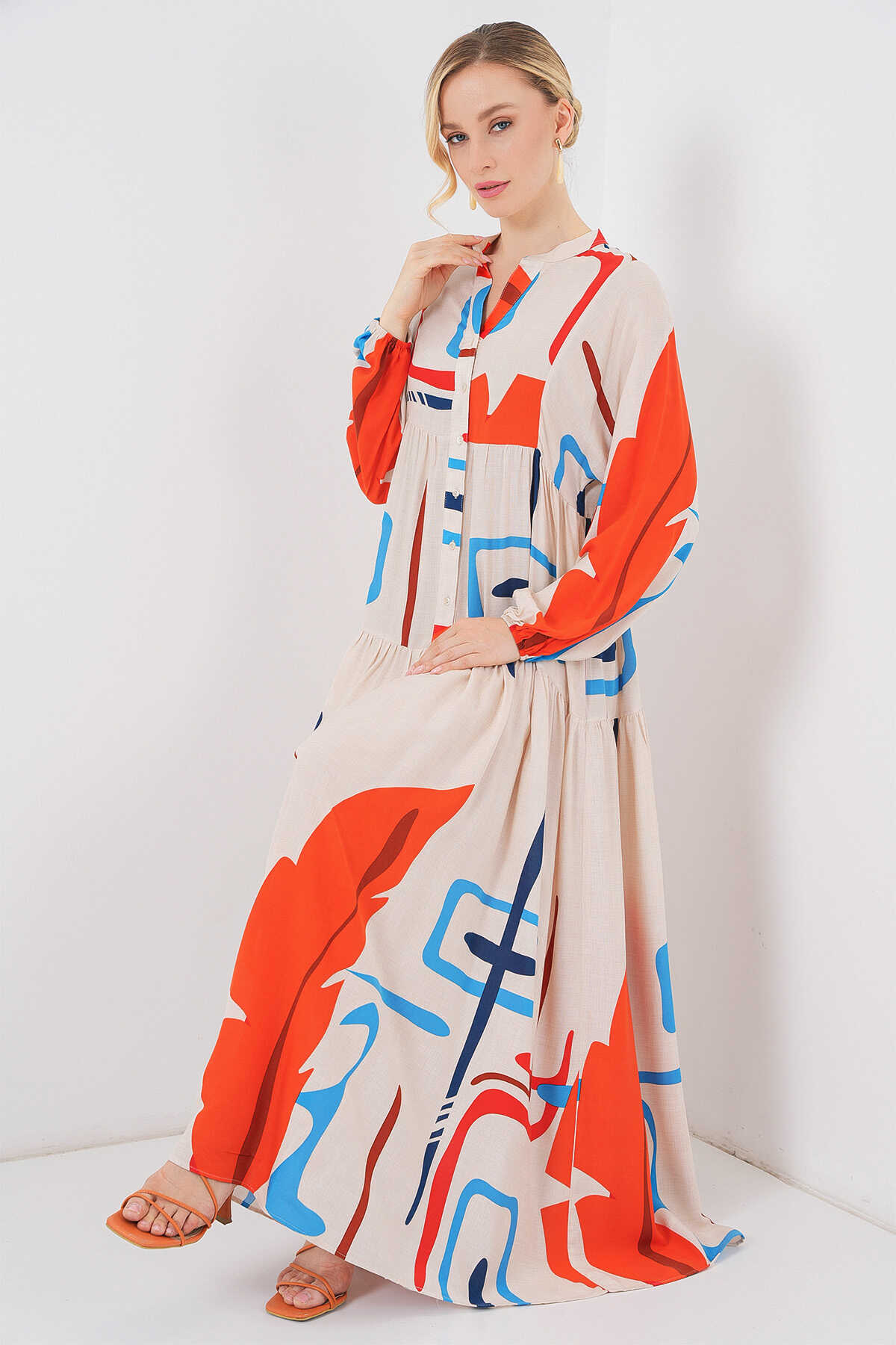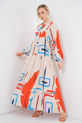Kadın Desenli Uzun Tesettür Elbise 2585 - Turuncu - Kombin