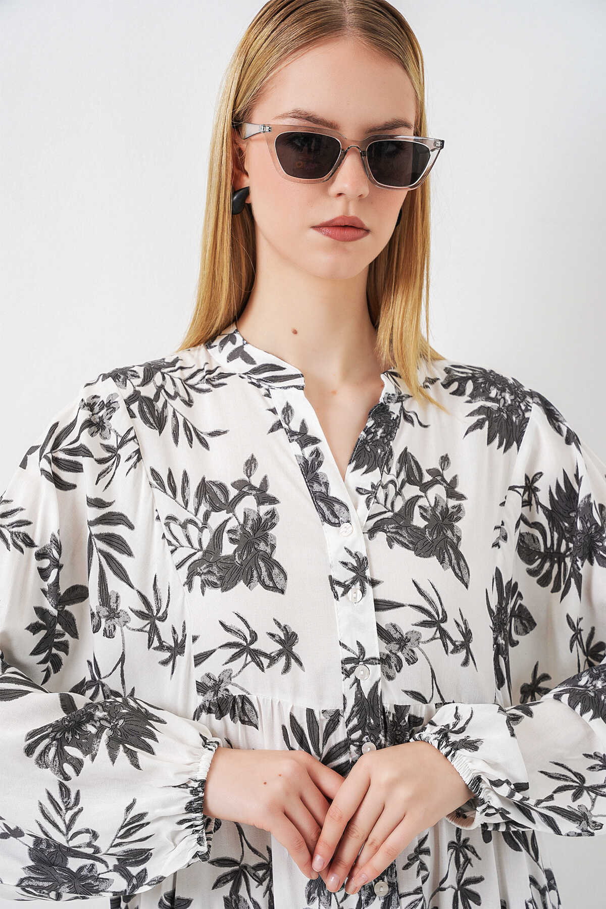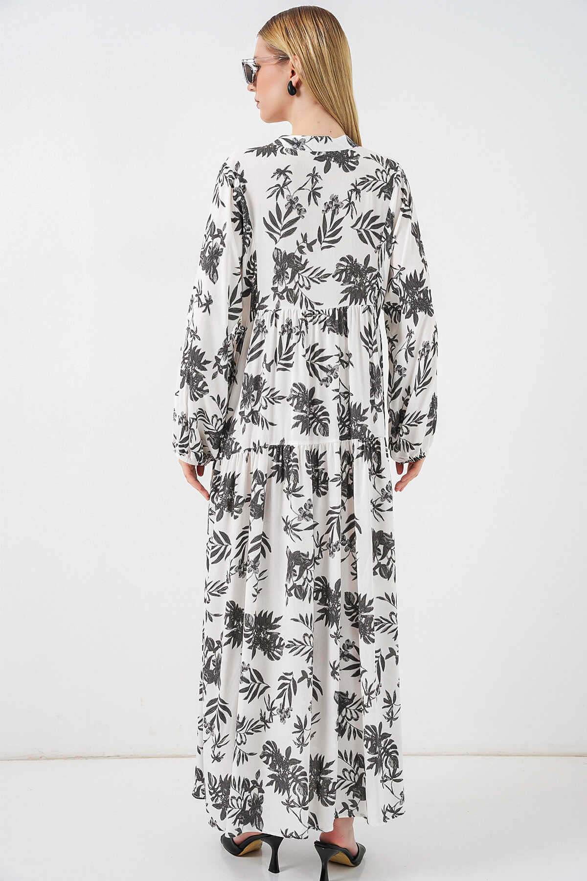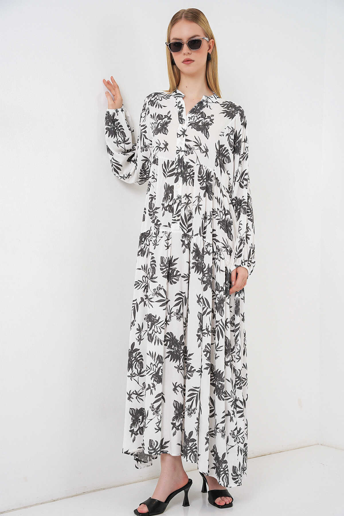 Kadın Desenli Uzun Tesettür Elbise 2585 - V. Antrasit
