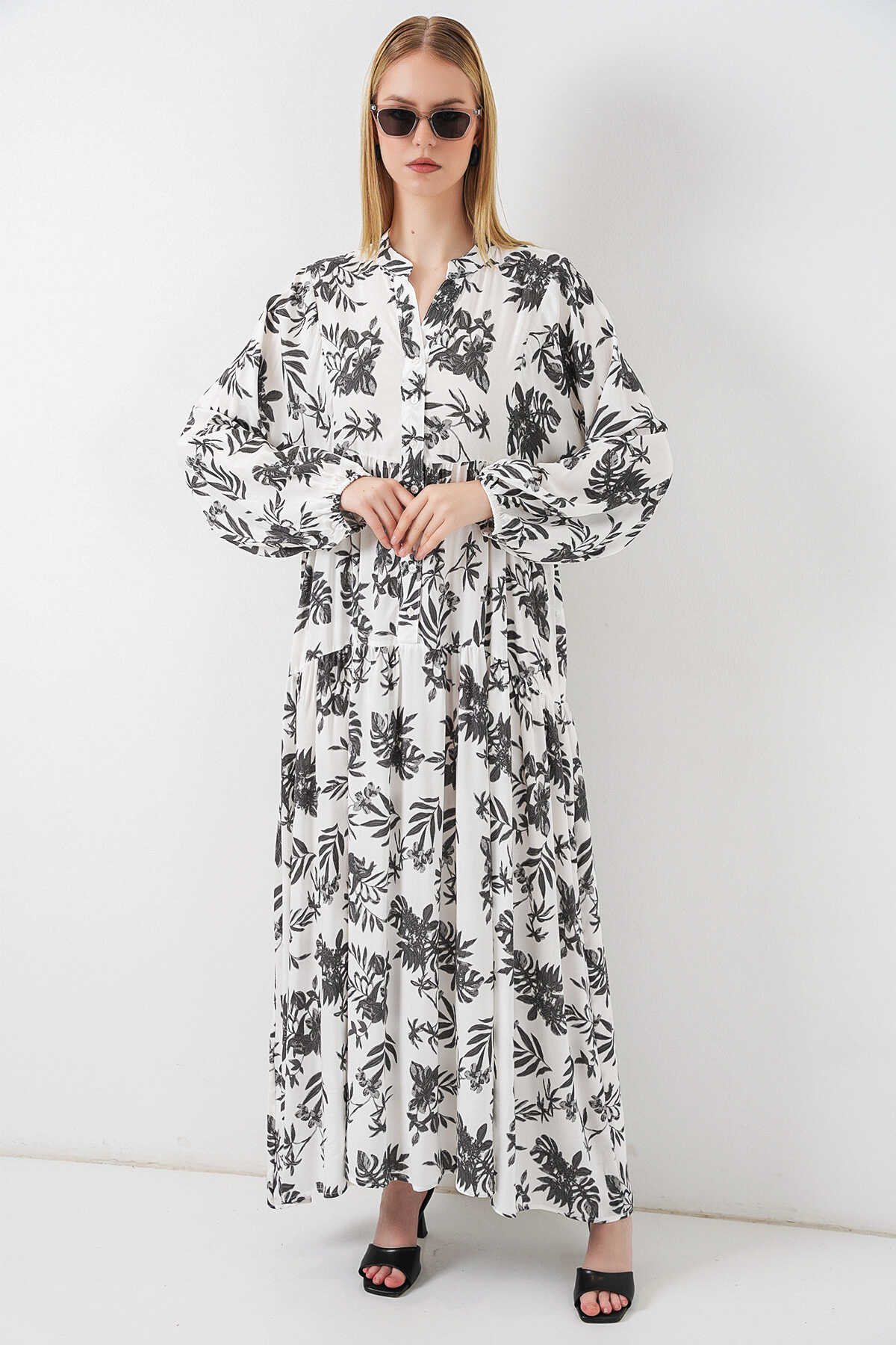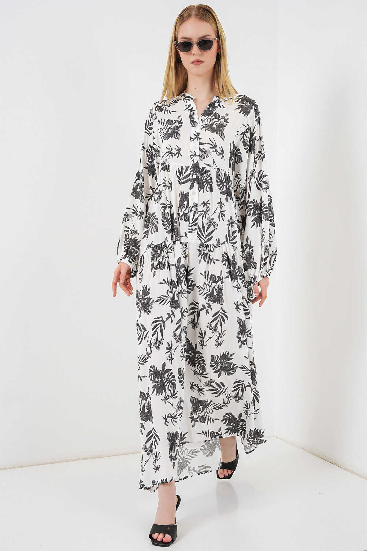 Kadın Desenli Uzun Tesettür Elbise 2585 - V. Antrasit - Kombin