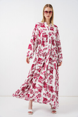 Kadın Desenli Uzun Tesettür Elbise 2585 - V. Kırmızı