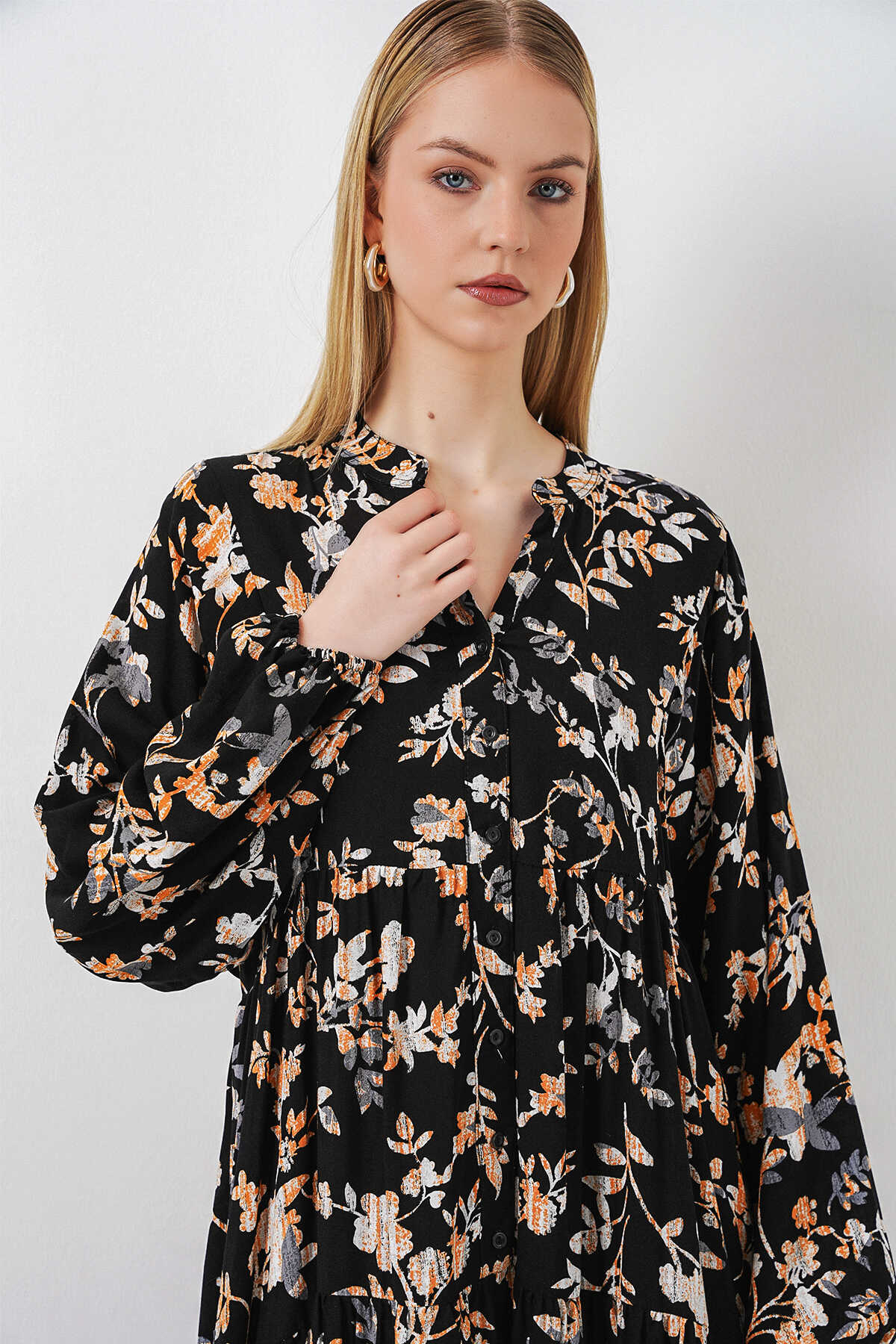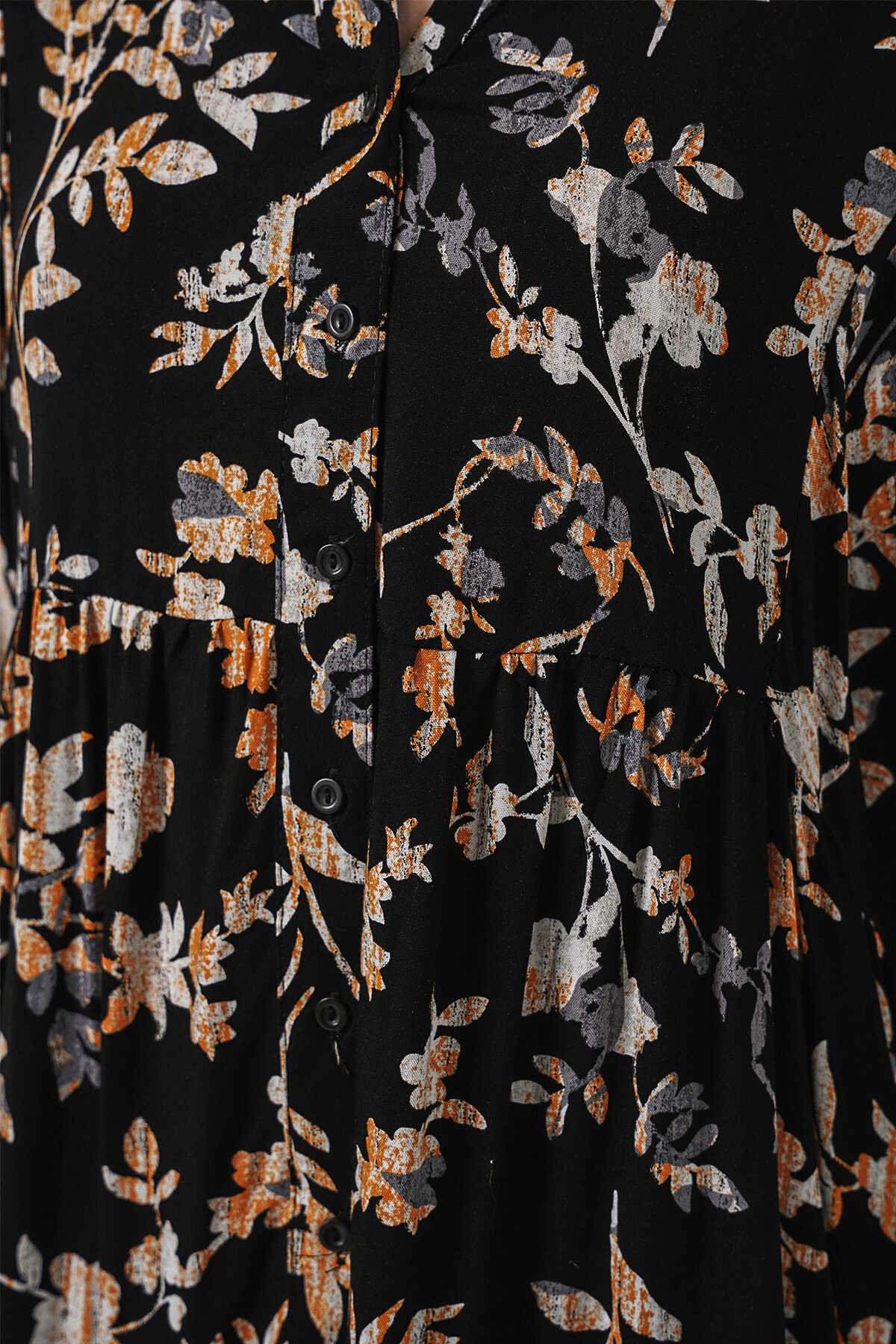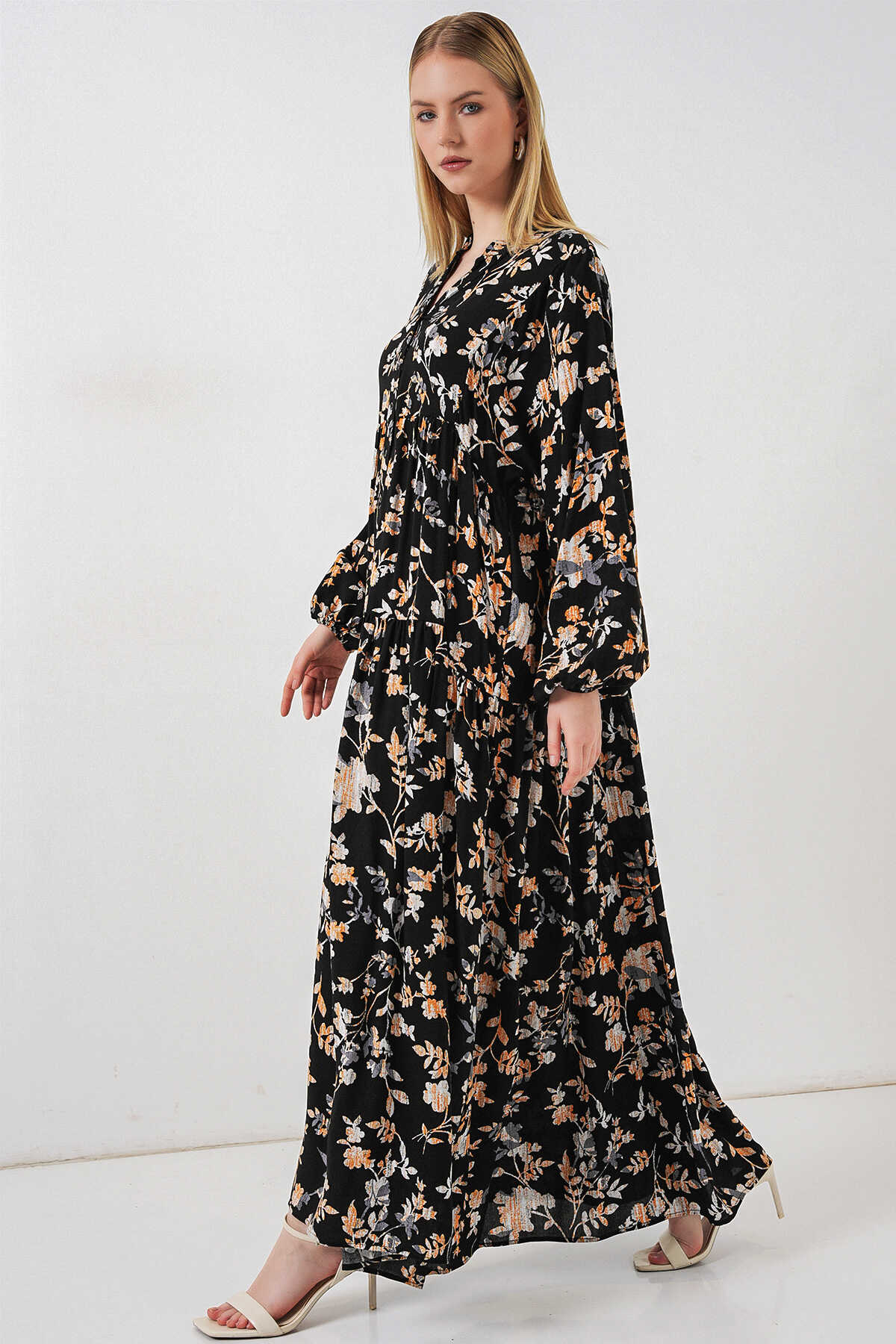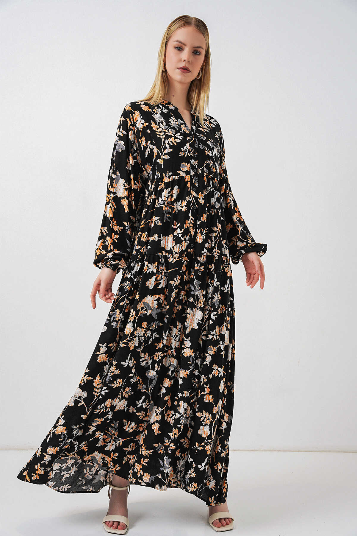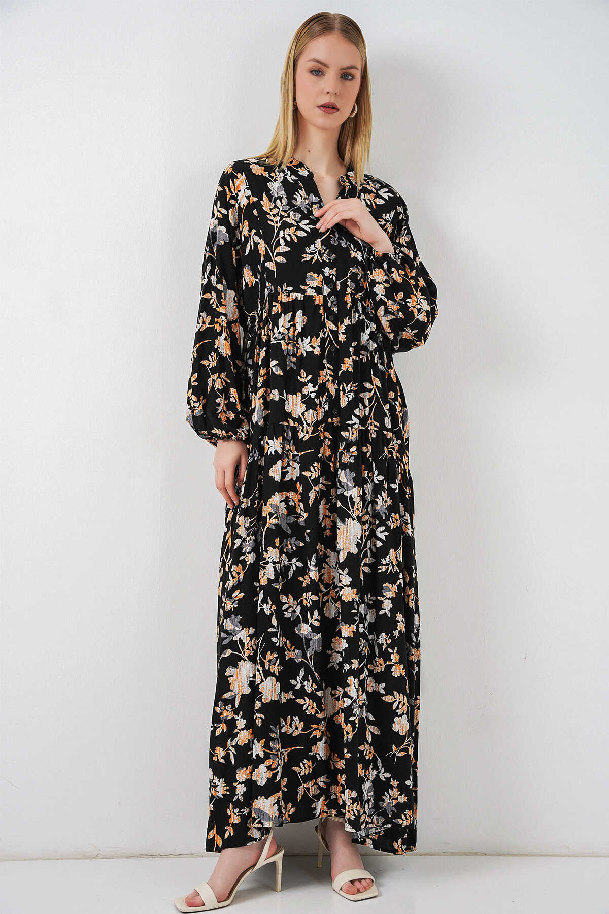 Kadın Desenli Uzun Tesettür Elbise 2585 - V. Siyah - Kombin