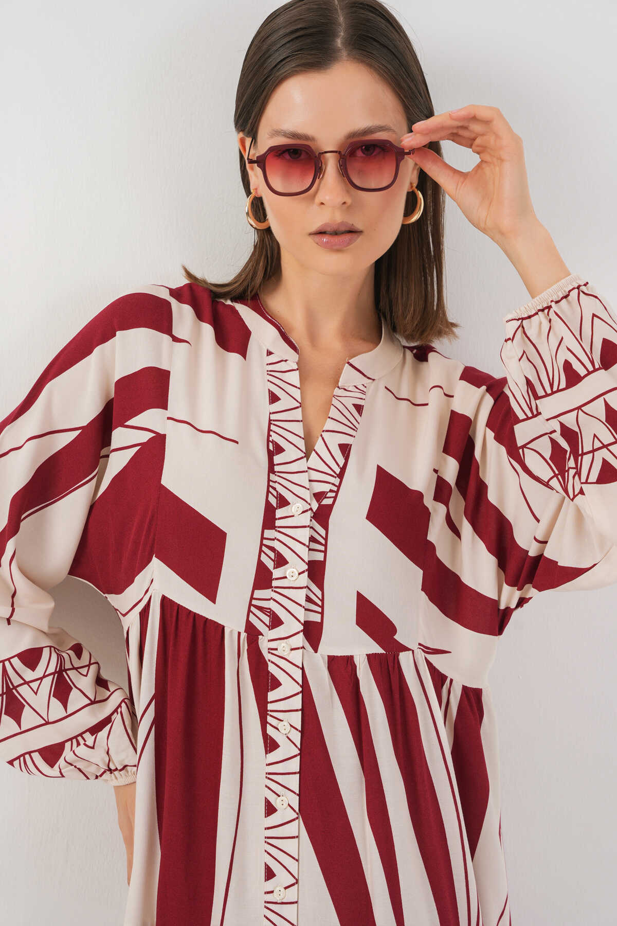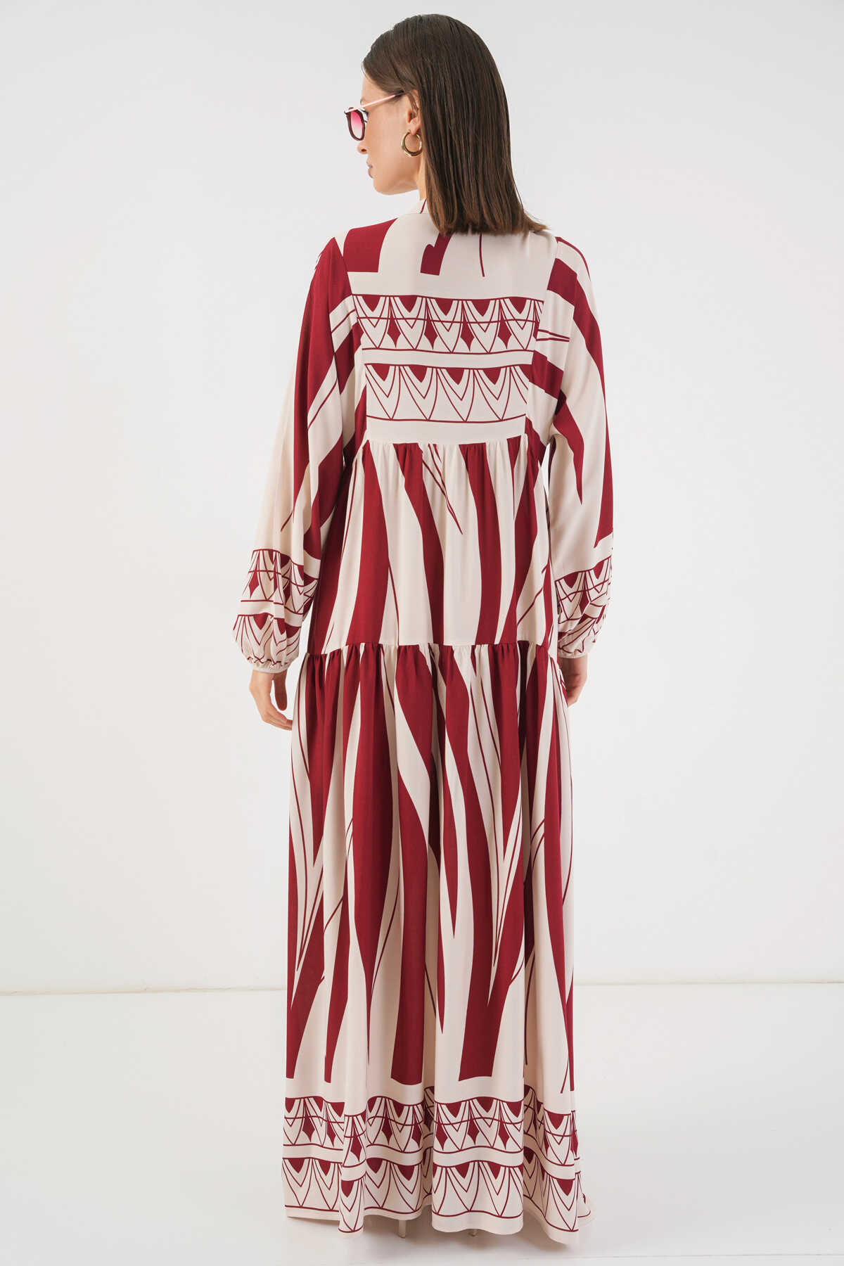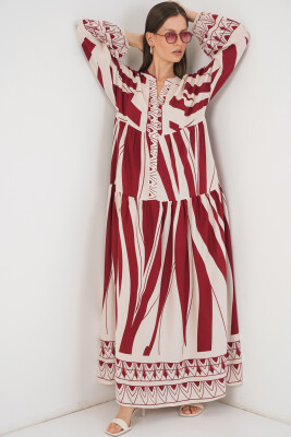 Kadın Desenli Uzun Tesettür Elbise 2585 - Y.Bordo - Kombin