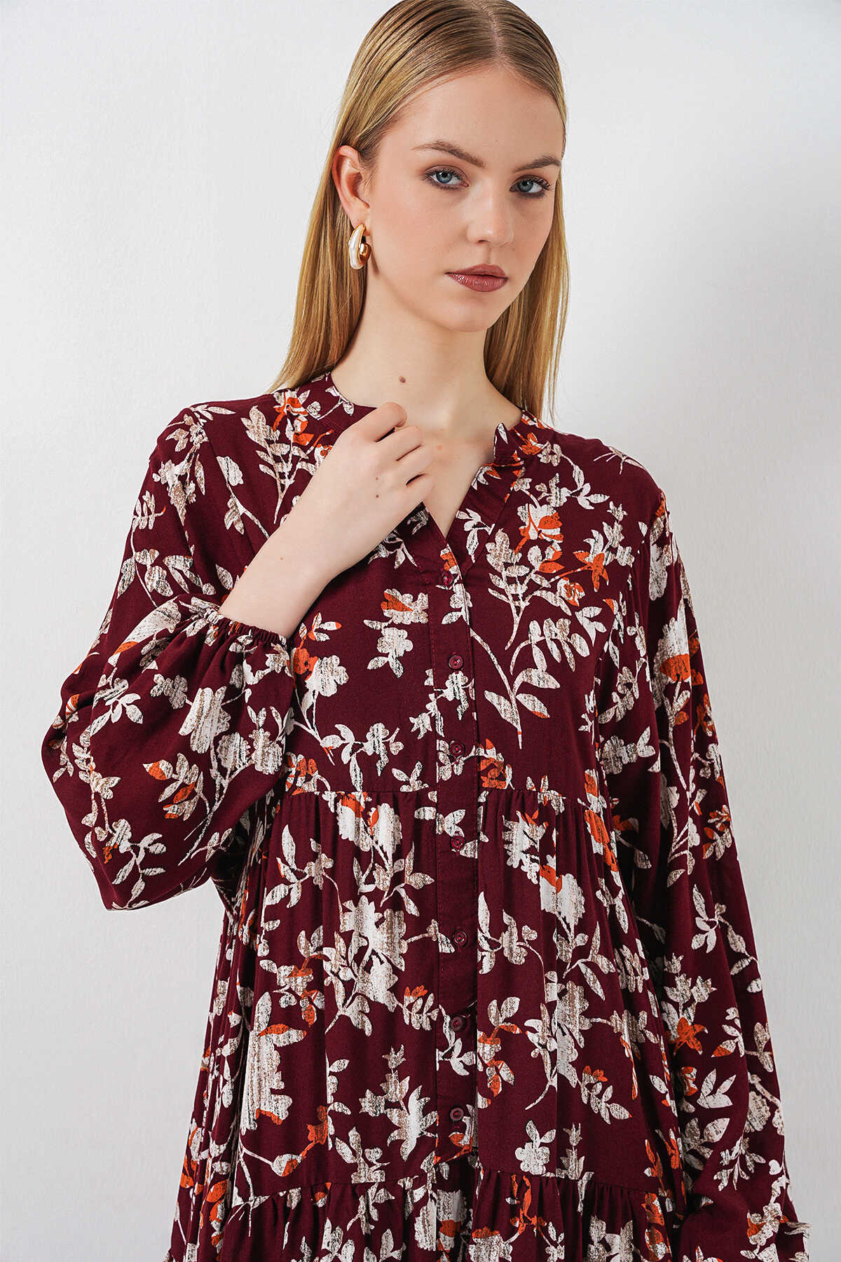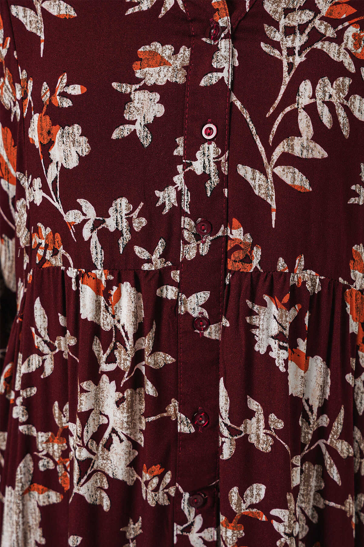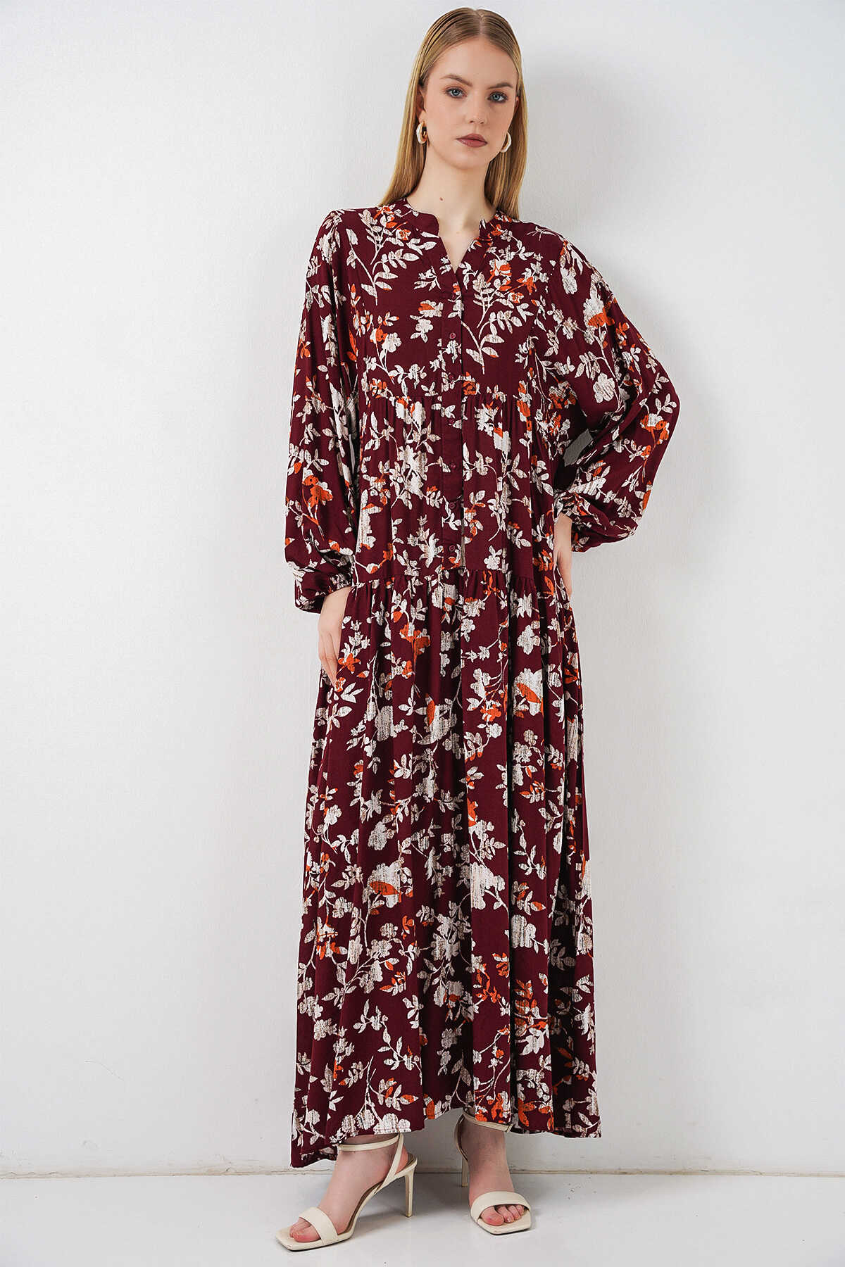 Kadın Desenli Uzun Tesettür Elbise 2585 - Z.Bordo - Kombin
