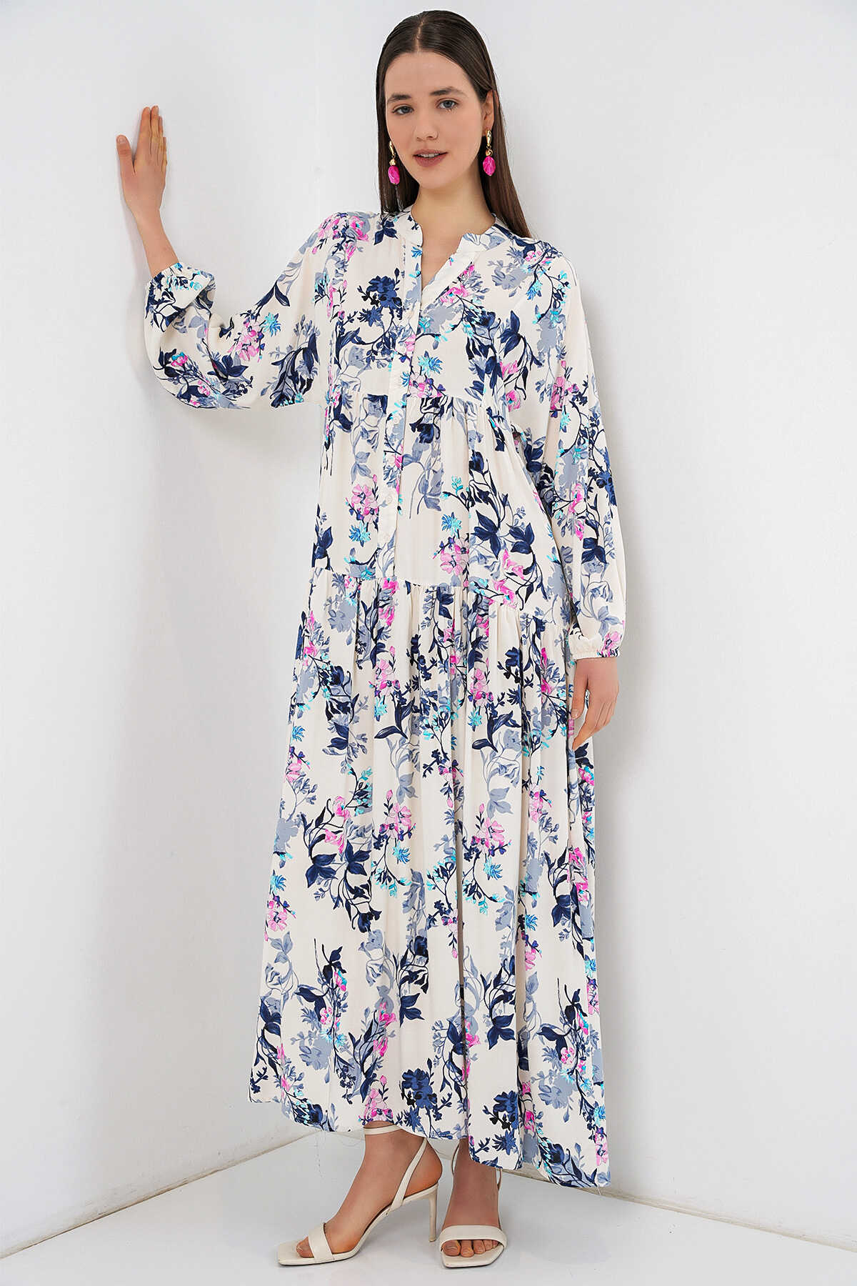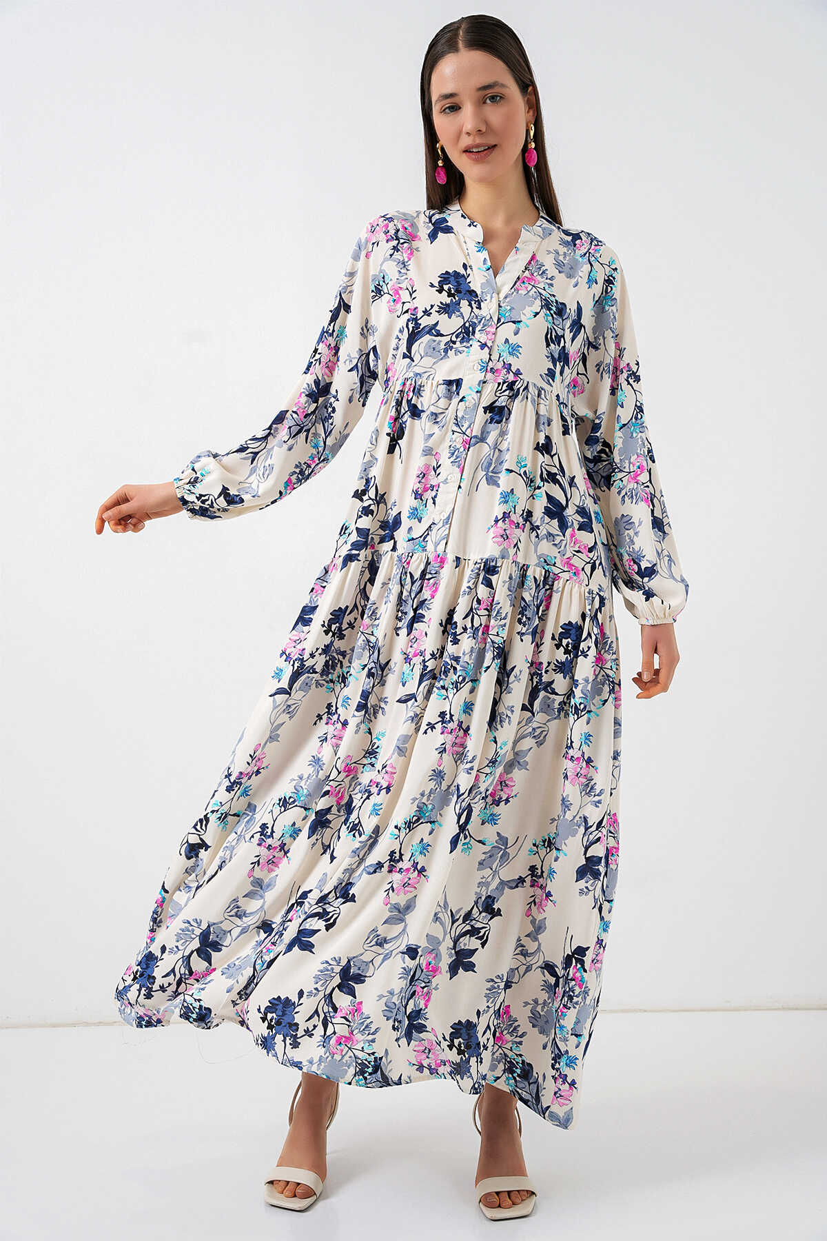 Kadın Desenli Uzun Tesettür Elbise 2585 - Z.Lacivert - Kombin