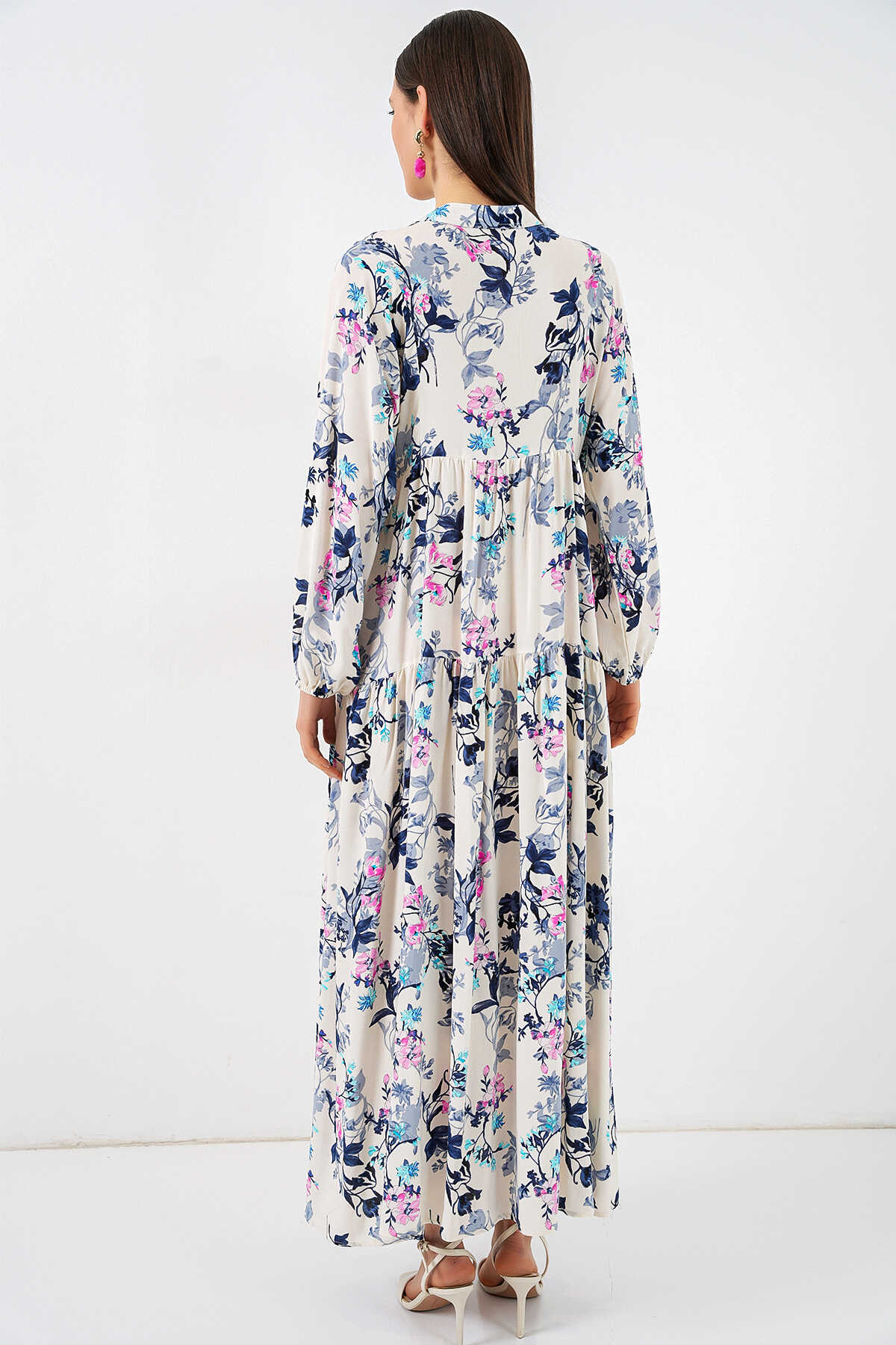 Kadın Desenli Uzun Tesettür Elbise 2585 - Z.Lacivert