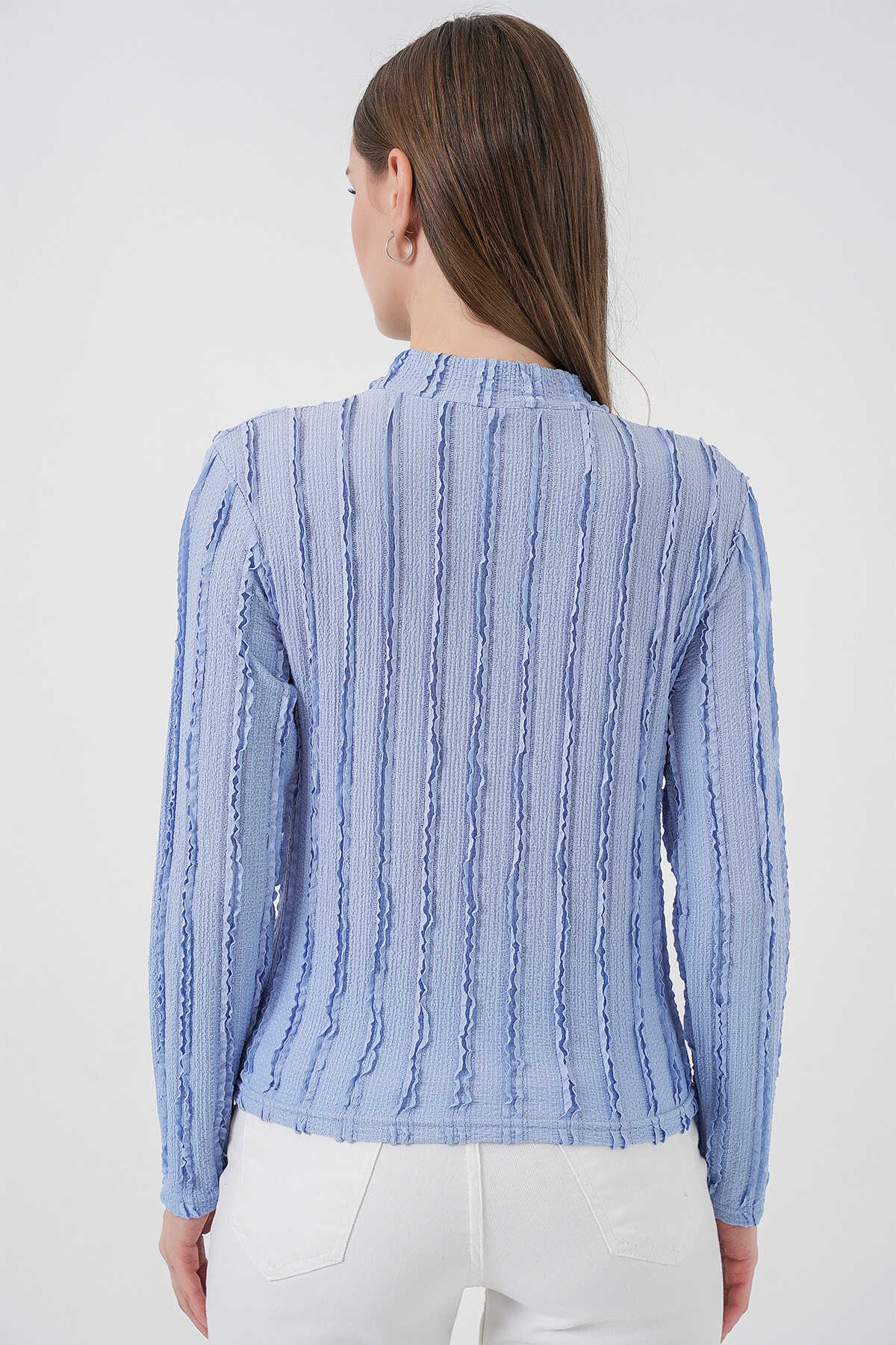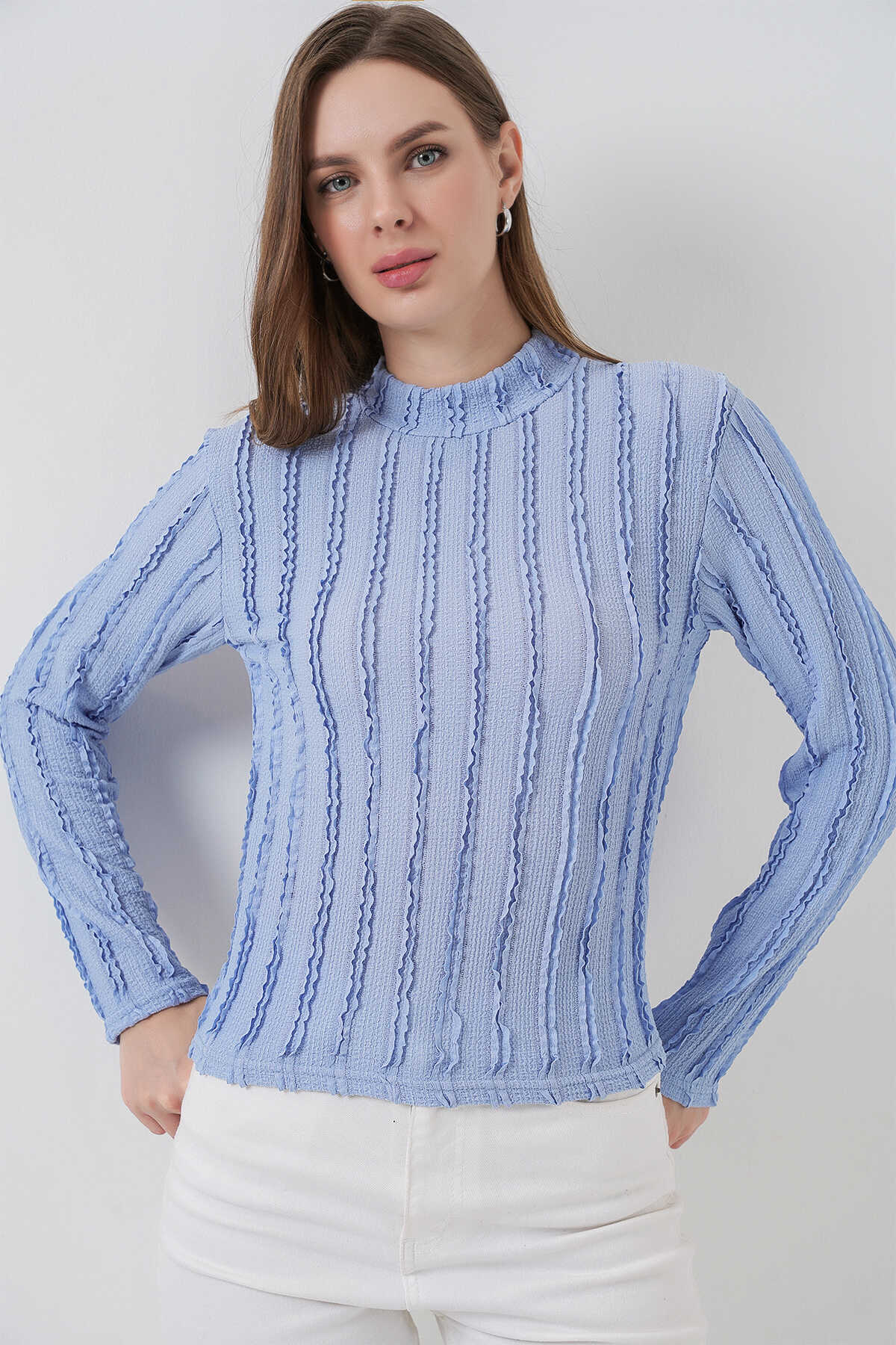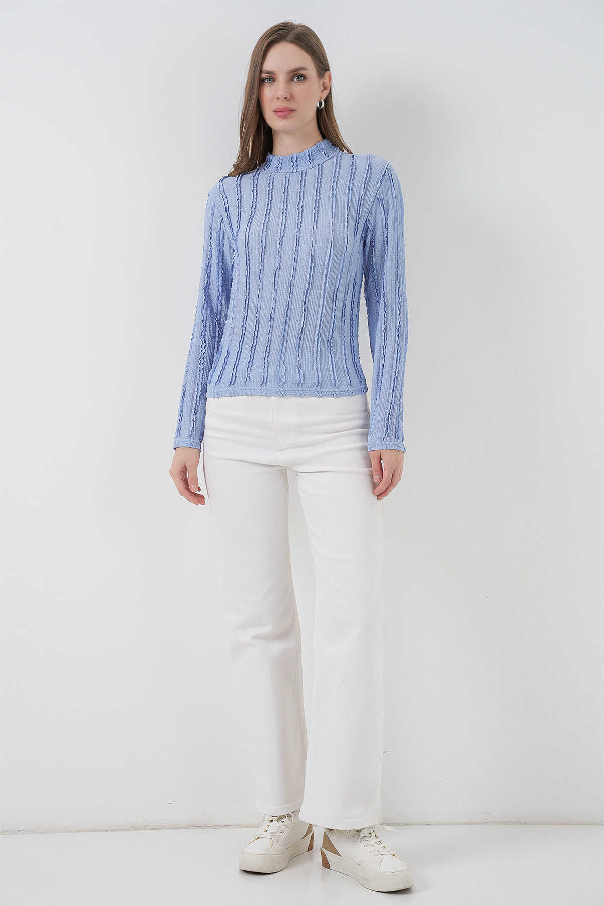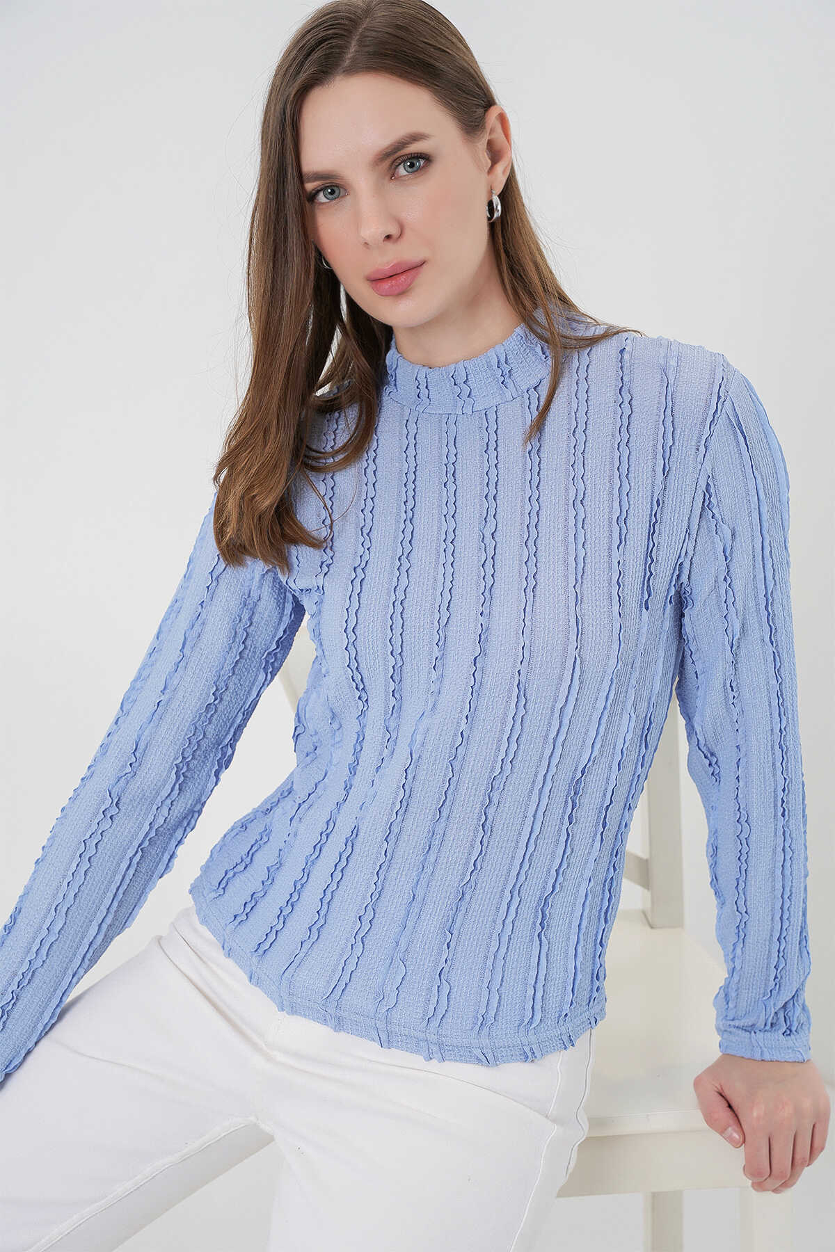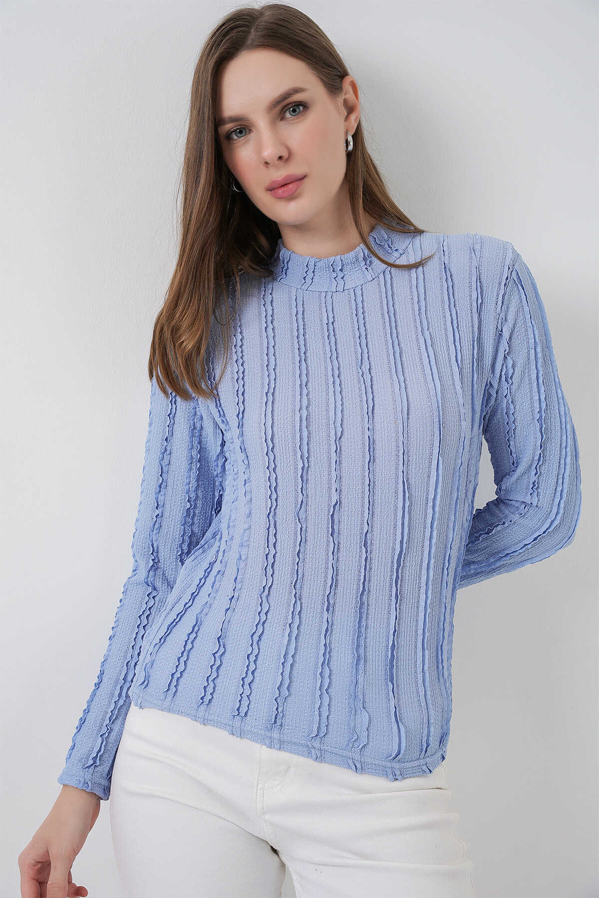 Kadın Dokulu Esnek Örme Bluz 975 - Mavi - Kombin