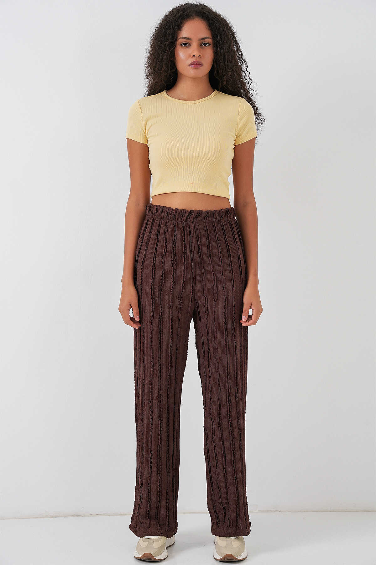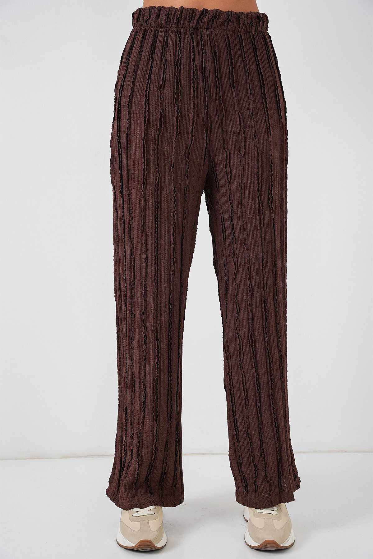 Kadın Dokulu Esnek Örme Pantolon 30057 - Kahverengi - Kombin