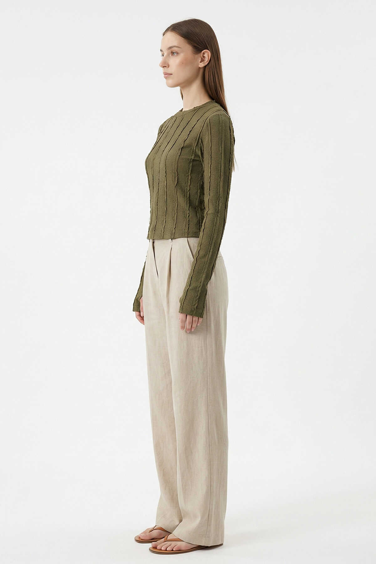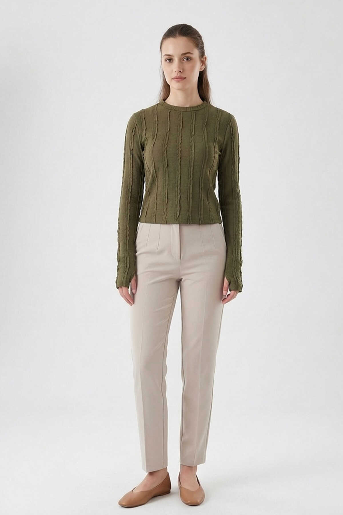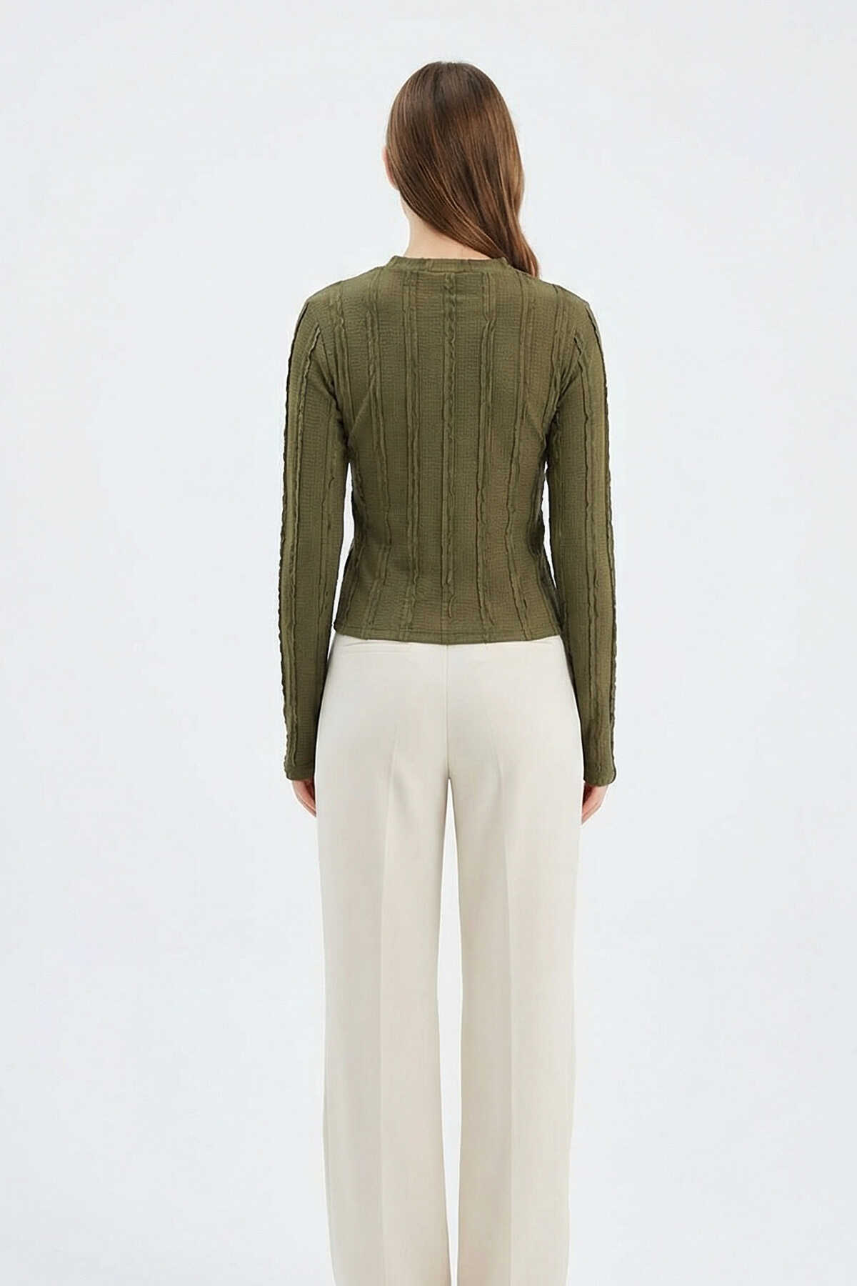 Kadın Dokulu Örme Bluz 980 - Haki - Kombin