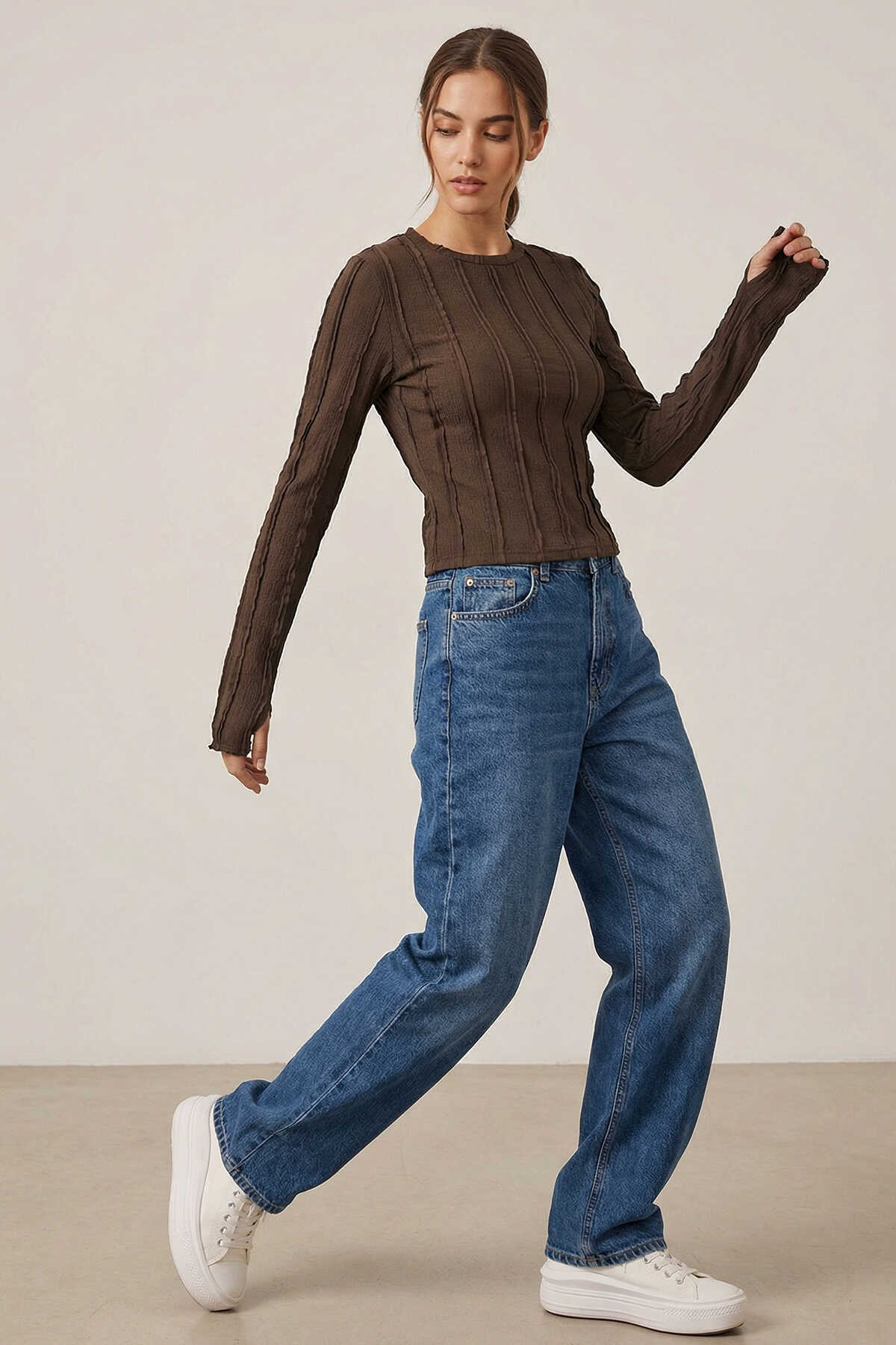 Kadın Dokulu Örme Bluz 980 - Kahverengi - Kombin