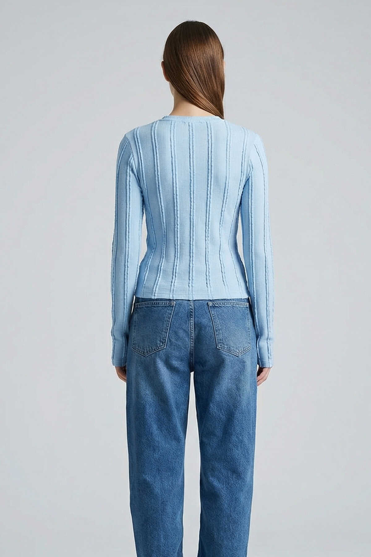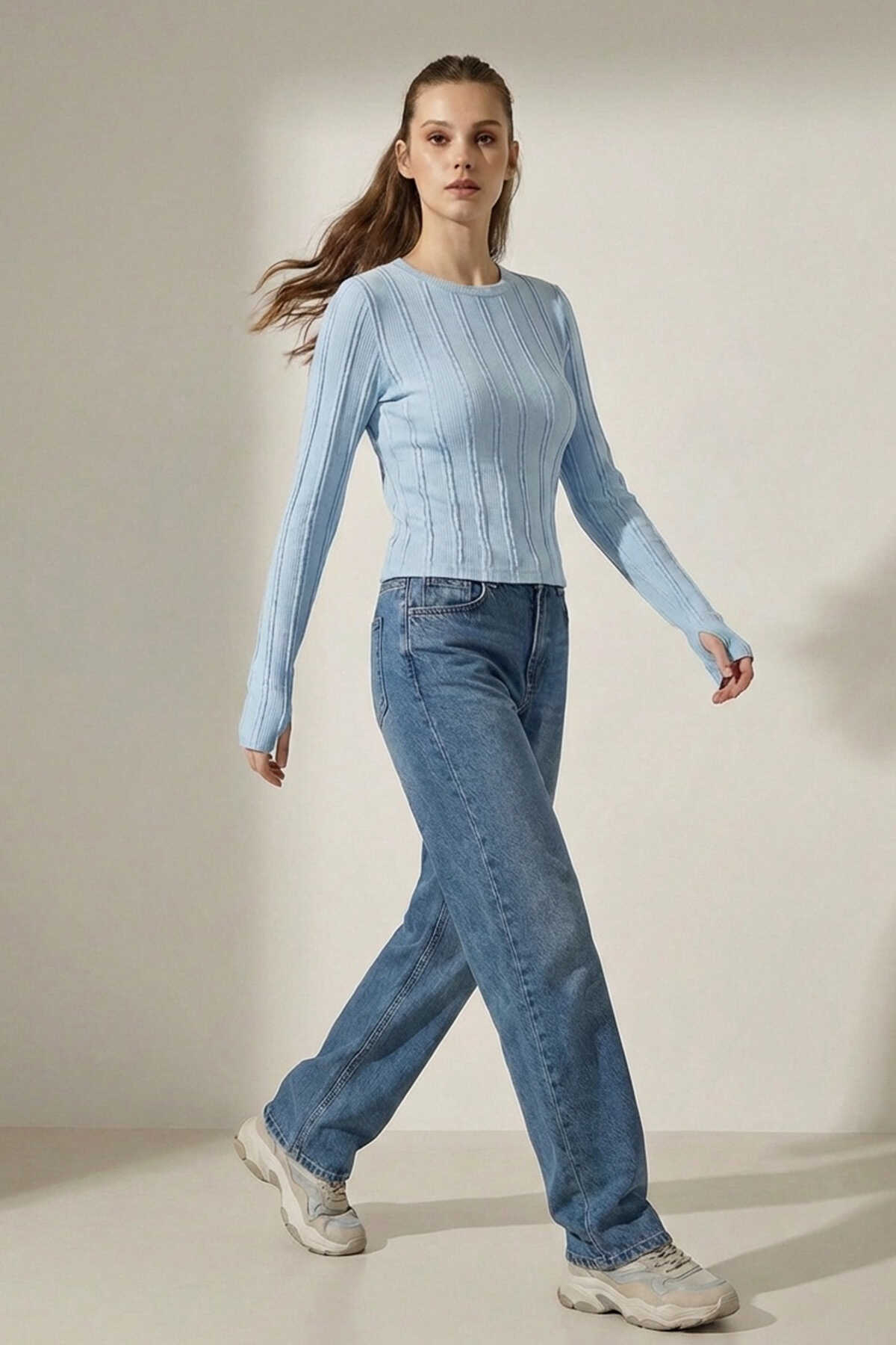 Kadın Dokulu Örme Bluz 980 - Mavi - Kombin