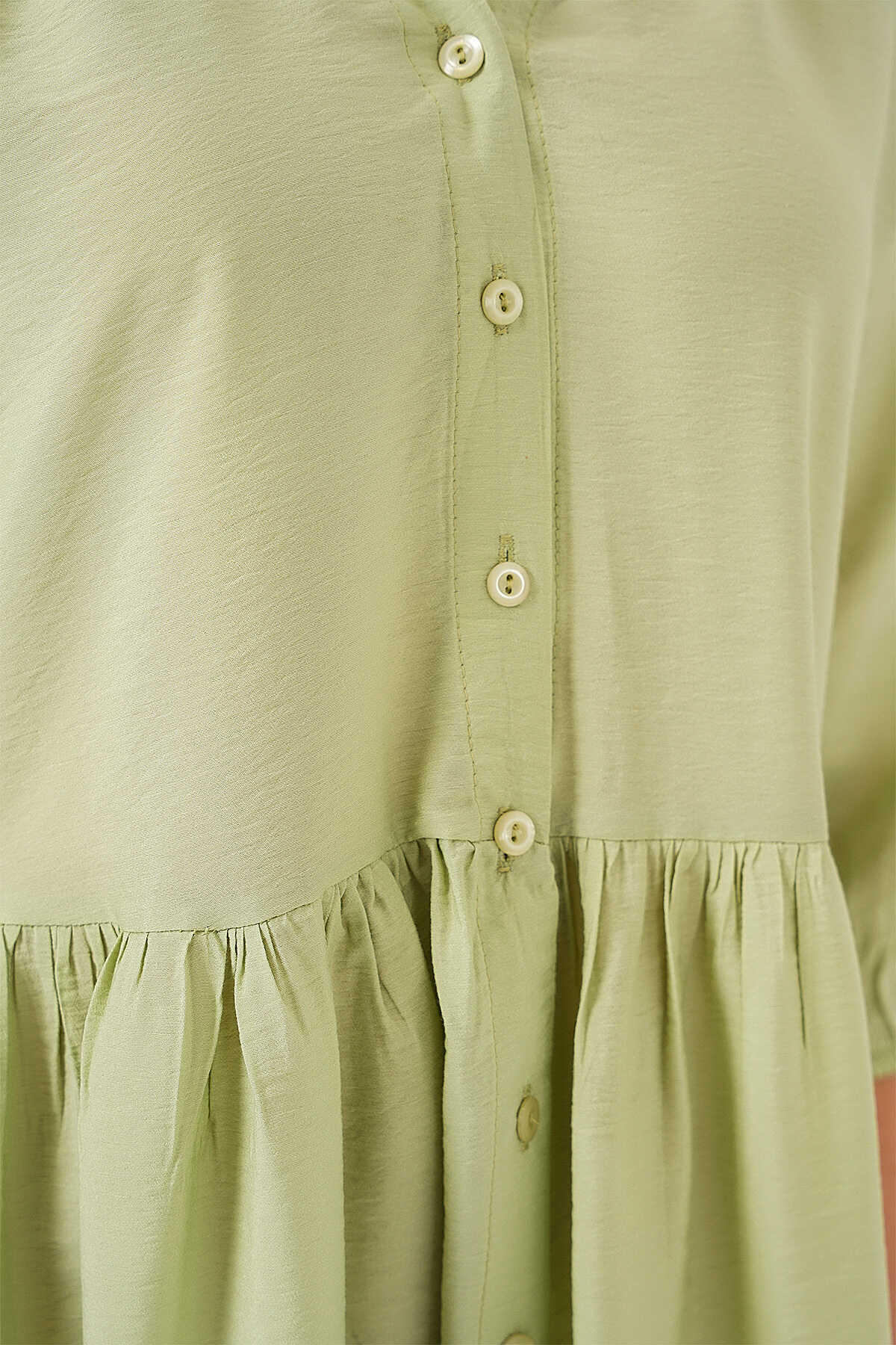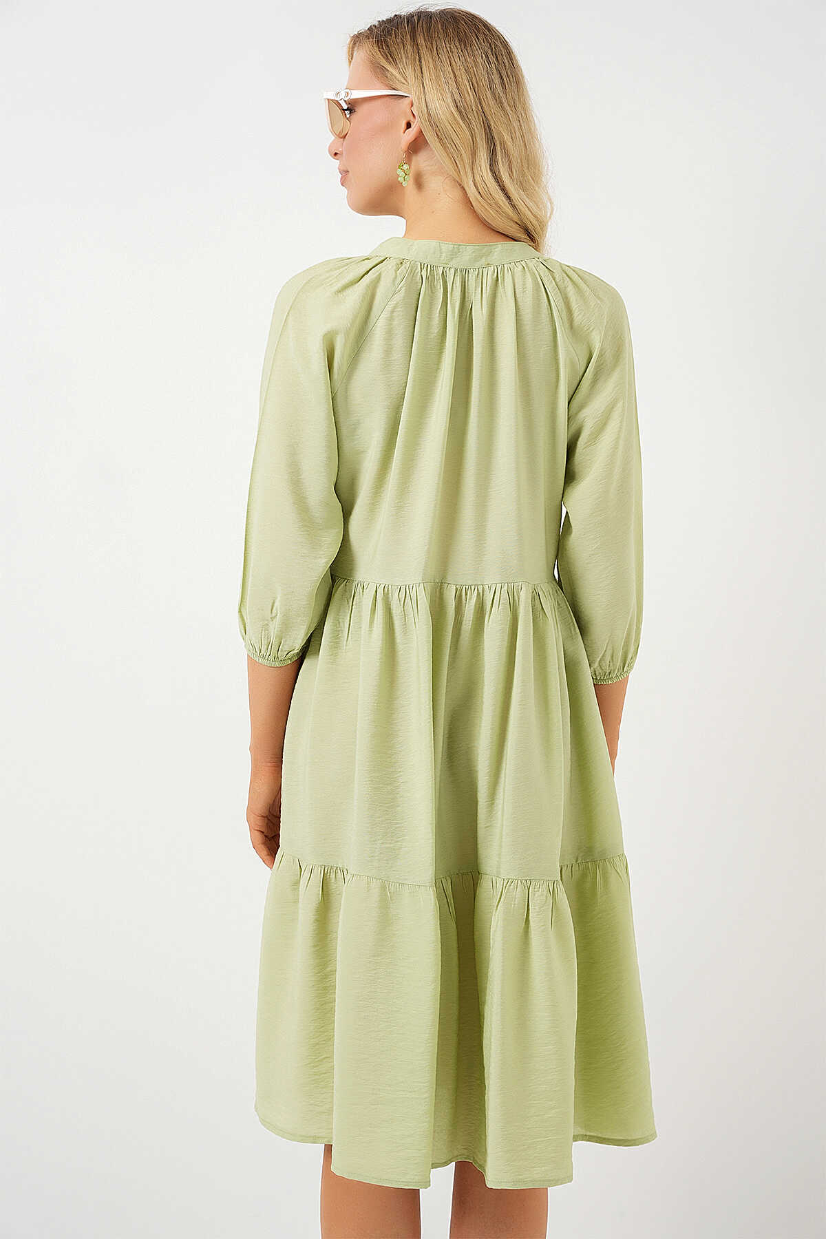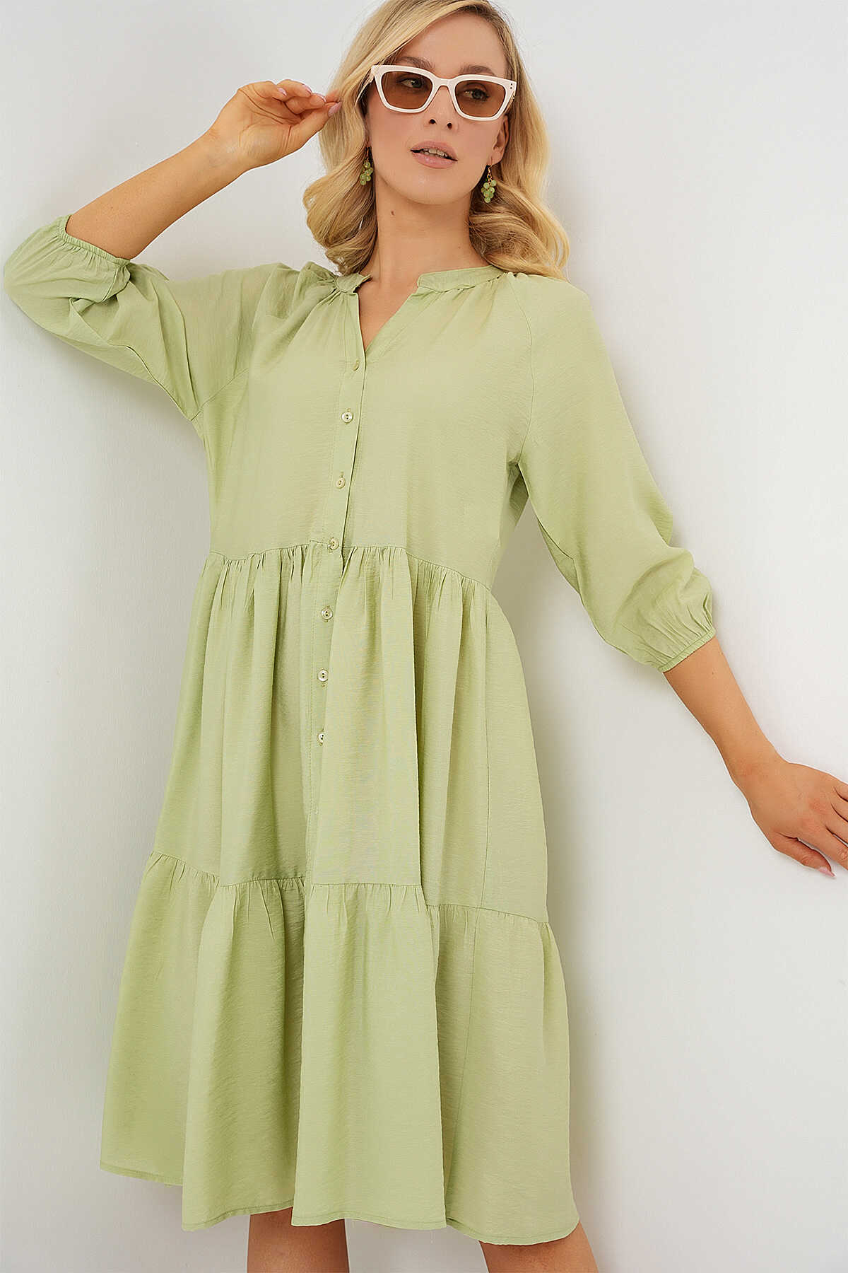 Kadın Düğmeli Kısa Kol Elbise 2559 - E.Yeşil - Kombin