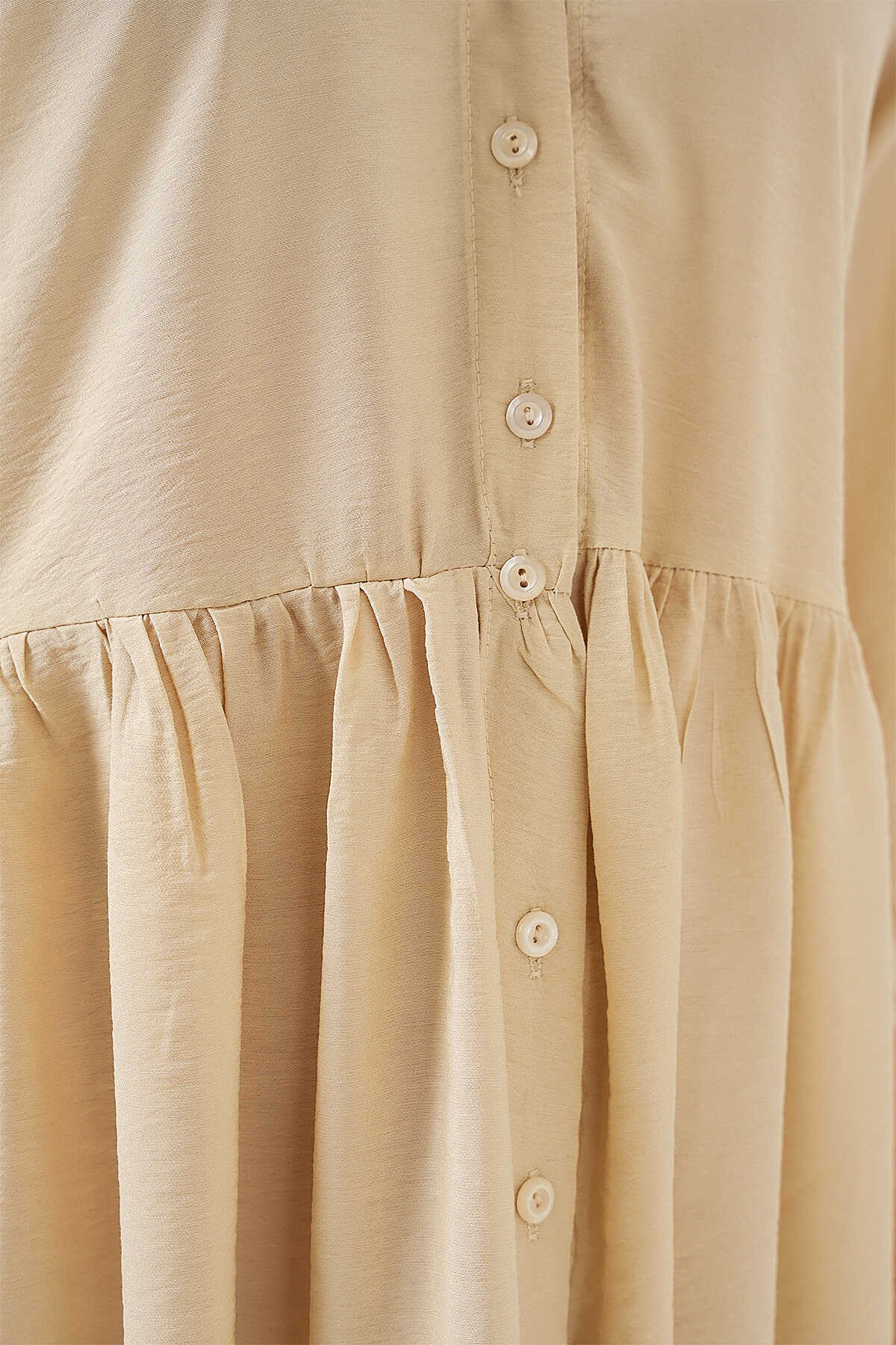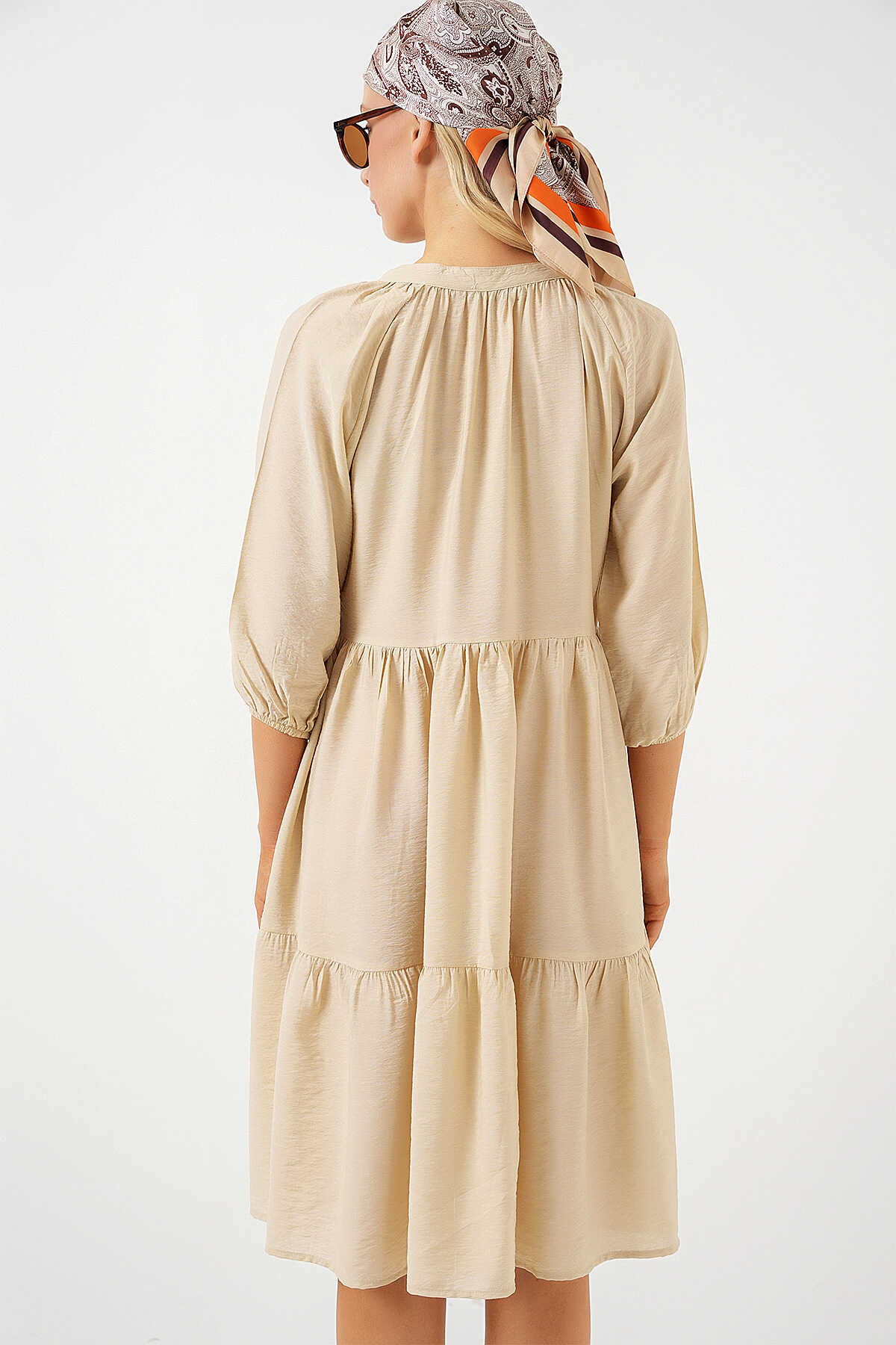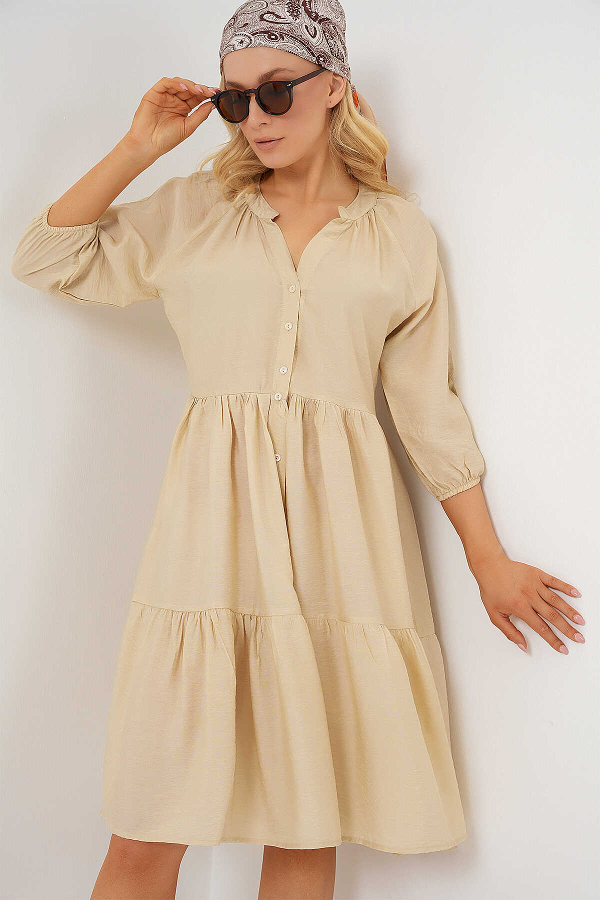 Kadın Düğmeli Kısa Kol Elbise 2559 - Krem - Kombin