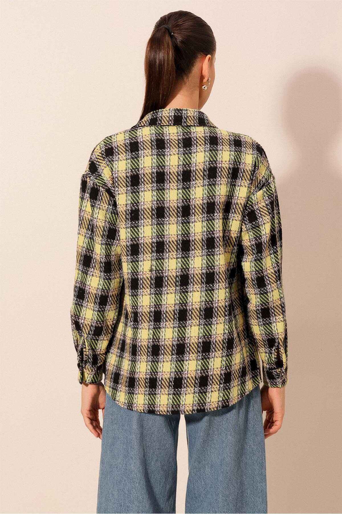 Kadın Ekose Desen Oversize Oduncu Gömlek 3854 - A.Yeşil